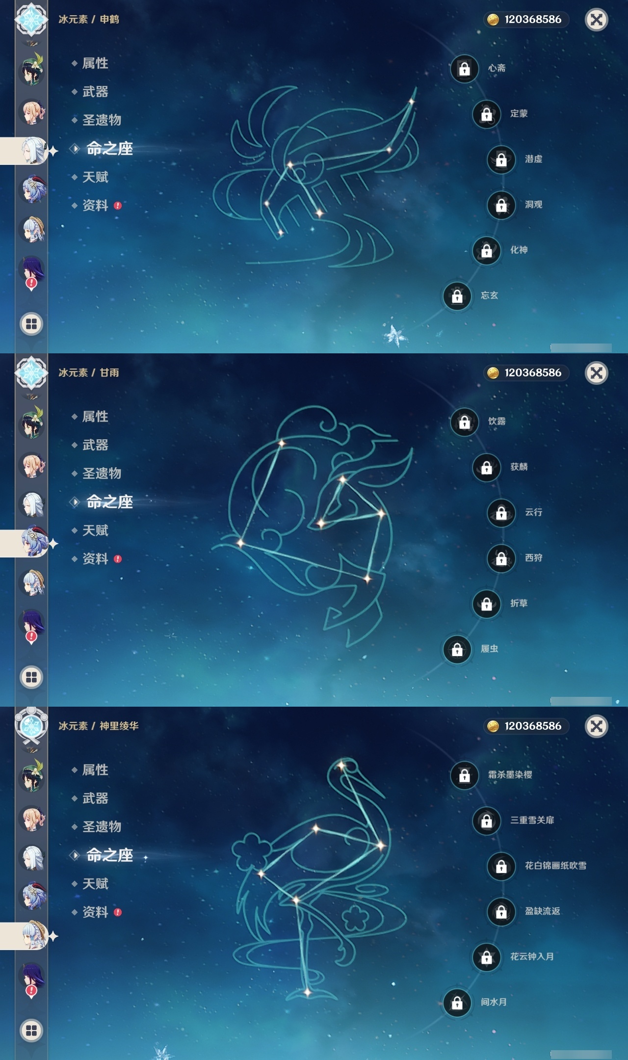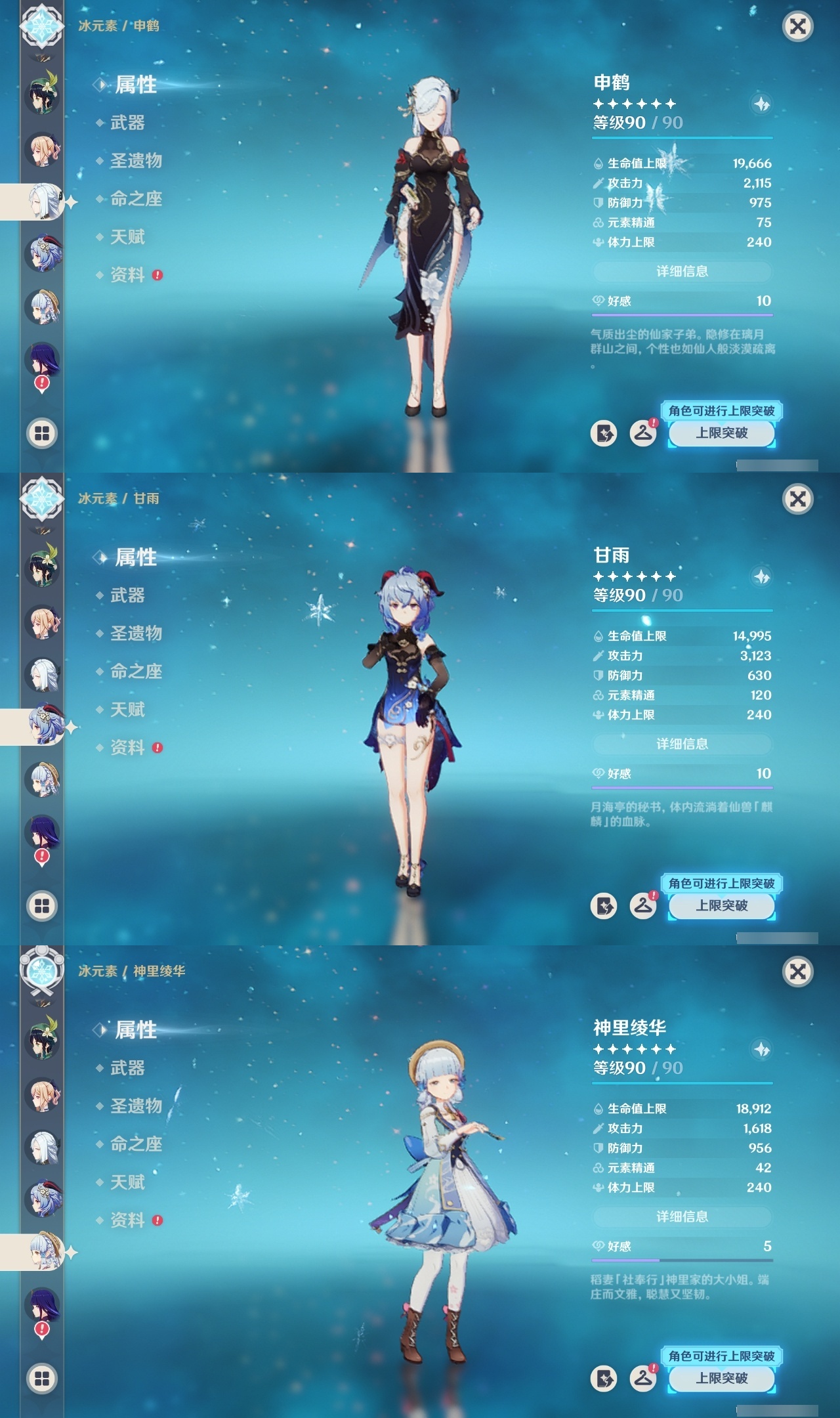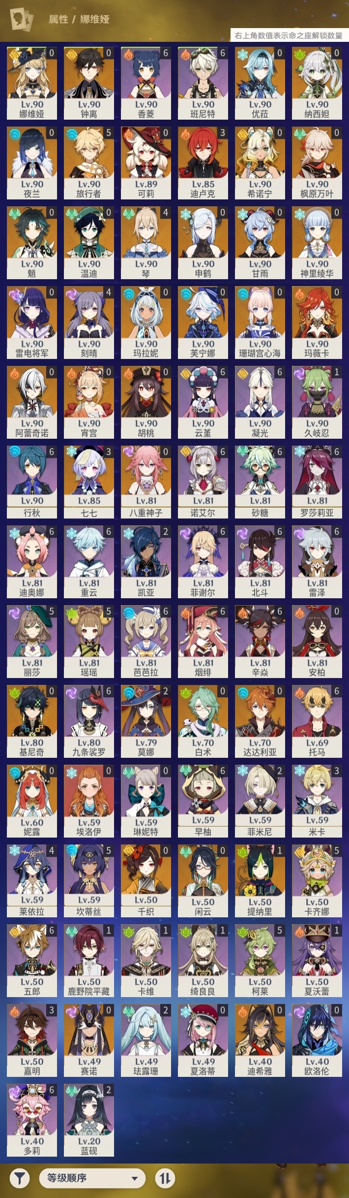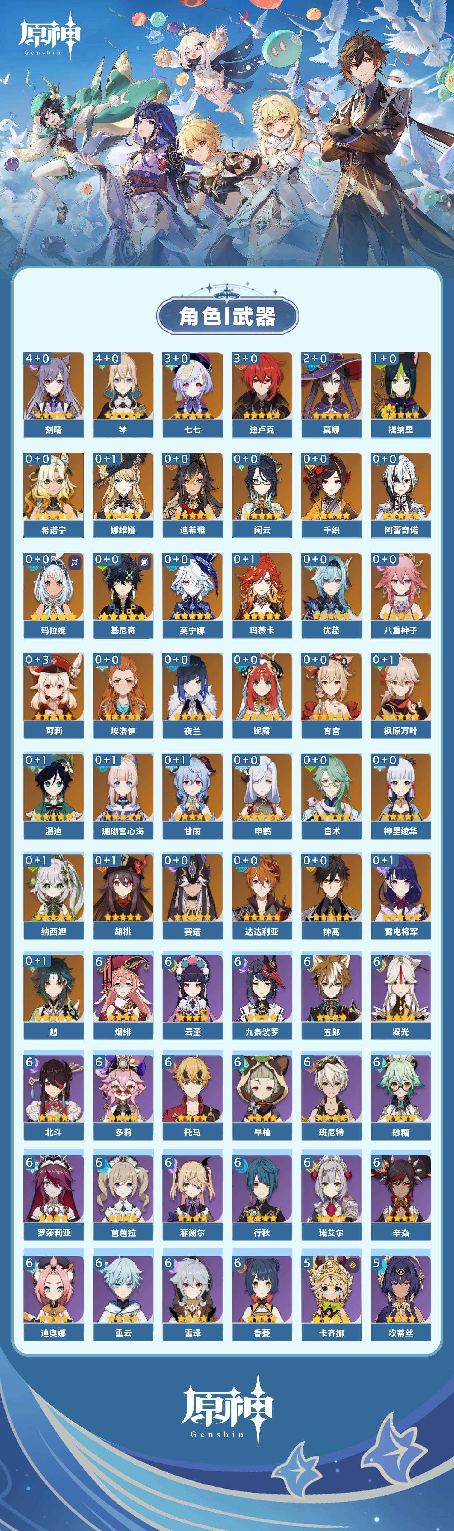 【原神】【lyys8846】冒险等级:60,五星数量:53,五星角色:刻晴 4命琴 4命迪卢克 3命七七 3命莫娜 2命提纳里 1命玛拉妮基尼奇珊瑚宫心海希诺宁白术神里绫华温迪玛薇卡宵宫优菈迪希雅钟离达达利亚申鹤八重神子夜兰芙宁娜娜维娅闲云千织赛诺阿蕾奇诺妮露纳西妲枫原万叶甘雨魈胡桃可莉雷电将军__五星武器:四风原典 3精图莱杜拉的回忆 2精焚曜千阳裁断阿莫斯之弓不灭月华苍古自由之誓尘世之锁和璞鸢护摩之杖天空之脊天空之刃天空之翼薙草之稻光终末嗟叹之诗千夜浮梦__四星角色:班尼特 6命行秋 6命九条裟罗 6命香菱 6命凝光 6命迪奥娜 6命砂糖 6命多莉 6命芭芭拉 6命云堇 6命早柚 6命托马 6命五郎 6命烟绯 6命重云 6命辛焱 6命诺艾尔 6命罗莎莉亚 6命雷泽 6命菲谢尔 6命北斗 6命卡齐娜 5命瑶瑶 5命坎蒂丝 5命柯莱 5命莱依拉 4命米卡 3命嘉明 3命珐露珊 2命蓝砚 2命菲米尼 2命久岐忍 1命鹿野院平藏 1命绮良良 1命卡维 1命夏沃蕾 1命埃洛伊欧洛伦琳妮特夏洛蒂
