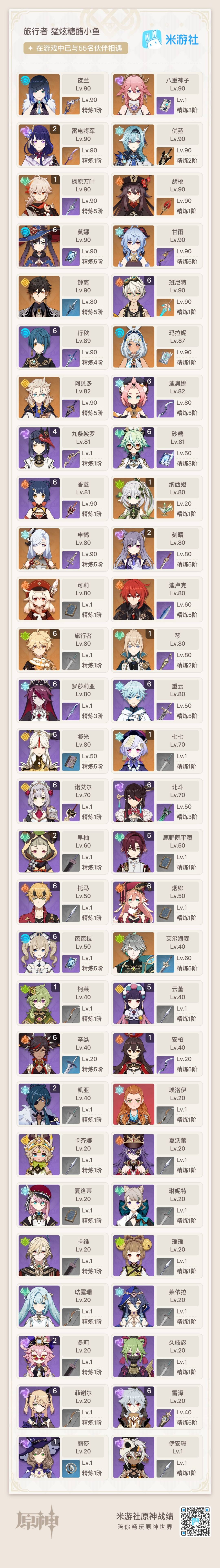 [14506809]【邮箱】:未绑定 【总黄数】:41 【冒险等级】:59 【6命金色角色】:满命莫娜 【2命金色角色】:二命雷电将军二命刻晴 【1命金色角色】:一命纳西妲一命枫原万叶一命琴一命七七 【0命金色角色】:玛拉妮艾尔海森夜兰八重神子申鹤优菈胡桃甘雨阿贝多钟离可莉迪卢克 【2精武器】:无工之剑 【1精武器】:千夜浮梦若水薙草之稻光护摩之杖天空之刃四风原典