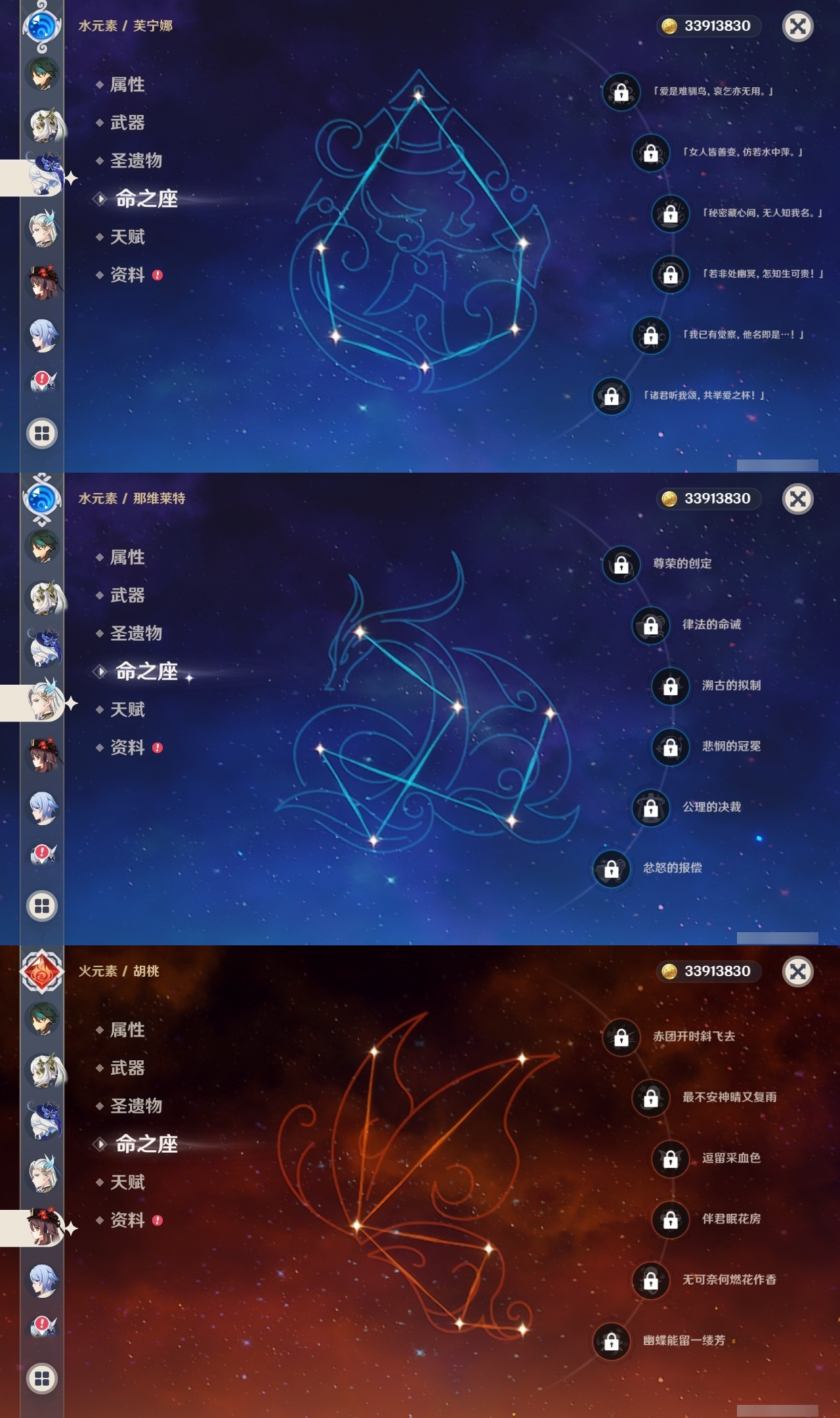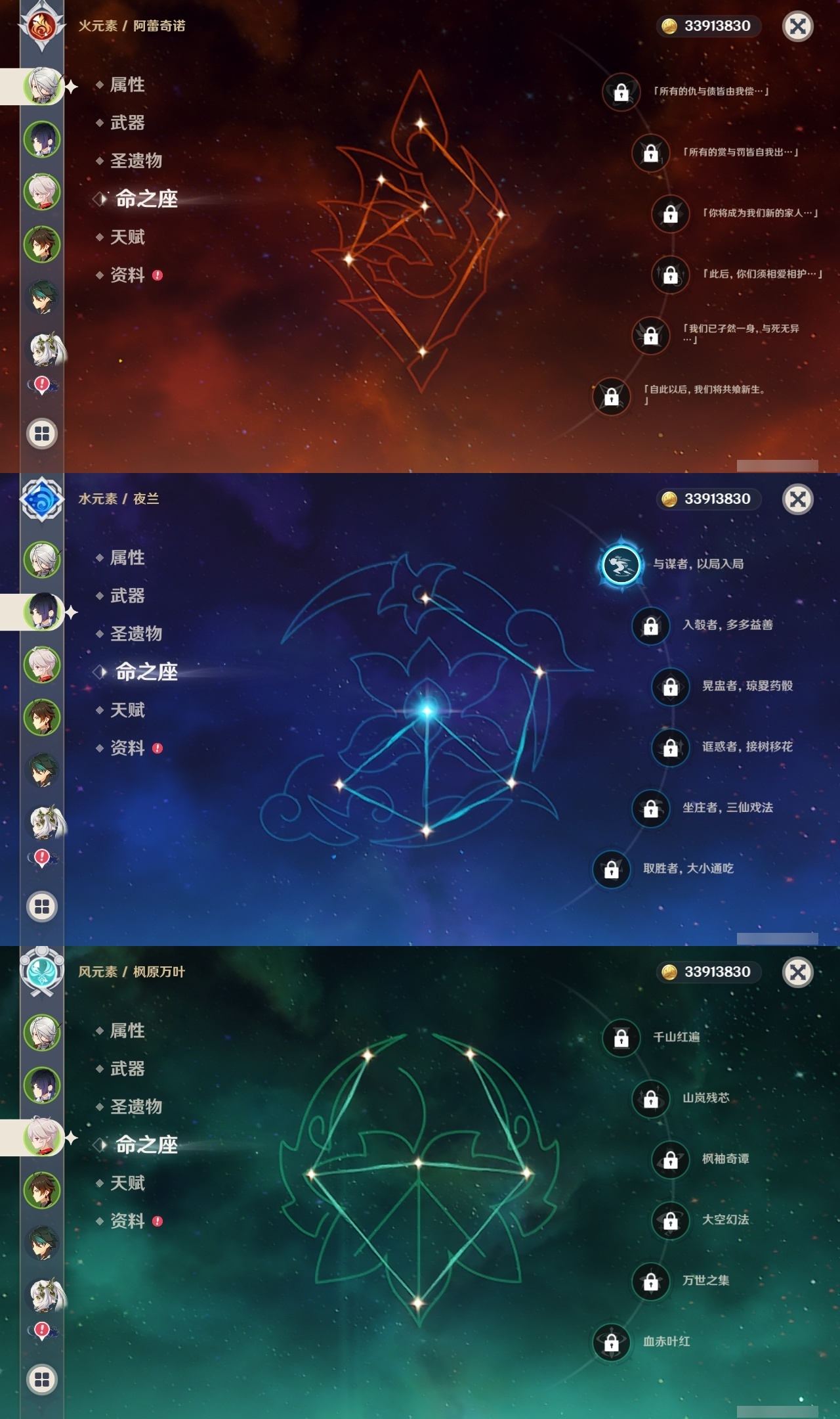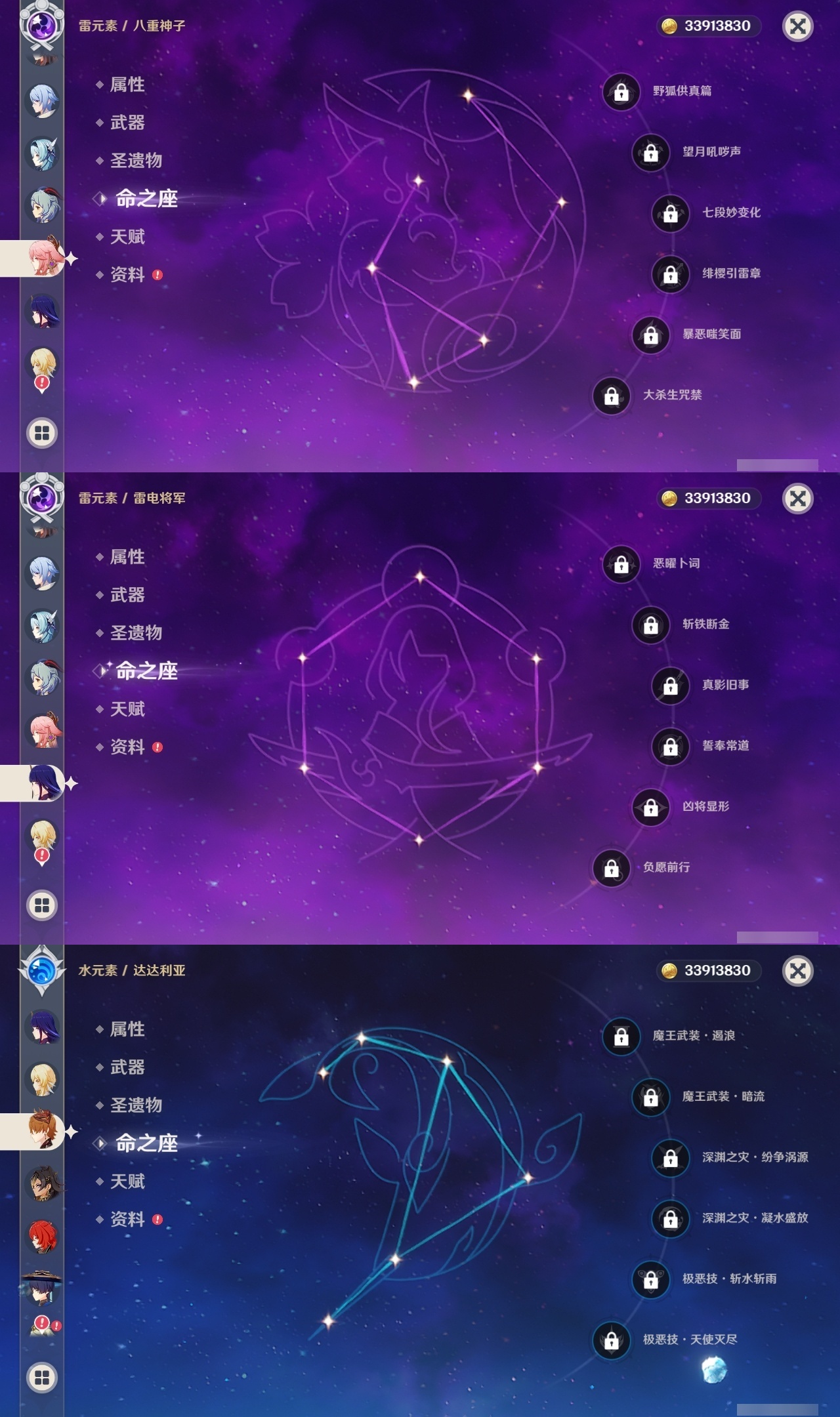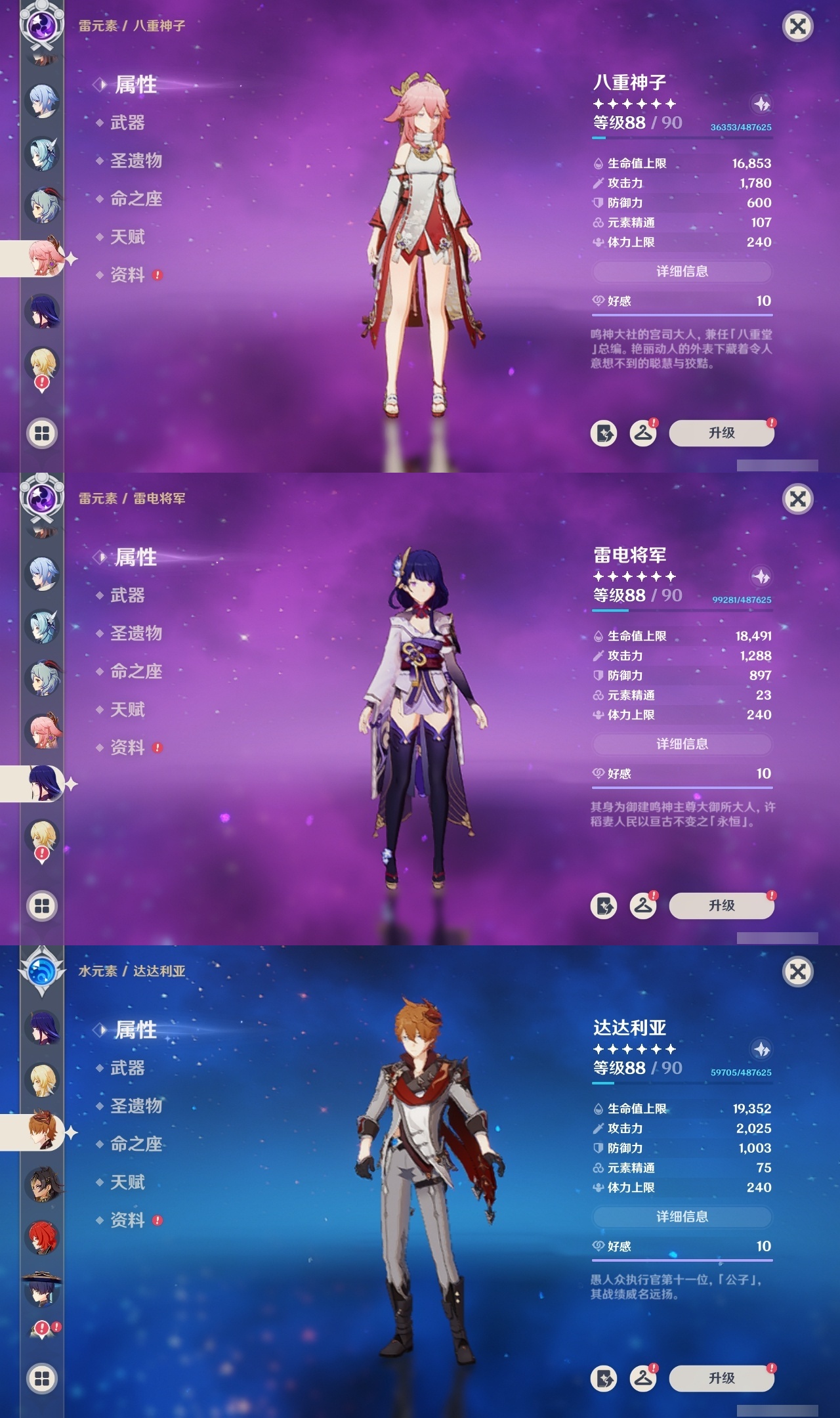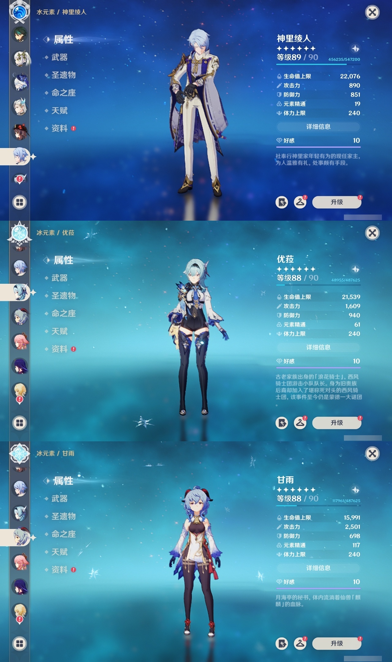 【原神】【lyys9095】冒险等级:60,五星数量:38,五星角色:莫娜 5命迪卢克 3命提纳里 2命迪希雅 1命七七 1命琴 1命夜兰 1命玛拉妮白术优菈钟离达达利亚八重神子神里绫人那维莱特芙宁娜阿蕾奇诺丝柯克妮露纳西妲流浪者枫原万叶甘雨魈胡桃可莉雷电将军__五星武器:狼的末路 2精冲浪时光万世流涌大典阿莫斯之弓飞雷之弦振护摩之杖天空之卷天空之刃天空之翼若水圣显之钥__四星角色:行秋 6命香菱 6命久岐忍 6命鹿野院平藏 6命珐露珊 6命凝光 6命迪奥娜 6命绮良良 6命坎蒂丝 6命柯莱 6命卡维 6命芭芭拉 6命云堇 6命早柚 6命托马 6命烟绯 6命重云 6命辛焱 6命诺艾尔 6命菲谢尔 6命北斗 6命菲米尼 6命班尼特 5命瑶瑶 5命五郎 5命雷泽 5命夏洛蒂 5命莱依拉 4命罗莎莉亚 4命琳妮特 4命九条裟罗 3命砂糖 3命米卡 3命多莉 3命嘉明 3命赛索斯 2命卡齐娜欧洛伦夏沃蕾塔利雅
