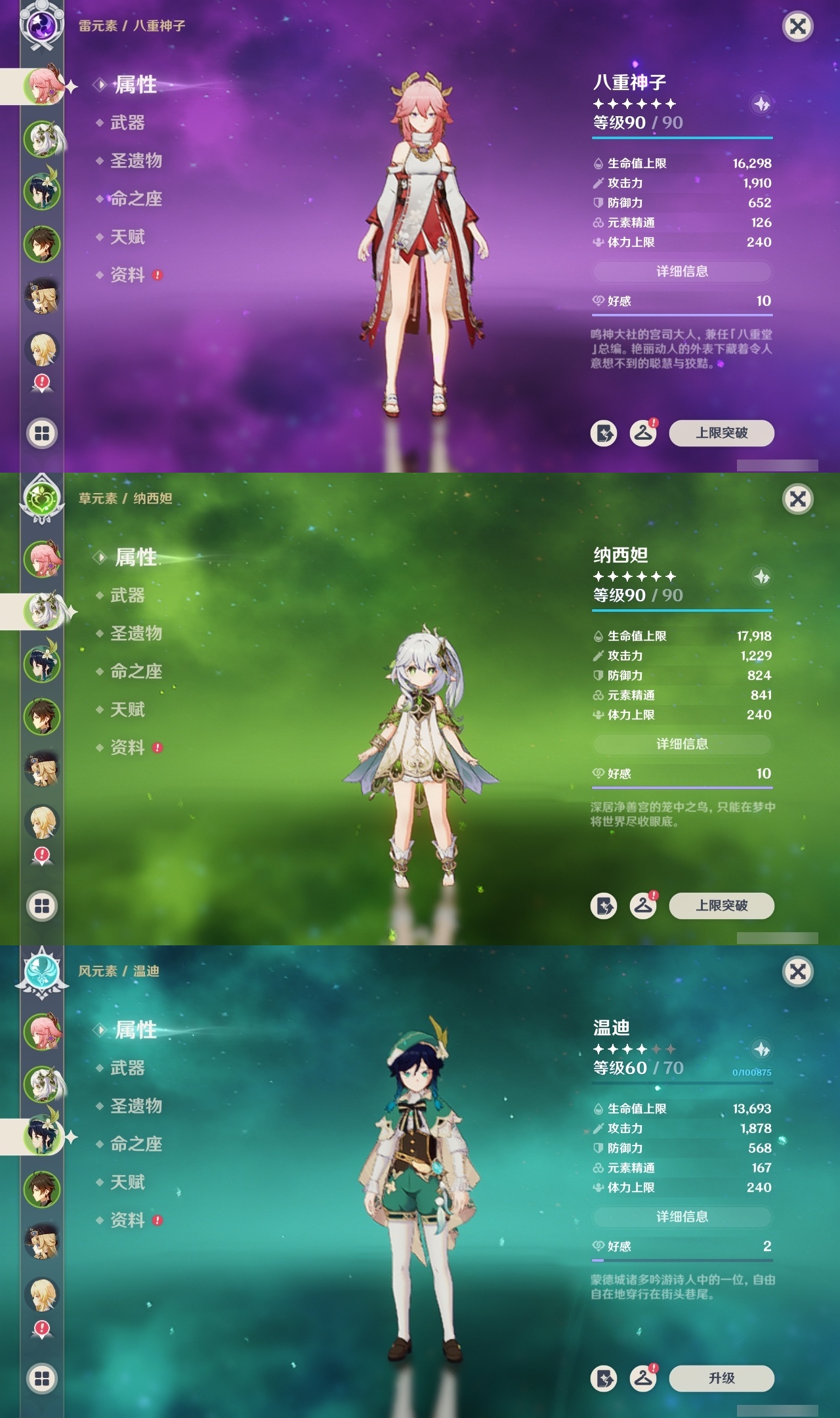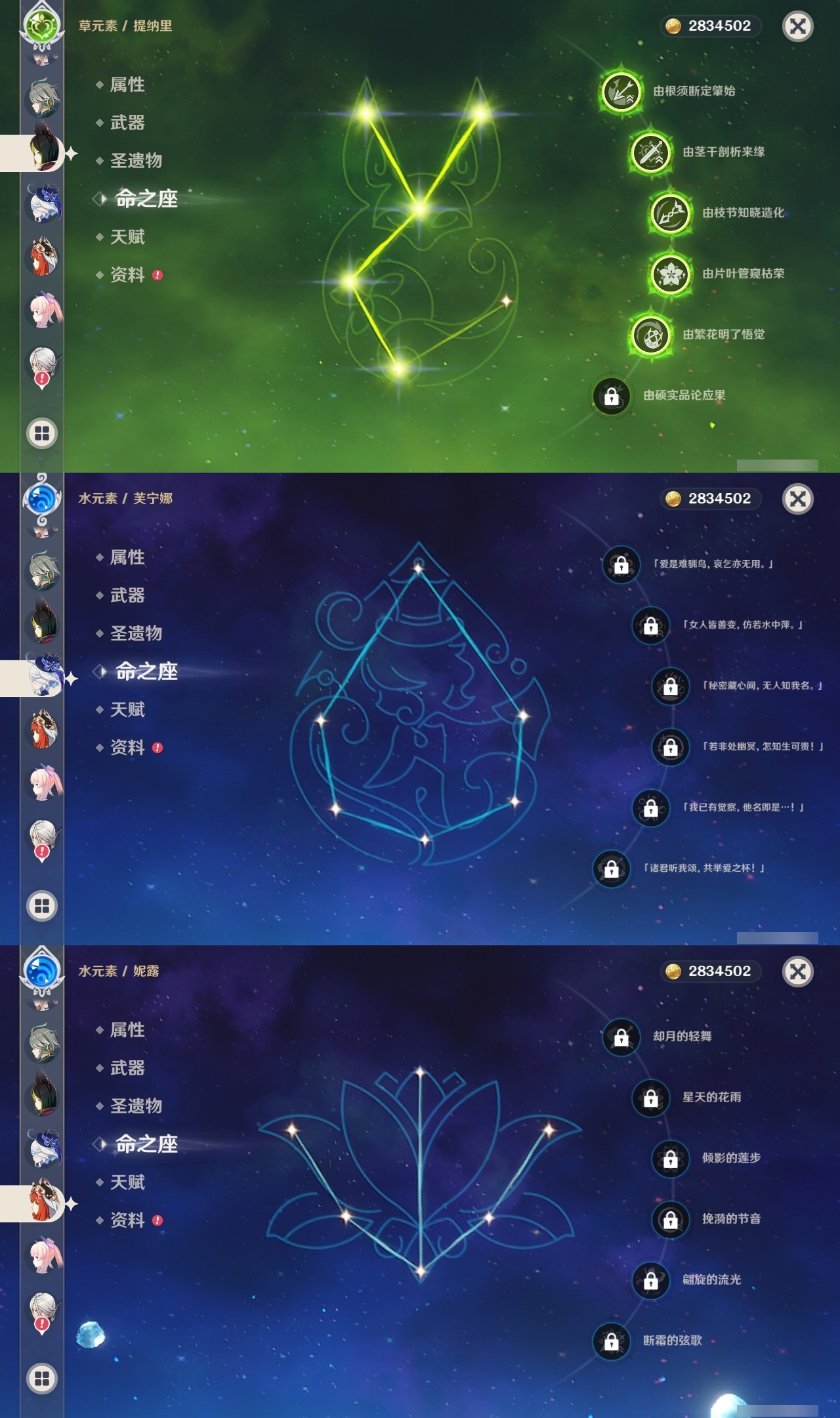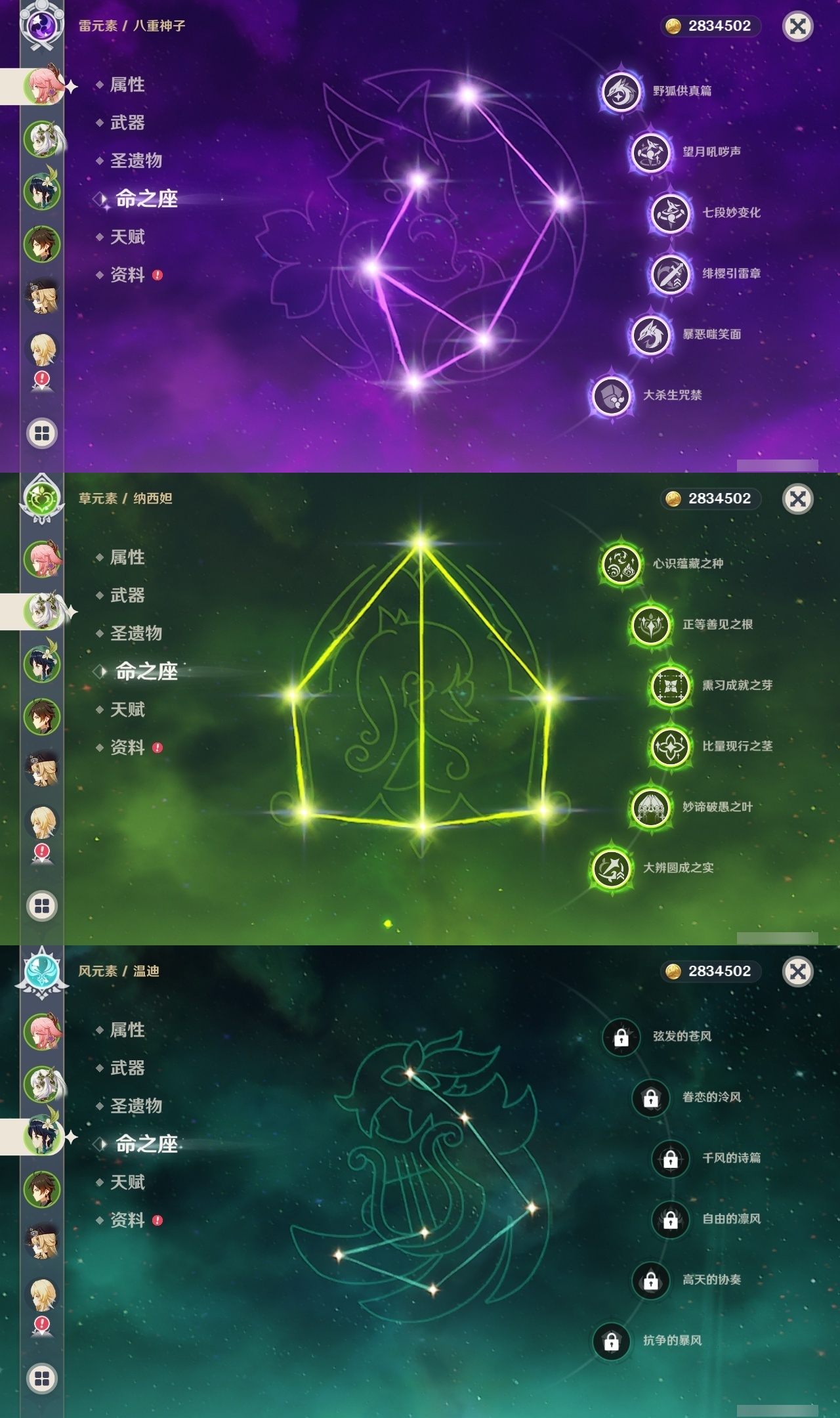 【原神】满命,冒险等级:60,五星数量:36,五星角色:魈 6命八重神子 6命纳西妲 6命提纳里 5命迪卢克 4命琴 3命刻晴 2命莫娜 2命迪希雅 1命七七 1命珊瑚宫心海温迪钟离那维莱特莱欧斯利芙宁娜娜维娅阿蕾奇诺妮露艾尔海森流浪者枫原万叶胡桃__五星武器:天空之脊 2精裁叶萃光 2精万世流涌大典裁断苍古自由之誓飞雷之弦振和璞鸢狼的末路神乐之真意贯虹之槊猎人之径圣显之钥千夜浮梦__四星角色:班尼特 6命行秋 6命香菱 6命久岐忍 6命鹿野院平藏 6命珐露珊 6命绮良良 6命瑶瑶 6命莱依拉 6命坎蒂丝 6命多莉 6命柯莱 6命云堇 6命托马 6命重云 6命辛焱 6命诺艾尔 6命罗莎莉亚 6命雷泽 6命菲谢尔 6命北斗 6命芭芭拉 5命早柚 5命烟绯 5命迪奥娜 4命砂糖 4命夏沃蕾 4命米卡 3命蓝砚 3命五郎 3命菲米尼 3命凝光 2命嘉明 2命九条裟罗 1命夏洛蒂 1命卡齐娜卡维琳妮特爱诺
