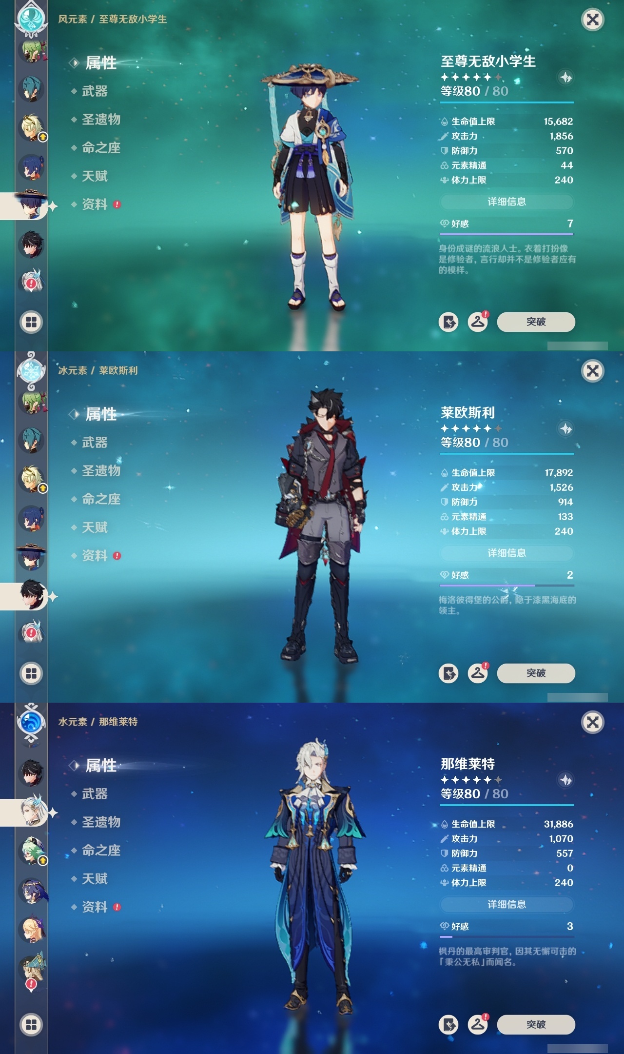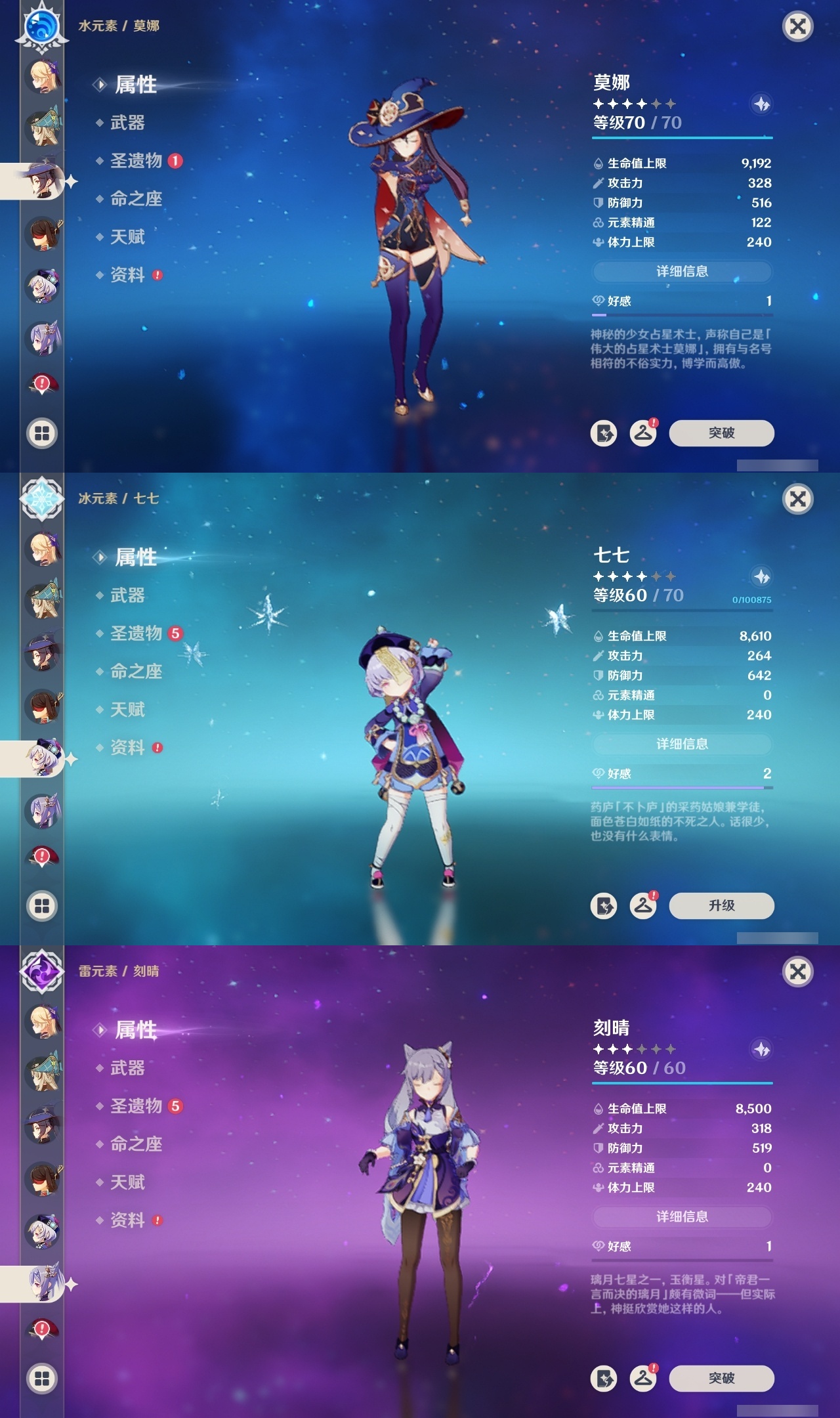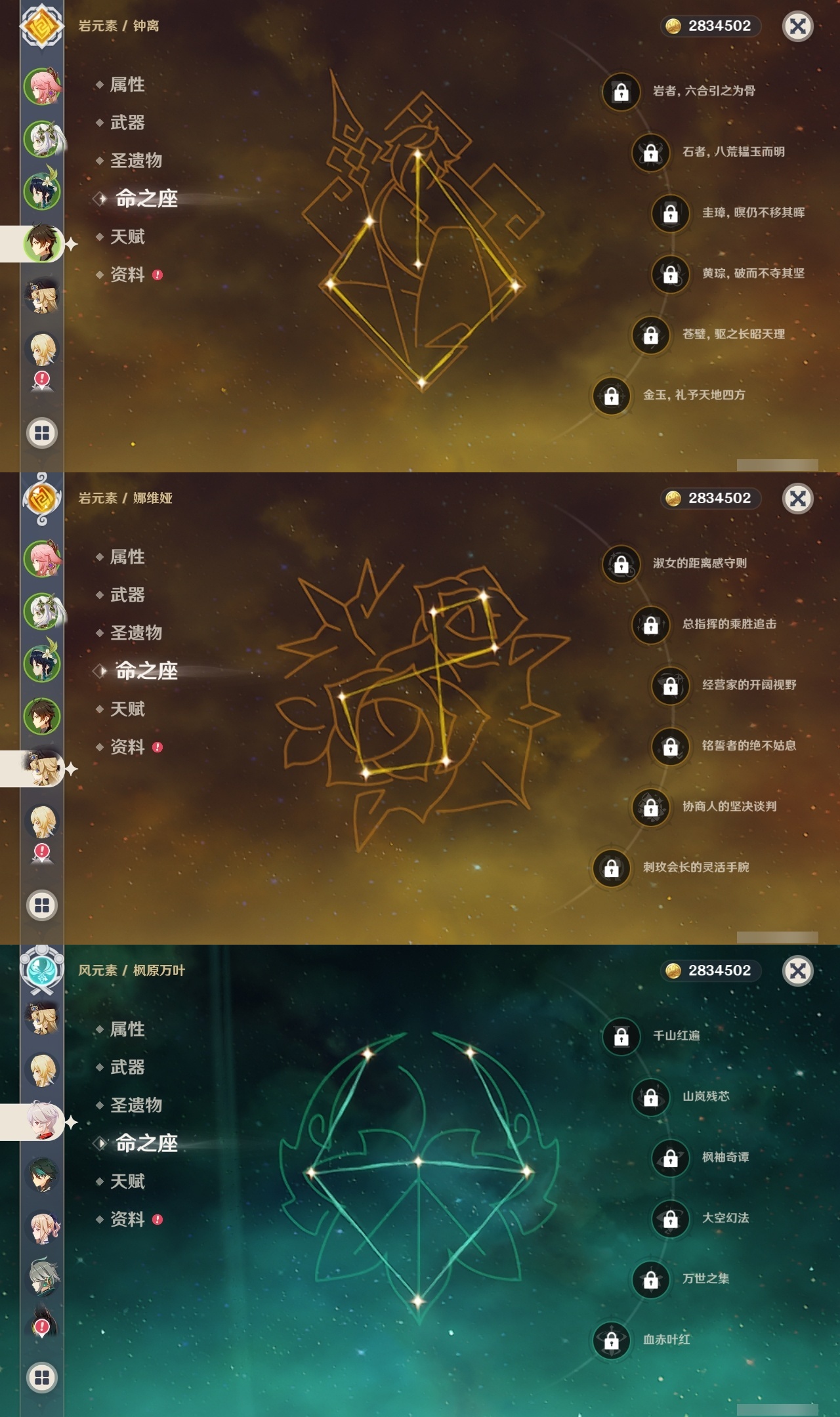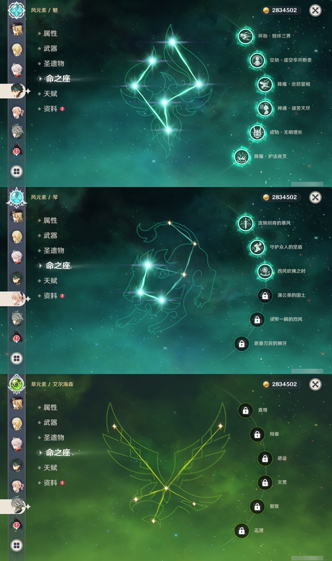 【原神】满命,冒险等级:60,五星数量:36,五星角色:魈 6命八重神子 6命纳西妲 6命提纳里 5命迪卢克 4命琴 3命刻晴 2命莫娜 2命迪希雅 1命七七 1命珊瑚宫心海温迪钟离那维莱特莱欧斯利芙宁娜娜维娅阿蕾奇诺妮露艾尔海森流浪者枫原万叶胡桃__五星武器:天空之脊 2精裁叶萃光 2精万世流涌大典裁断苍古自由之誓飞雷之弦振和璞鸢狼的末路神乐之真意贯虹之槊猎人之径圣显之钥千夜浮梦__四星角色:班尼特 6命行秋 6命香菱 6命久岐忍 6命鹿野院平藏 6命珐露珊 6命绮良良 6命瑶瑶 6命莱依拉 6命坎蒂丝 6命多莉 6命柯莱 6命云堇 6命托马 6命重云 6命辛焱 6命诺艾尔 6命罗莎莉亚 6命雷泽 6命菲谢尔 6命北斗 6命芭芭拉 5命早柚 5命烟绯 5命迪奥娜 4命砂糖 4命夏沃蕾 4命米卡 3命蓝砚 3命五郎 3命菲米尼 3命凝光 2命嘉明 2命九条裟罗 1命夏洛蒂 1命卡齐娜卡维琳妮特爱诺