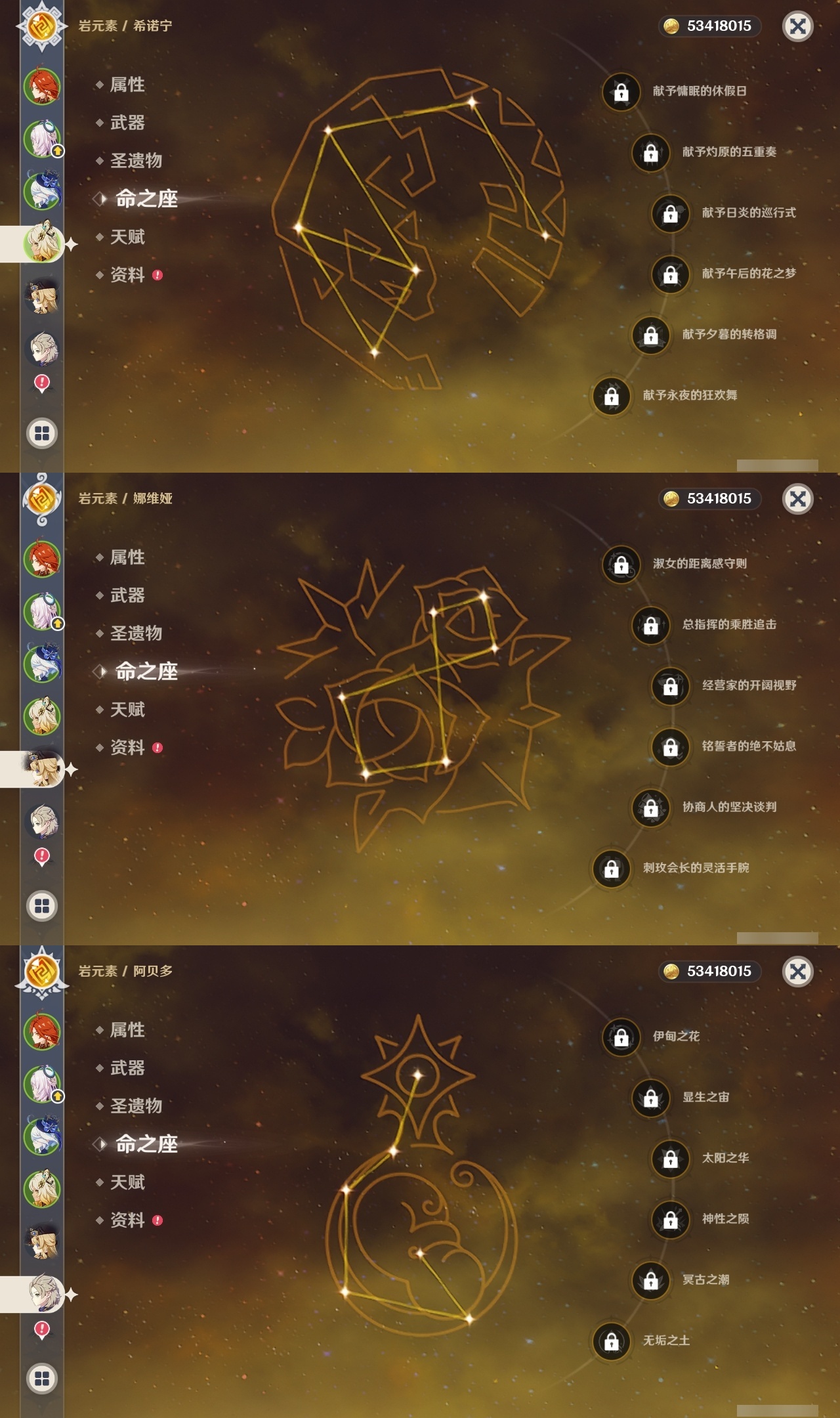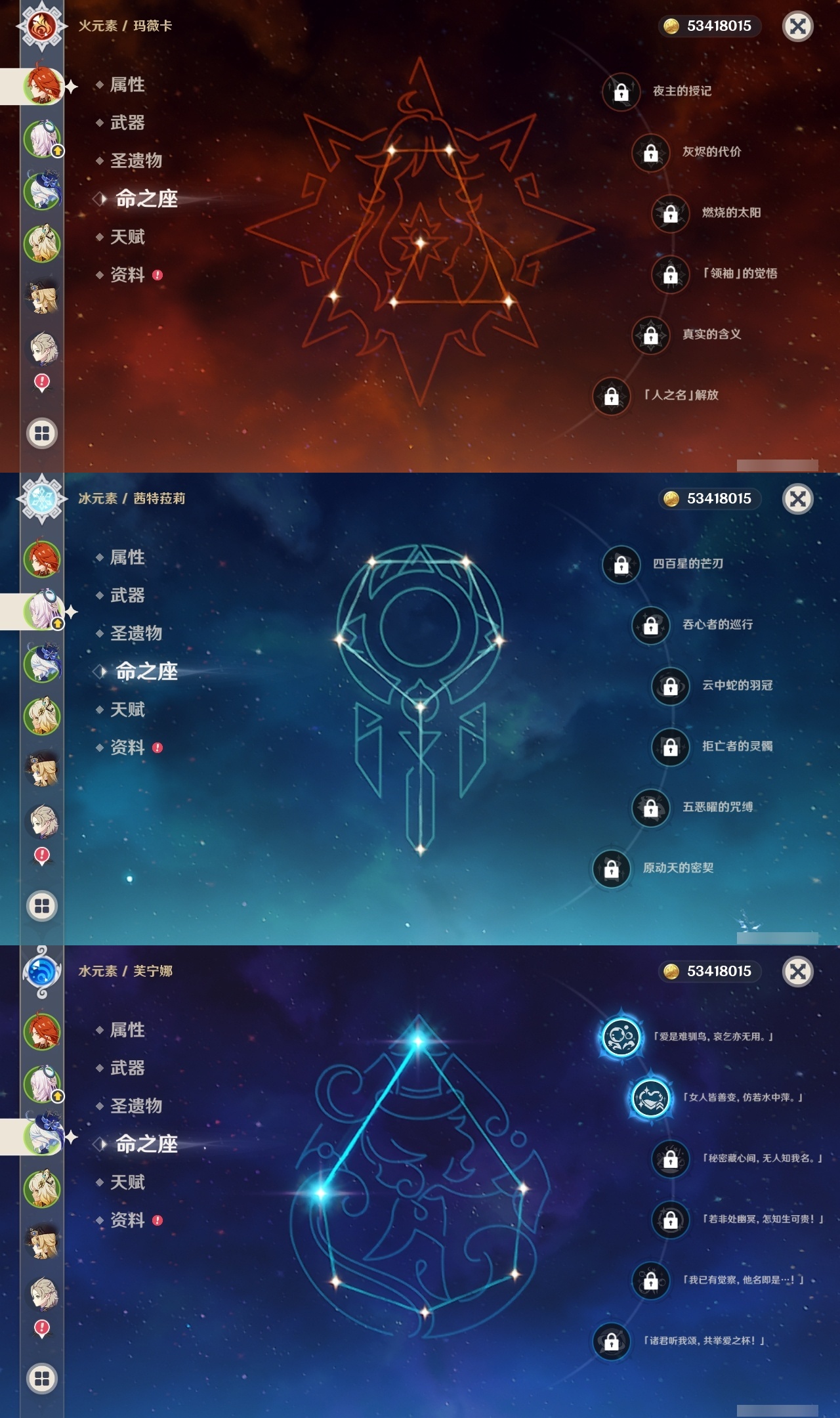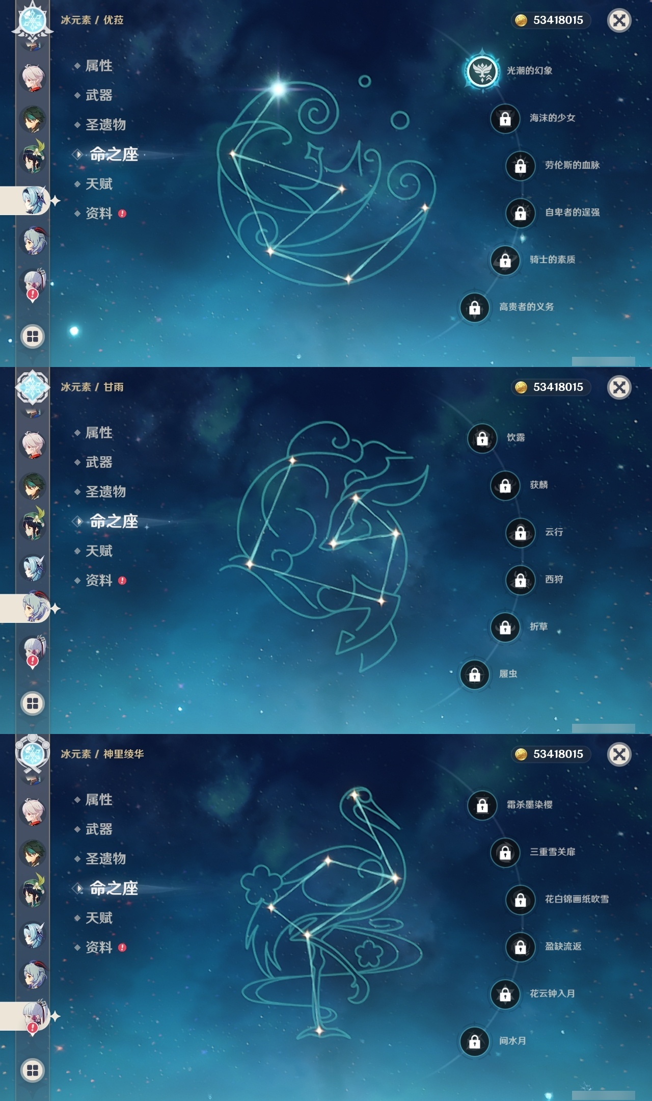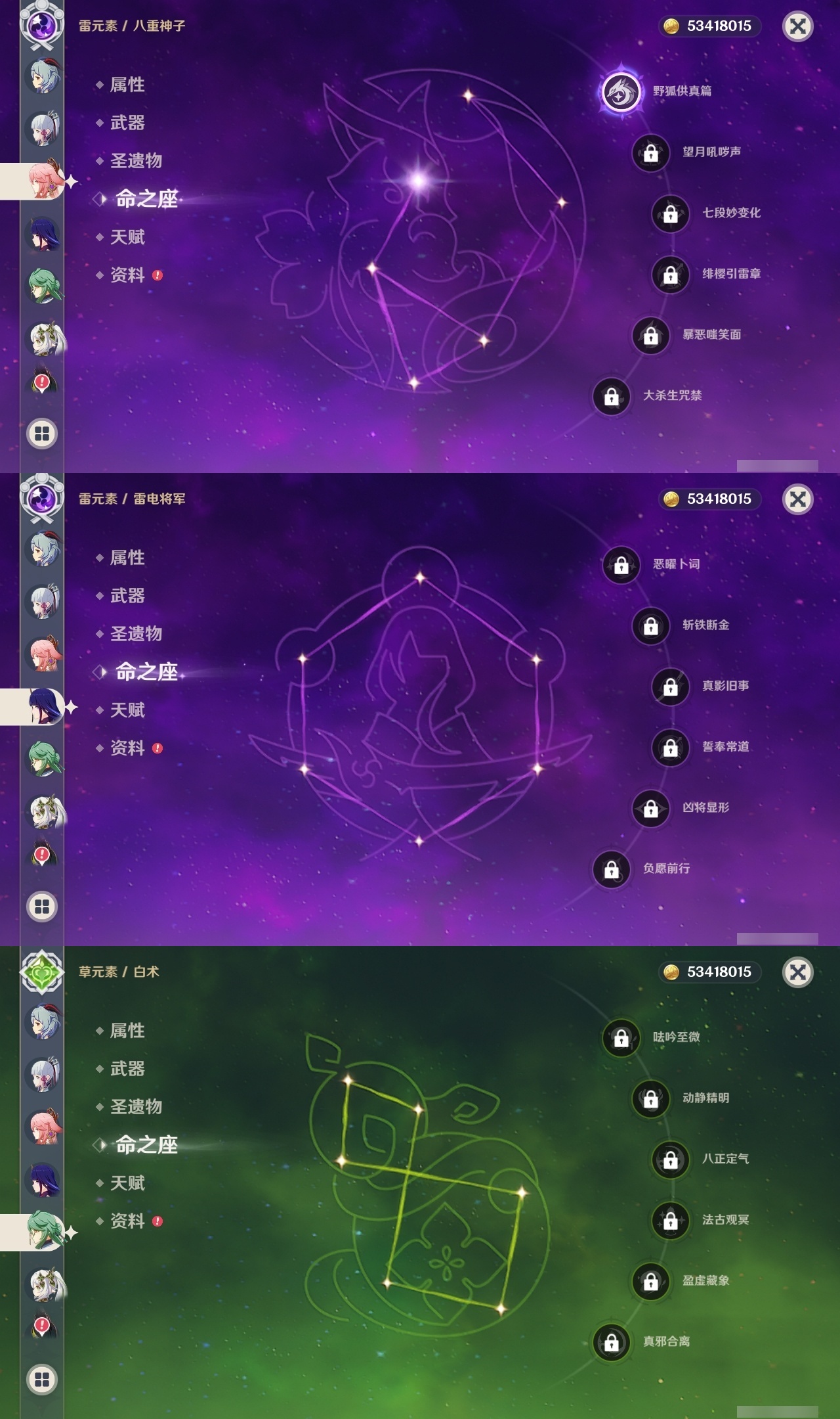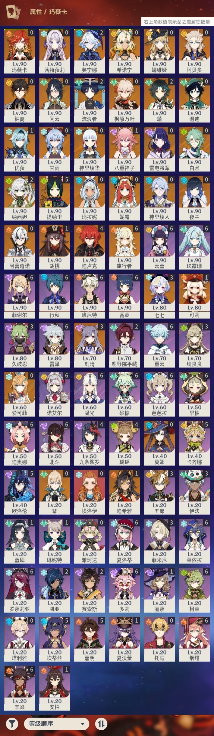 【原神】【lyys9124】冒险等级:60,五星数量:52,五星角色:提纳里 5命迪卢克 4命刻晴 3命七七 3命芙宁娜 2命魈 2命纳西妲 2命流浪者 2命迪希雅 1命胡桃 1命可莉 1命优菈 1命八重神子 1命莫娜玛拉妮琴希诺宁白术神里绫华温迪玛薇卡茜特菈莉钟离神里绫人阿贝多夜兰娜维娅闲云爱可菲阿蕾奇诺妮露枫原万叶甘雨雷电将军__五星武器:冲浪时光祭星者之望裁断图莱杜拉的回忆阿莫斯之弓尘世之锁风鹰剑和璞鸢护摩之杖磐岩结绿四风原典松籁响起之时天空之傲天空之卷天空之刃赤角石溃杵圣显之钥__四星角色:班尼特 6命行秋 6命香菱 6命珐露珊 6命凝光 6命迪奥娜 6命砂糖 6命莱依拉 6命多莉 6命柯莱 6命芭芭拉 6命云堇 6命早柚 6命烟绯 6命重云 6命辛焱 6命诺艾尔 6命罗莎莉亚 6命雷泽 6命菲谢尔 6命北斗 6命夏洛蒂 6命卡齐娜 5命坎蒂丝 5命欧洛伦 5命嘉明 5命九条裟罗 4命瑶瑶 4命久岐忍 3命绮良良 3命五郎 3命菲米尼 3命伊法 3命鹿野院平藏 2命赛索斯 2命蓝砚 1命琳妮特 1命夏沃蕾 1命埃洛伊托马塔利雅
