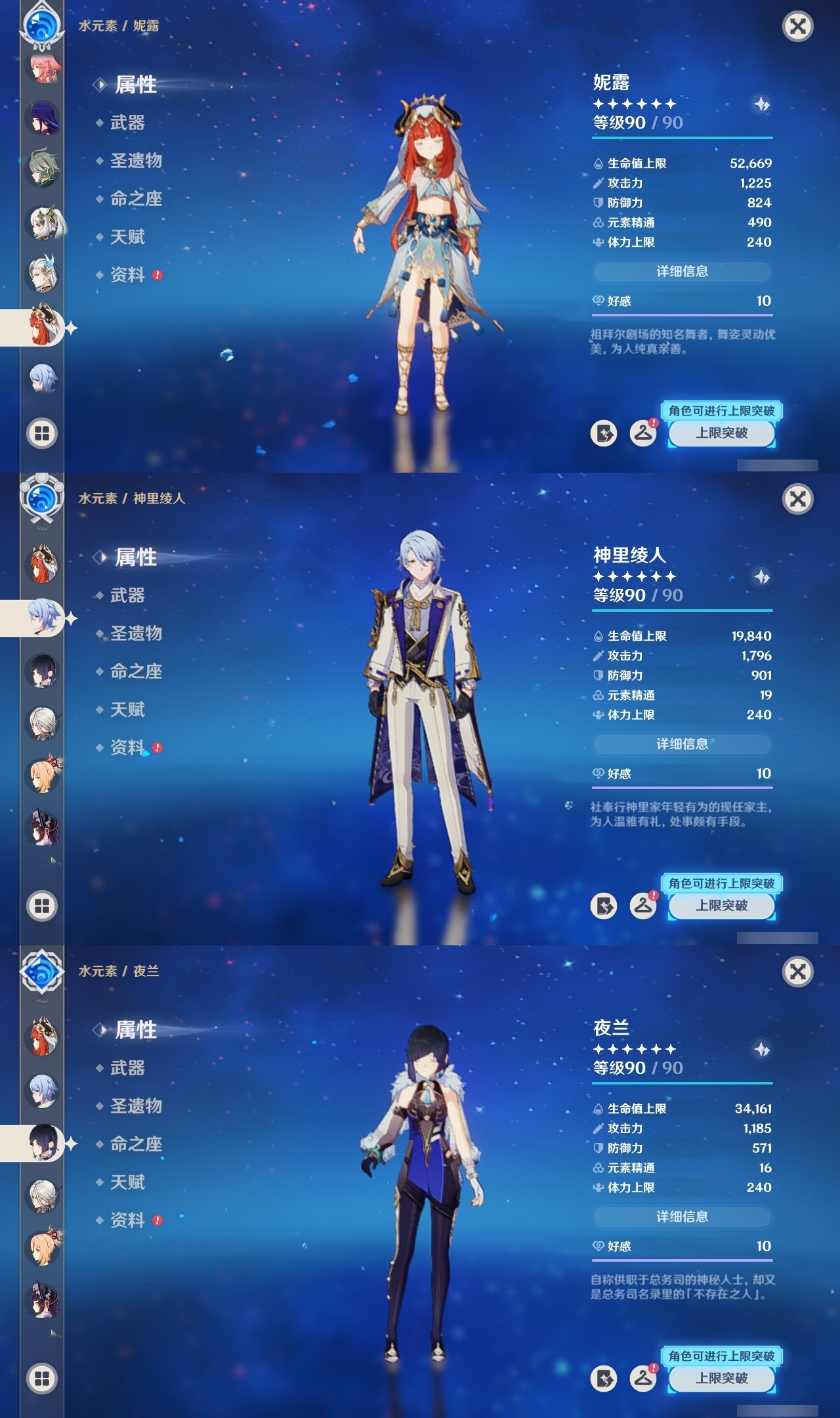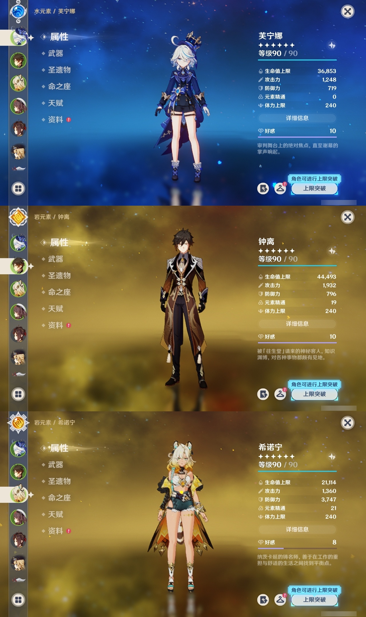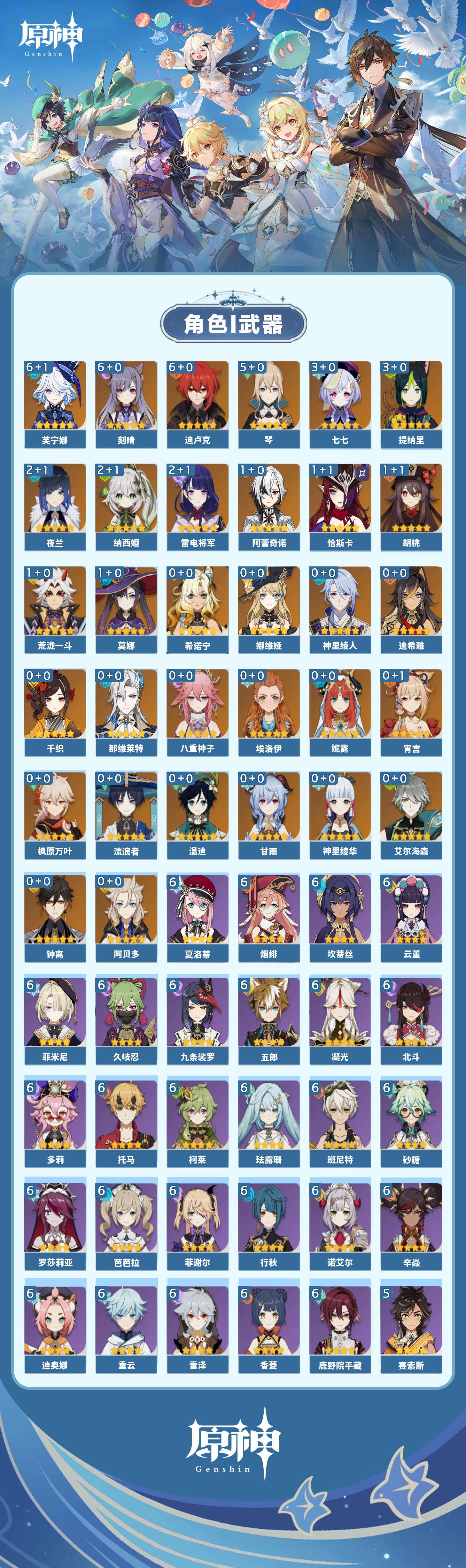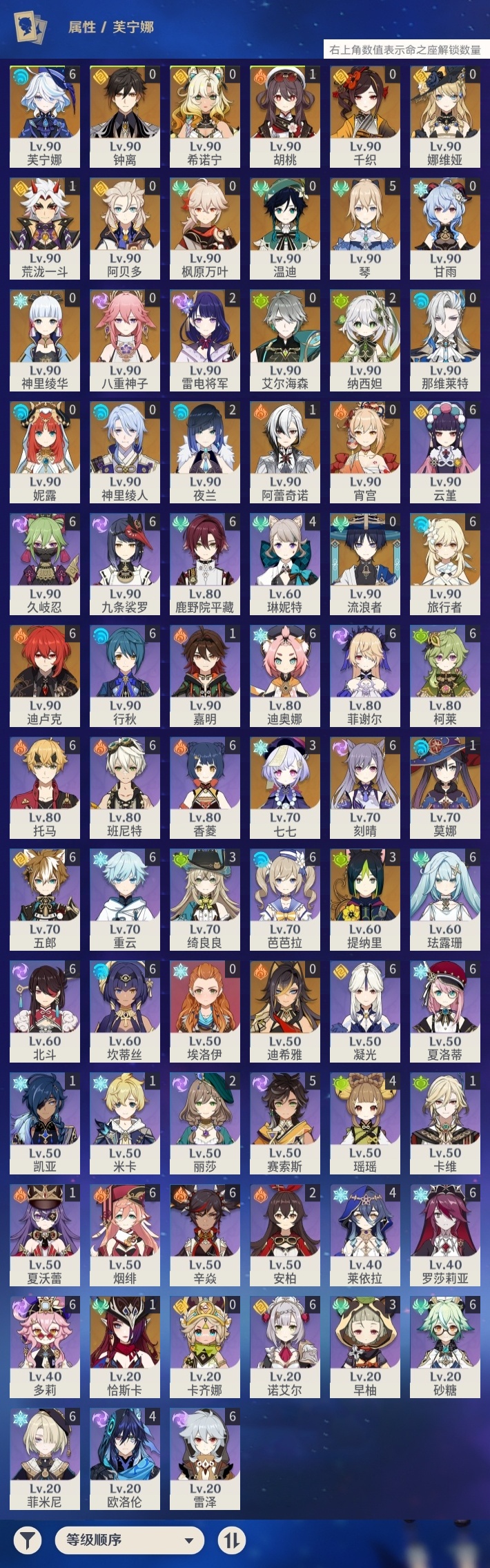 【原神】满命,冒险等级:60,五星数量:47,五星角色:芙宁娜 6命迪卢克 6命刻晴 6命琴 5命七七 3命提纳里 3命雷电将军 2命夜兰 2命纳西妲 2命恰斯卡 1命阿蕾奇诺 1命胡桃 1命莫娜 1命荒泷一斗 1命希诺宁神里绫华温迪宵宫迪希雅钟离八重神子神里绫人阿贝多那维莱特娜维娅千织妮露艾尔海森流浪者枫原万叶甘雨__五星武器:天空之脊 2精天空之卷 2精星鹫赤羽最初的大魔术静水流涌之辉飞雷之弦振和璞鸢护摩之杖天空之傲天空之刃天空之翼无工之剑薙草之稻光若水千夜浮梦__四星角色:班尼特 6命行秋 6命九条裟罗 6命香菱 6命久岐忍 6命鹿野院平藏 6命珐露珊 6命凝光 6命迪奥娜 6命砂糖 6命坎蒂丝 6命多莉 6命柯莱 6命芭芭拉 6命云堇 6命托马 6命五郎 6命烟绯 6命重云 6命辛焱 6命诺艾尔 6命罗莎莉亚 6命雷泽 6命菲谢尔 6命北斗 6命菲米尼 6命夏洛蒂 6命赛索斯 5命瑶瑶 4命莱依拉 4命欧洛伦 4命琳妮特 4命绮良良 3命早柚 3命米卡 1命卡维 1命夏沃蕾 1命嘉明 1命埃洛伊卡齐娜