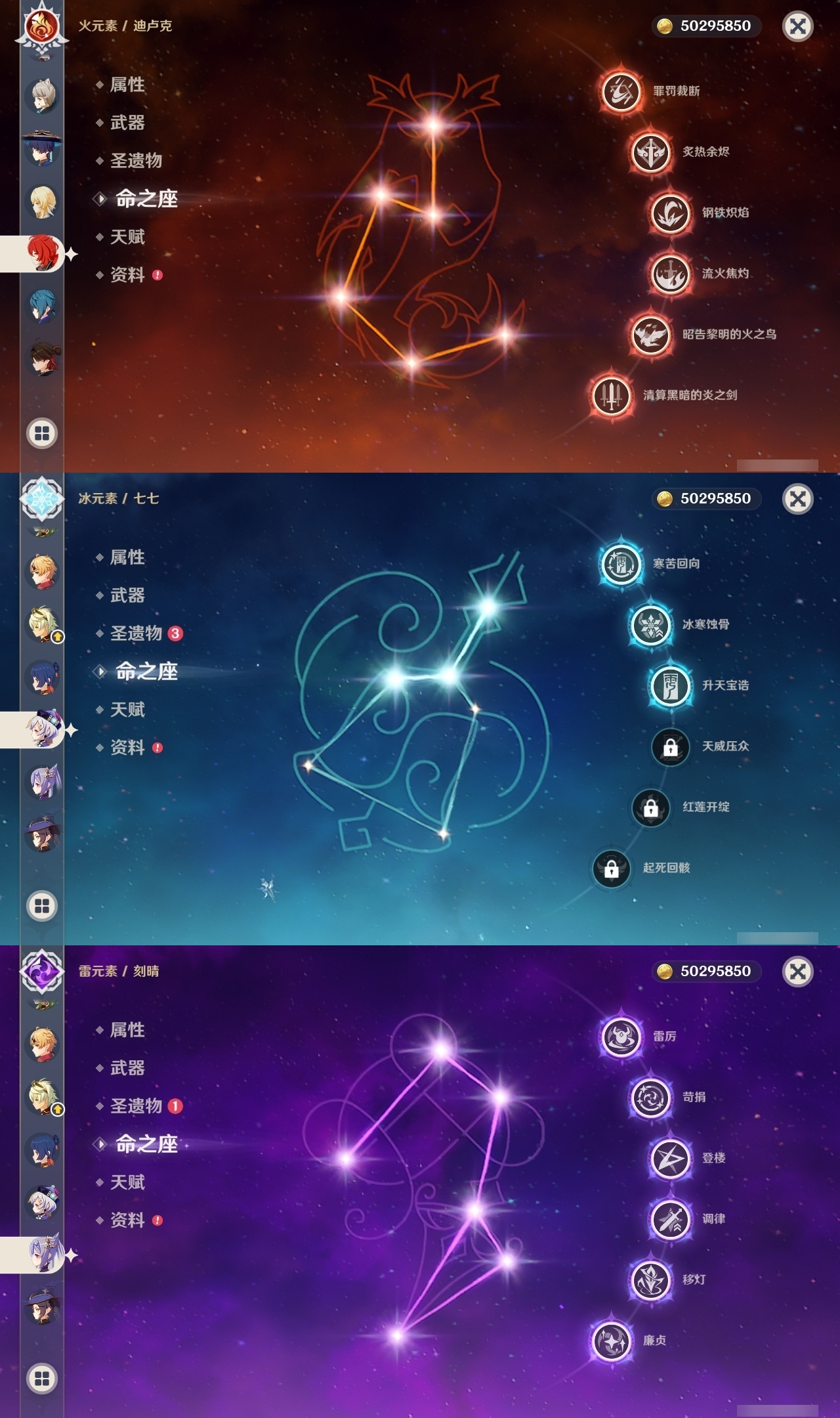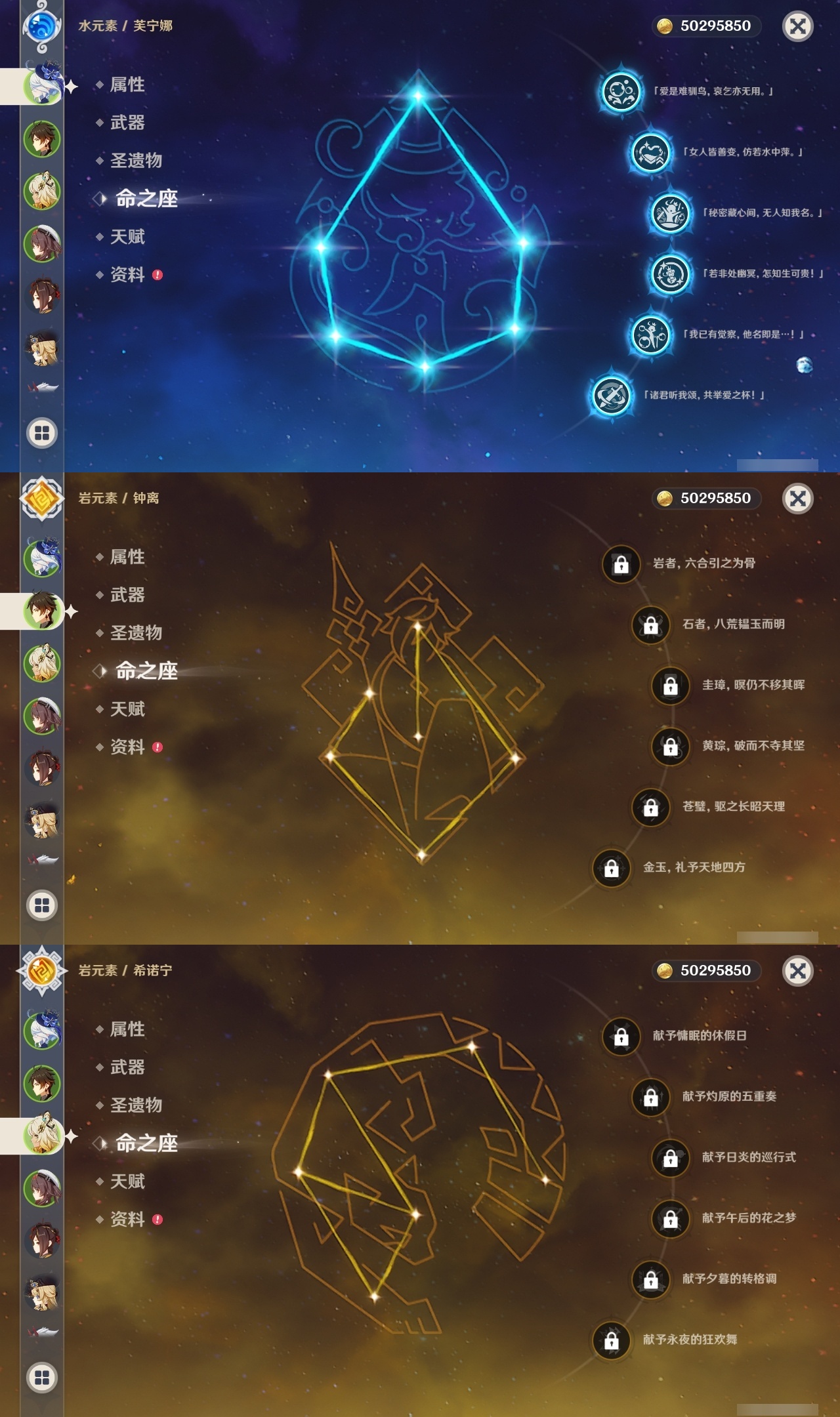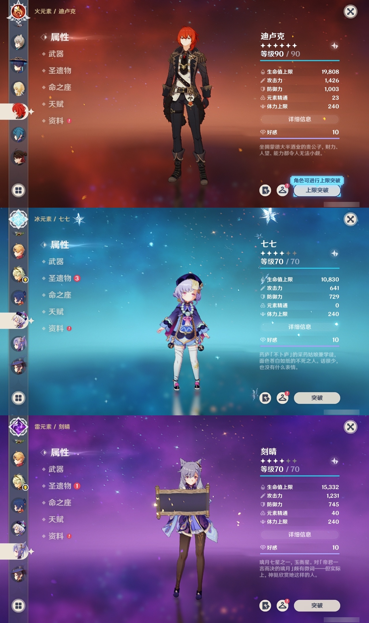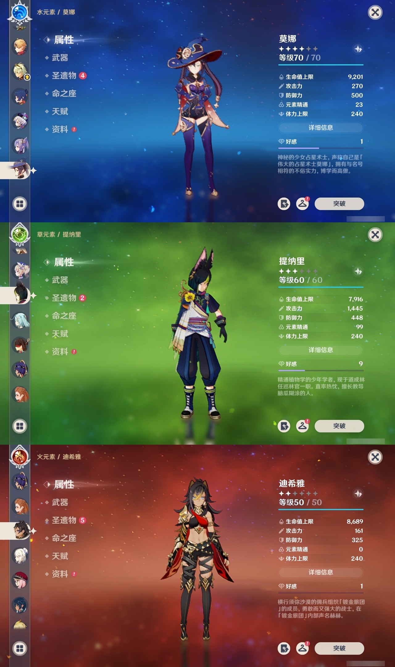 【原神】满命,冒险等级:60,五星数量:47,五星角色:芙宁娜 6命迪卢克 6命刻晴 6命琴 5命七七 3命提纳里 3命雷电将军 2命夜兰 2命纳西妲 2命恰斯卡 1命阿蕾奇诺 1命胡桃 1命莫娜 1命荒泷一斗 1命希诺宁神里绫华温迪宵宫迪希雅钟离八重神子神里绫人阿贝多那维莱特娜维娅千织妮露艾尔海森流浪者枫原万叶甘雨__五星武器:天空之脊 2精天空之卷 2精星鹫赤羽最初的大魔术静水流涌之辉飞雷之弦振和璞鸢护摩之杖天空之傲天空之刃天空之翼无工之剑薙草之稻光若水千夜浮梦__四星角色:班尼特 6命行秋 6命九条裟罗 6命香菱 6命久岐忍 6命鹿野院平藏 6命珐露珊 6命凝光 6命迪奥娜 6命砂糖 6命坎蒂丝 6命多莉 6命柯莱 6命芭芭拉 6命云堇 6命托马 6命五郎 6命烟绯 6命重云 6命辛焱 6命诺艾尔 6命罗莎莉亚 6命雷泽 6命菲谢尔 6命北斗 6命菲米尼 6命夏洛蒂 6命赛索斯 5命瑶瑶 4命莱依拉 4命欧洛伦 4命琳妮特 4命绮良良 3命早柚 3命米卡 1命卡维 1命夏沃蕾 1命嘉明 1命埃洛伊卡齐娜