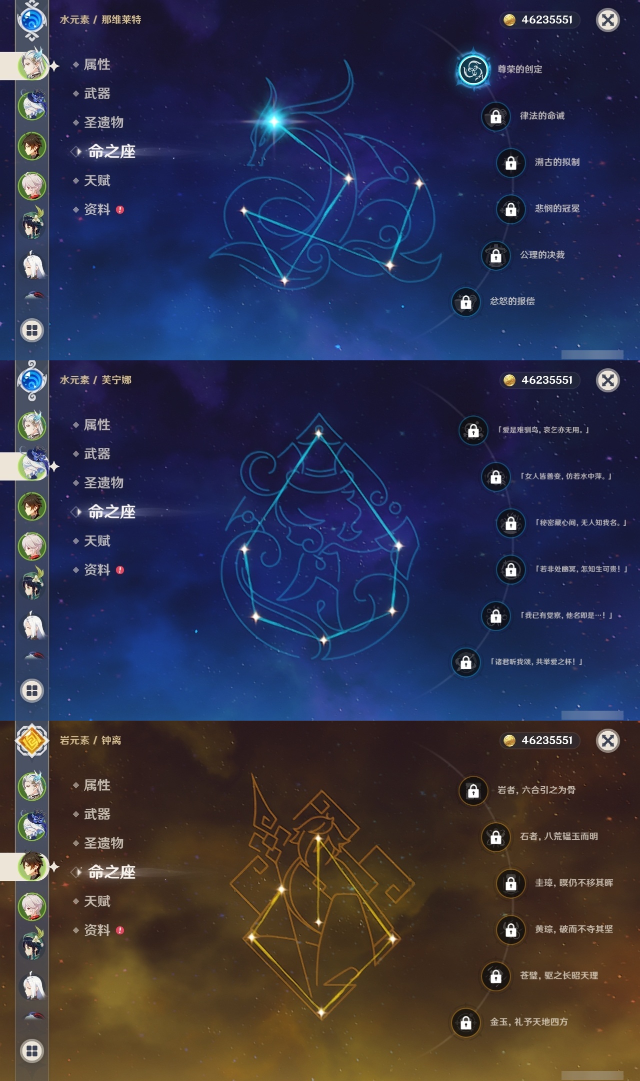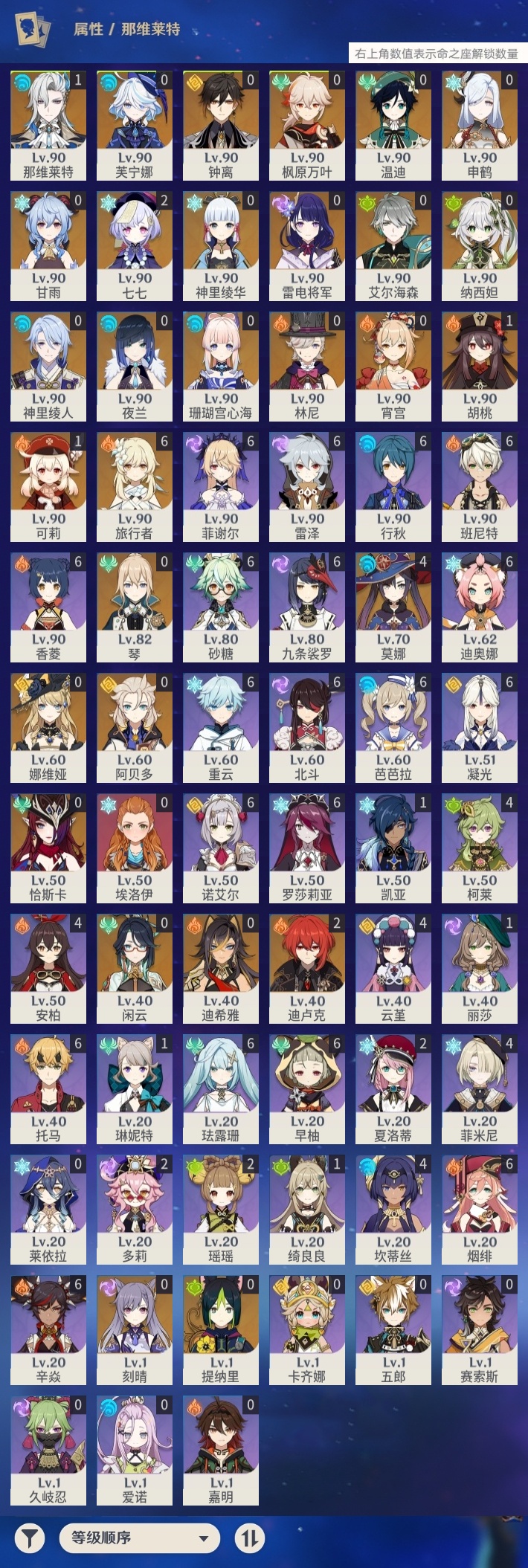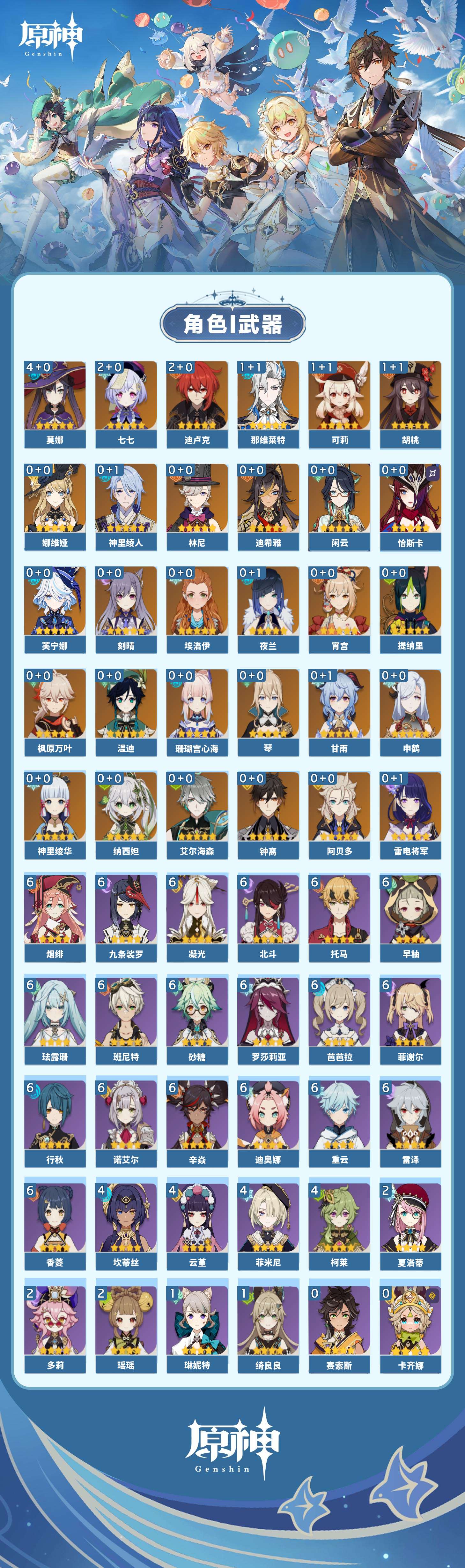 【原神】【lyys9128】冒险等级:60,五星数量:42,五星角色:莫娜 4命迪卢克 2命七七 2命那维莱特 1命胡桃 1命可莉 1命琴珊瑚宫心海神里绫华温迪恰斯卡宵宫迪希雅钟离申鹤神里绫人林尼阿贝多夜兰芙宁娜娜维娅提纳里闲云纳西妲艾尔海森枫原万叶甘雨刻晴雷电将军__五星武器:万世流涌大典阿莫斯之弓和璞鸢护摩之杖四风原典天空之傲天空之脊天空之翼无工之剑薙草之稻光波乱月白经津若水__四星角色:班尼特 6命行秋 6命九条裟罗 6命香菱 6命珐露珊 6命凝光 6命迪奥娜 6命砂糖 6命芭芭拉 6命早柚 6命托马 6命烟绯 6命重云 6命辛焱 6命诺艾尔 6命罗莎莉亚 6命雷泽 6命菲谢尔 6命北斗 6命坎蒂丝 4命柯莱 4命云堇 4命菲米尼 4命瑶瑶 2命多莉 2命夏洛蒂 2命绮良良 1命琳妮特 1命埃洛伊卡齐娜久岐忍莱依拉五郎嘉明爱诺赛索斯