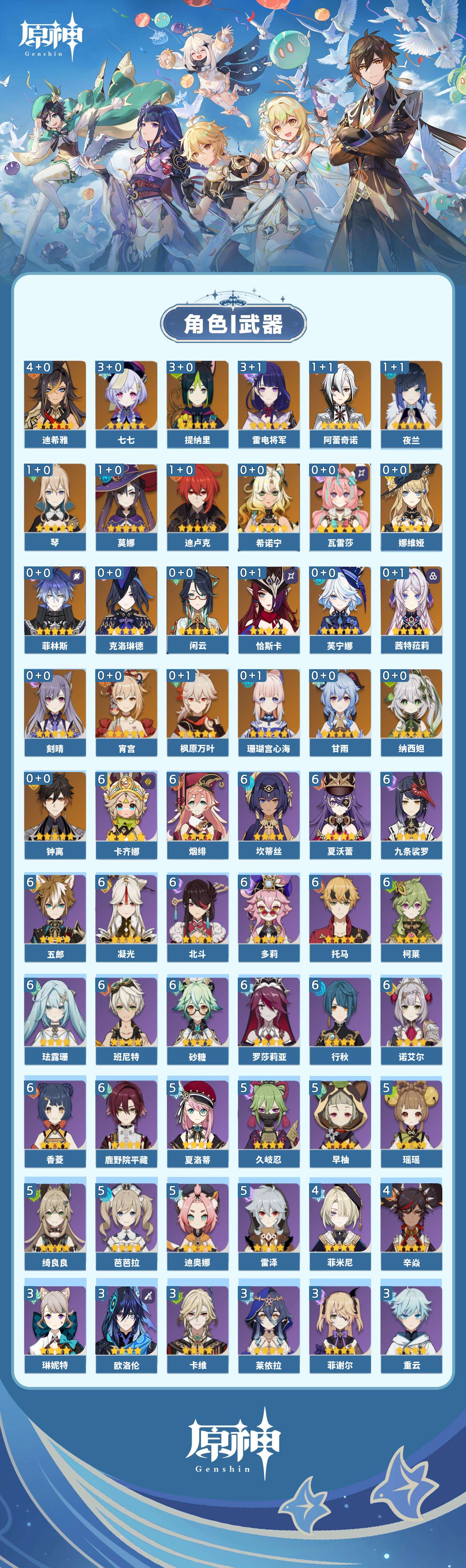 【原神】【lyys9129】冒险等级:60,五星数量:39,五星角色:迪希雅 4命雷电将军 3命七七 3命提纳里 3命阿蕾奇诺 1命迪卢克 1命莫娜 1命琴 1命夜兰 1命珊瑚宫心海希诺宁恰斯卡茜特菈莉宵宫钟离瓦雷莎芙宁娜娜维娅闲云纳西妲菲林斯枫原万叶甘雨克洛琳德刻晴__五星武器:碧落之珑星鹫赤羽祭星者之望最初的大魔术赤月之形不灭月华苍古自由之誓风鹰剑天空之傲天空之卷天空之翼薙草之稻光若水__四星角色:卡齐娜 6命班尼特 6命行秋 6命九条裟罗 6命香菱 6命鹿野院平藏 6命珐露珊 6命凝光 6命砂糖 6命坎蒂丝 6命多莉 6命柯莱 6命托马 6命五郎 6命烟绯 6命诺艾尔 6命罗莎莉亚 6命北斗 6命夏沃蕾 6命久岐忍 5命迪奥娜 5命绮良良 5命瑶瑶 5命芭芭拉 5命早柚 5命雷泽 5命夏洛蒂 5命辛焱 4命菲米尼 4命莱依拉 3命卡维 3命欧洛伦 3命重云 3命菲谢尔 3命琳妮特 3命云堇 2命米卡 1命嘉明 1命奇偶·女性蓝砚伊安珊塔利雅爱诺赛索斯