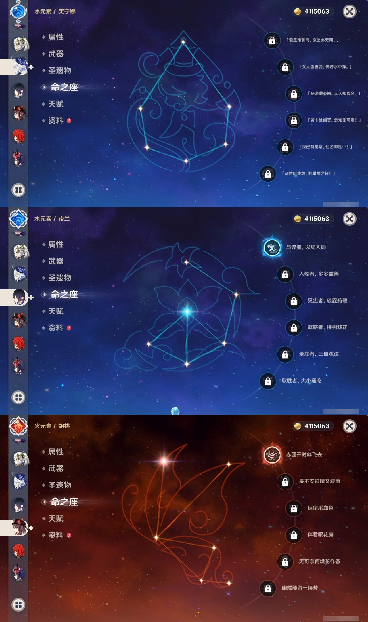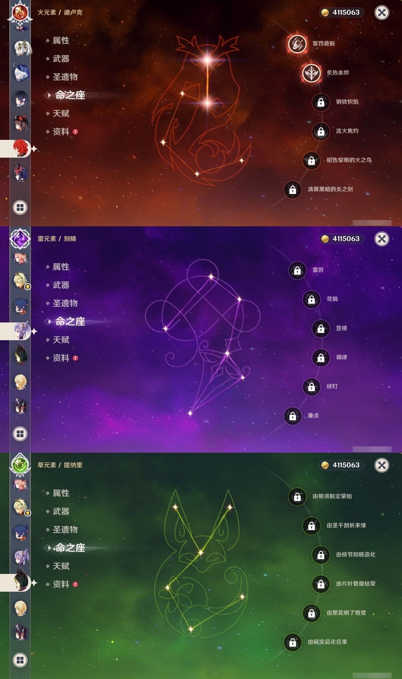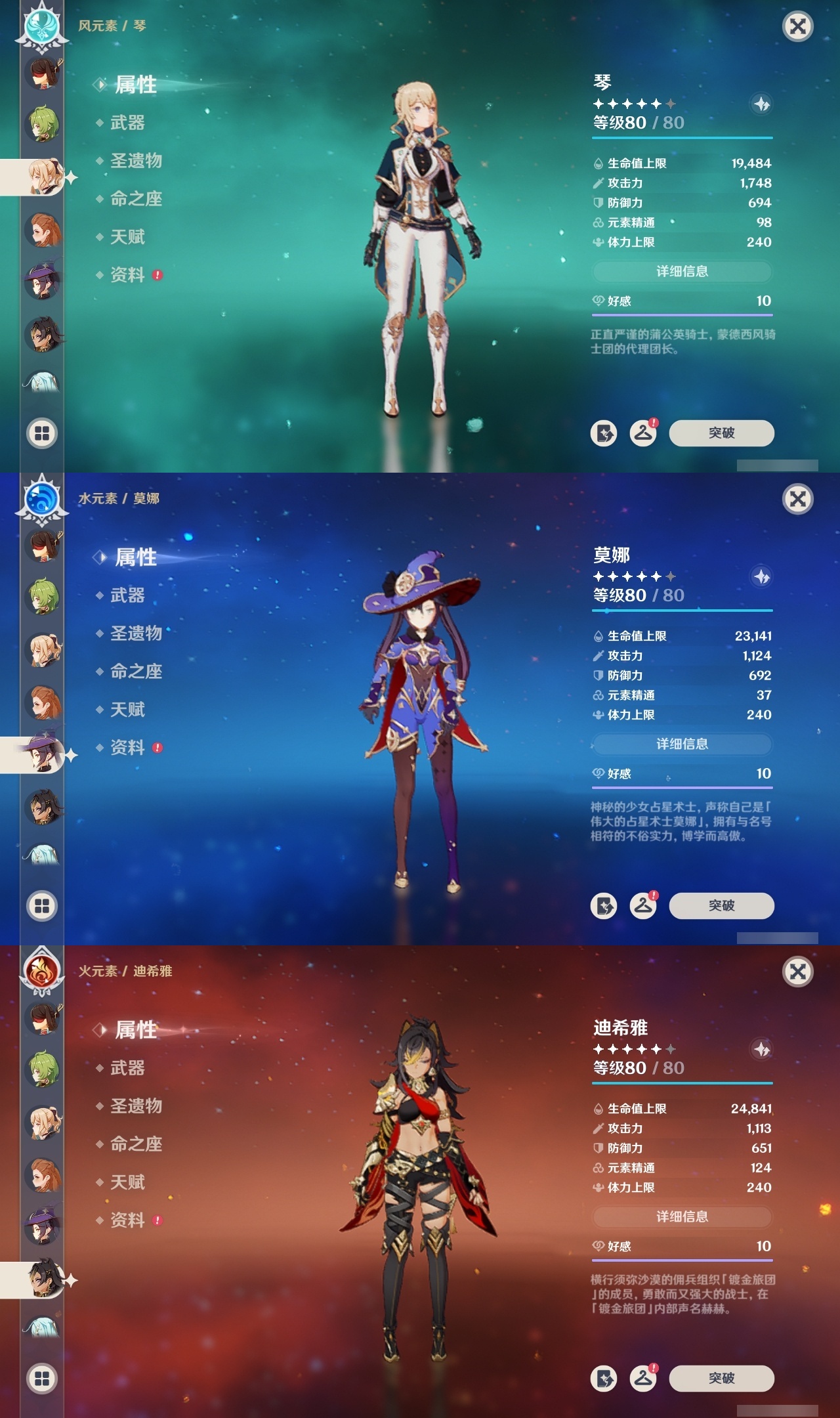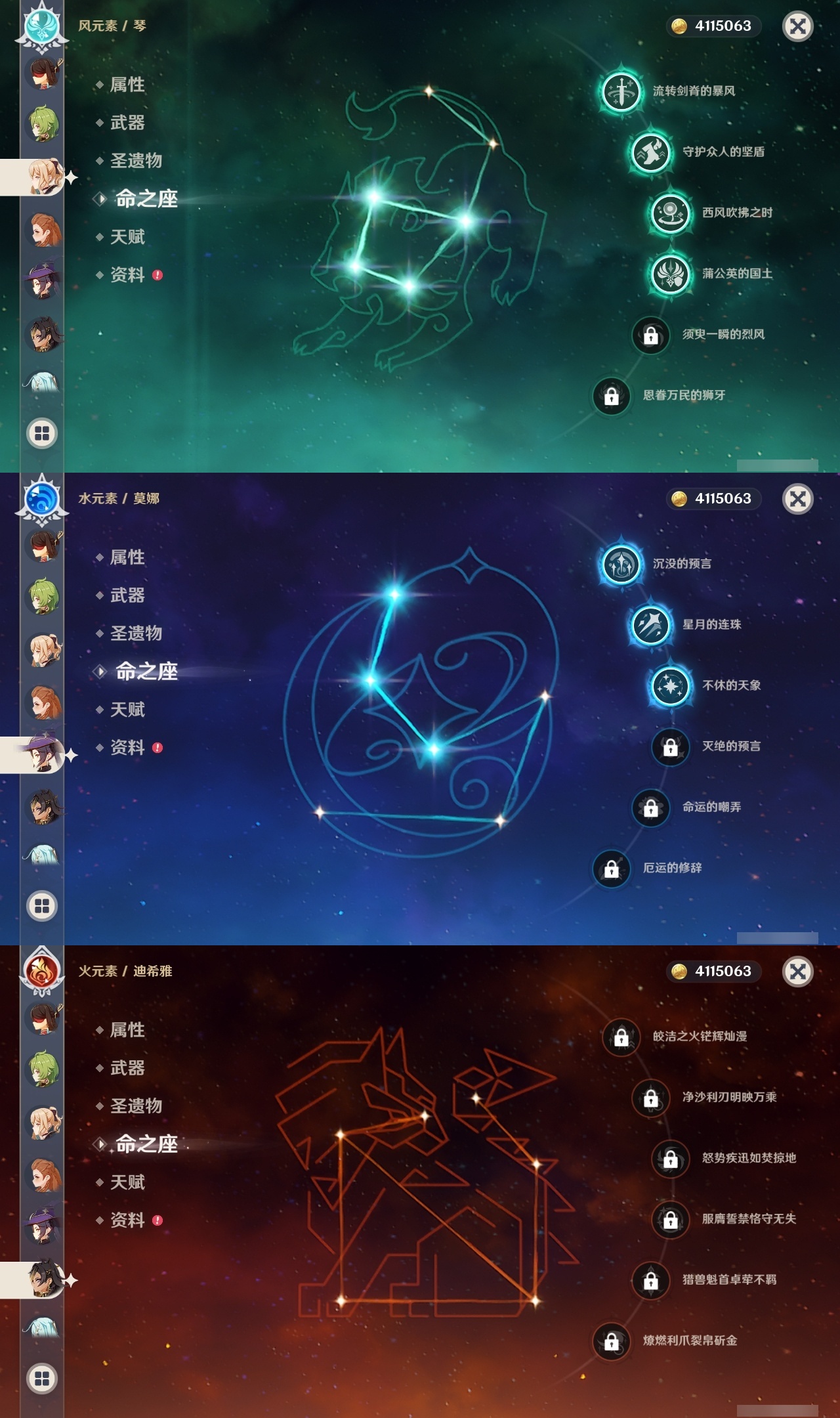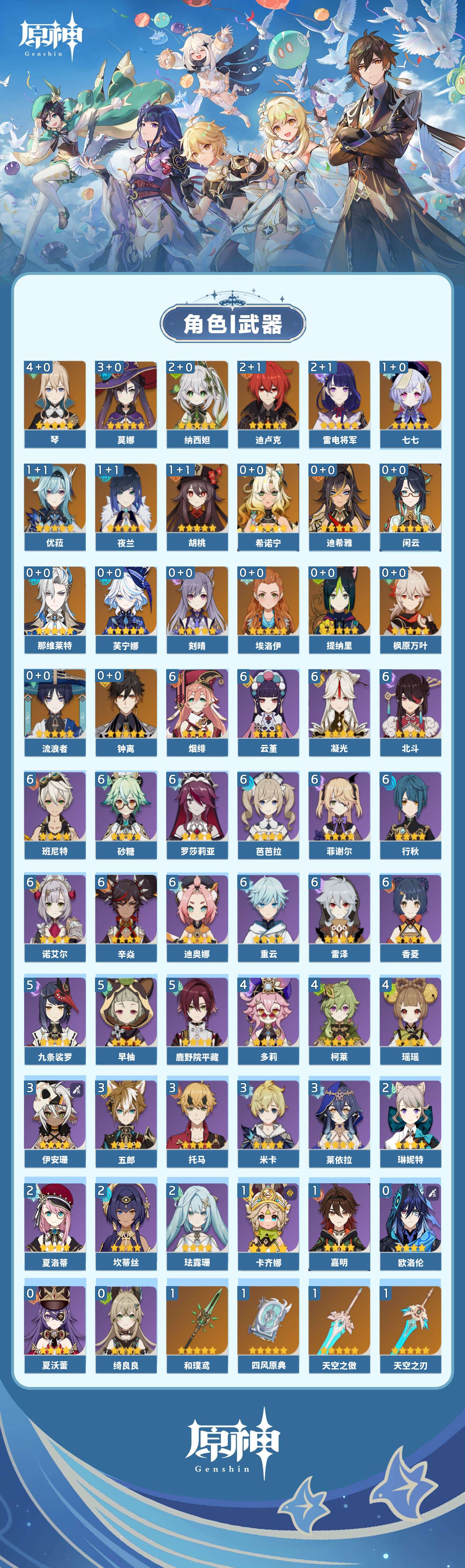 【原神】【lyys9131】冒险等级:60,五星数量:33,五星角色:琴 4命莫娜 3命迪卢克 2命雷电将军 2命纳西妲 2命胡桃 1命七七 1命优菈 1命夜兰 1命希诺宁迪希雅钟离那维莱特芙宁娜提纳里闲云流浪者枫原万叶刻晴__五星武器:飞雷之弦振风鹰剑和璞鸢护摩之杖狼的末路四风原典松籁响起之时天空之傲天空之刃薙草之稻光终末嗟叹之诗若水赤沙之杖__四星角色:班尼特 6命行秋 6命香菱 6命凝光 6命迪奥娜 6命砂糖 6命芭芭拉 6命云堇 6命烟绯 6命重云 6命辛焱 6命诺艾尔 6命罗莎莉亚 6命雷泽 6命菲谢尔 6命北斗 6命九条裟罗 5命鹿野院平藏 5命早柚 5命瑶瑶 4命多莉 4命柯莱 4命莱依拉 3命米卡 3命托马 3命五郎 3命伊安珊 3命珐露珊 2命坎蒂丝 2命琳妮特 2命夏洛蒂 2命卡齐娜 1命嘉明 1命埃洛伊绮良良欧洛伦夏沃蕾