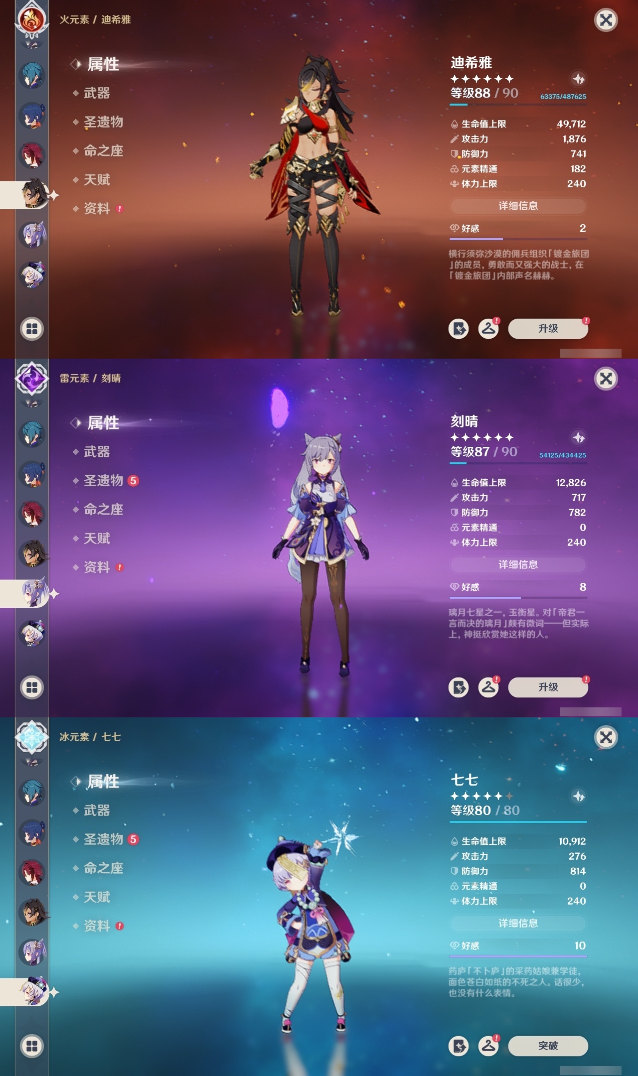 【原神】【lyys9223】冒险等级:60,五星数量:47,五星角色:七七 4命迪卢克 3命雷电将军 3命刻晴 2命提纳里 2命胡桃 1命钟离 1命八重神子 1命莫娜琴珊瑚宫心海温迪宵宫迪希雅荒泷一斗达达利亚梦见月瑞希神里绫人阿贝多夜兰芙宁娜千织纳西妲枫原万叶甘雨__五星武器:冲浪时光碧落之珑最初的大魔术静水流涌之辉图莱杜拉的回忆飞雷之弦振和璞鸢护摩之杖狼的末路磐岩结绿四风原典天空之脊天空之卷天空之刃天空之翼薙草之稻光赤角石溃杵冬极白星神乐之真意贯虹之槊__四星角色:班尼特 6命行秋 6命九条裟罗 6命香菱 6命凝光 6命迪奥娜 6命砂糖 6命柯莱 6命芭芭拉 6命早柚 6命托马 6命烟绯 6命重云 6命辛焱 6命诺艾尔 6命罗莎莉亚 6命雷泽 6命菲谢尔 6命北斗 6命久岐忍 4命鹿野院平藏 4命莱依拉 4命多莉 4命云堇 4命夏沃蕾 4命珐露珊 3命瑶瑶 3命五郎 3命米卡 2命爱诺 2命琳妮特 1命夏洛蒂 1命埃洛伊奇偶·女性卡齐娜绮良良坎蒂丝菲米尼嘉明伊法赛索斯