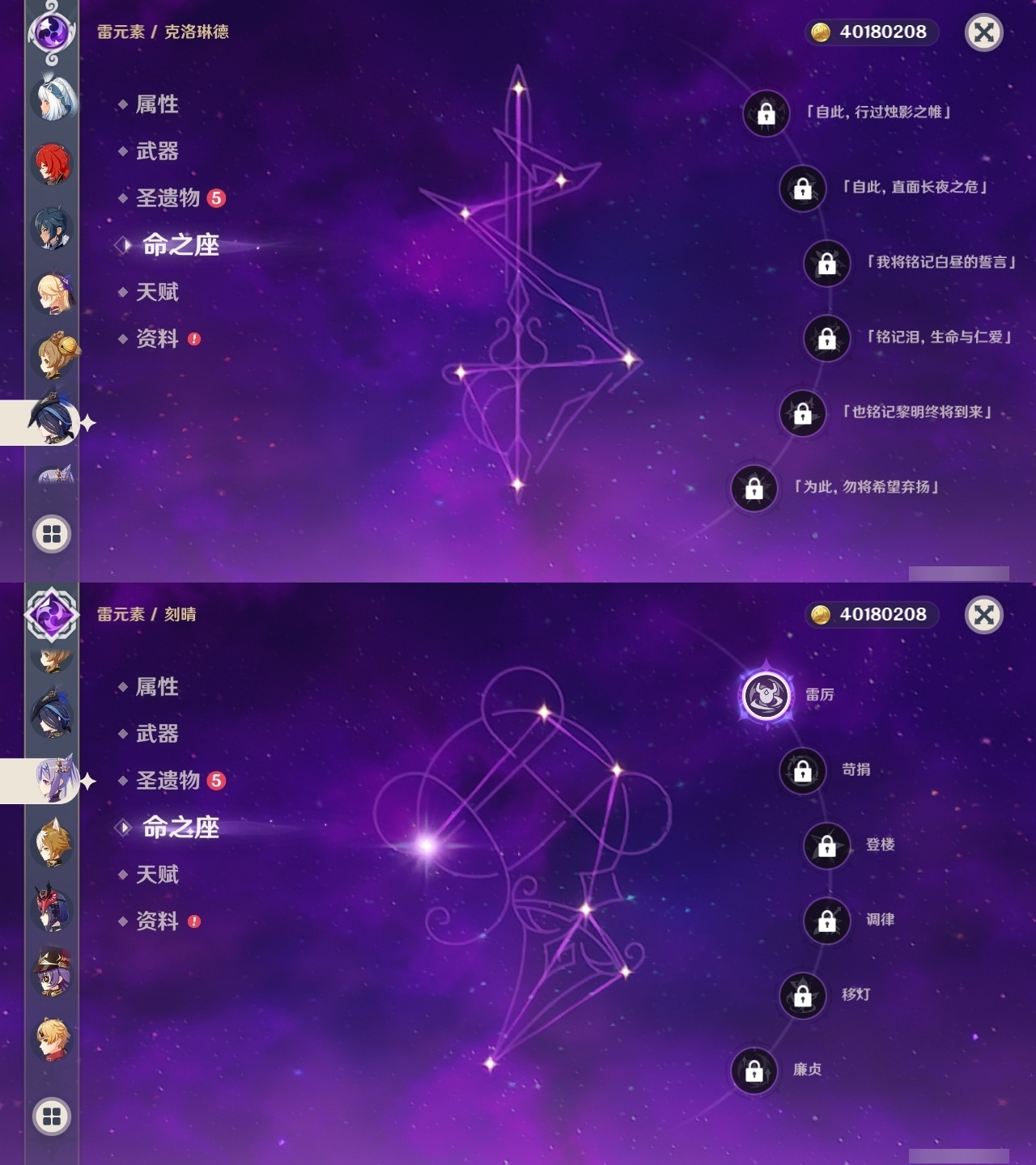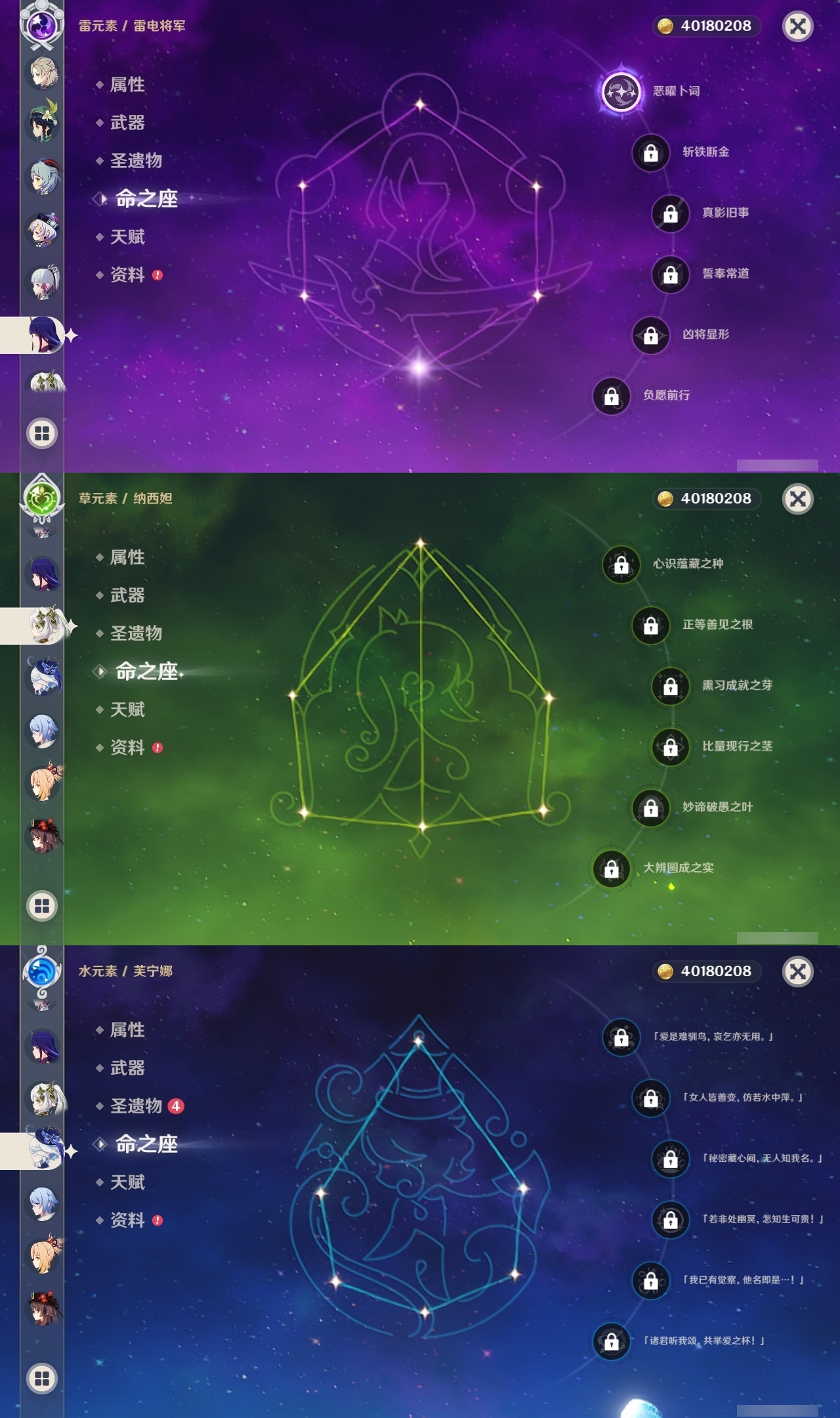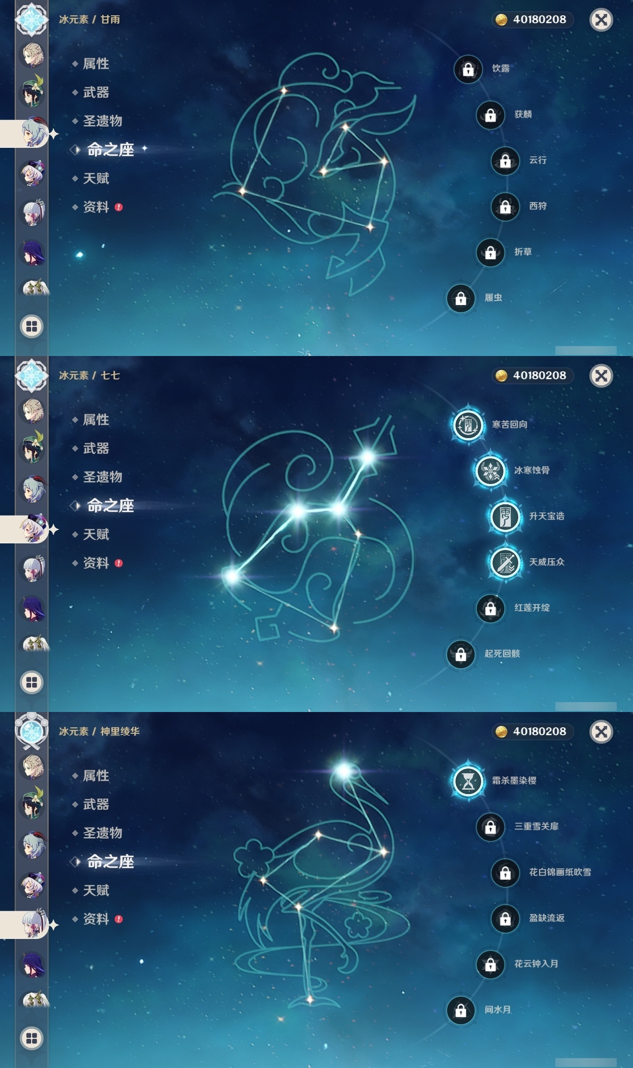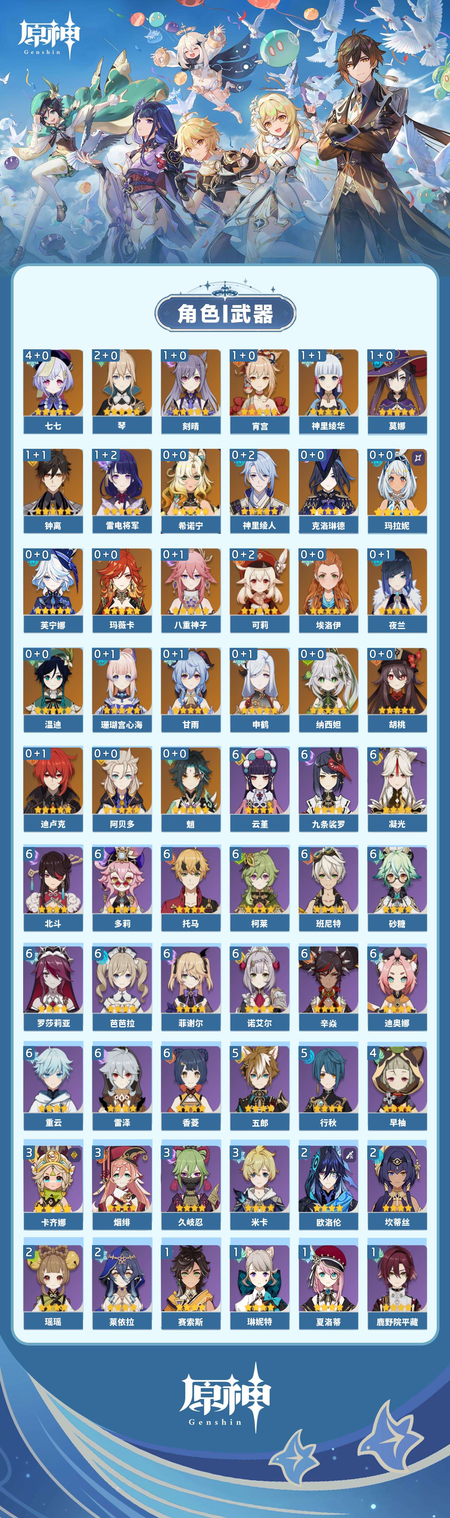 【原神】【lyys9235】冒险等级:59,五星数量:43,五星角色:七七 4命琴 2命刻晴 1命雷电将军 1命莫娜 1命神里绫华 1命宵宫 1命钟离 1命玛拉妮珊瑚宫心海希诺宁温迪玛薇卡申鹤八重神子神里绫人阿贝多夜兰芙宁娜纳西妲迪卢克甘雨魈胡桃克洛琳德可莉__五星武器:四风原典 2精薙草之稻光 2精波乱月白经津 2精有乐御簾切阿莫斯之弓不灭月华风鹰剑狼的末路天空之傲天空之刃雾切之回光息灾神乐之真意贯虹之槊若水圣显之钥__四星角色:班尼特 6命九条裟罗 6命香菱 6命凝光 6命迪奥娜 6命砂糖 6命多莉 6命柯莱 6命芭芭拉 6命云堇 6命托马 6命重云 6命辛焱 6命诺艾尔 6命罗莎莉亚 6命雷泽 6命菲谢尔 6命北斗 6命行秋 5命五郎 5命早柚 4命卡齐娜 3命久岐忍 3命米卡 3命烟绯 3命瑶瑶 2命莱依拉 2命坎蒂丝 2命欧洛伦 2命鹿野院平藏 1命琳妮特 1命夏洛蒂 1命赛索斯 1命埃洛伊绮良良菲米尼夏沃蕾