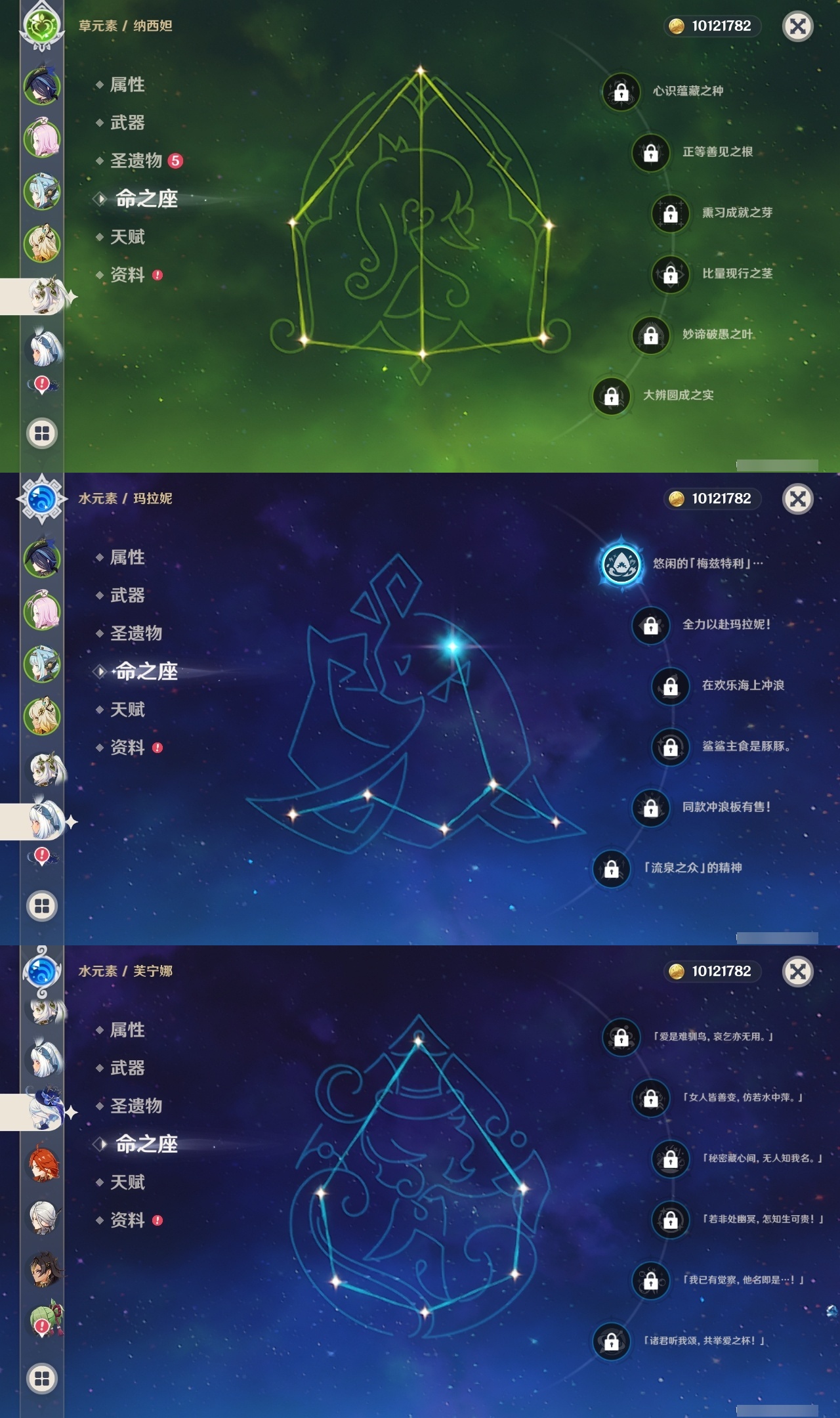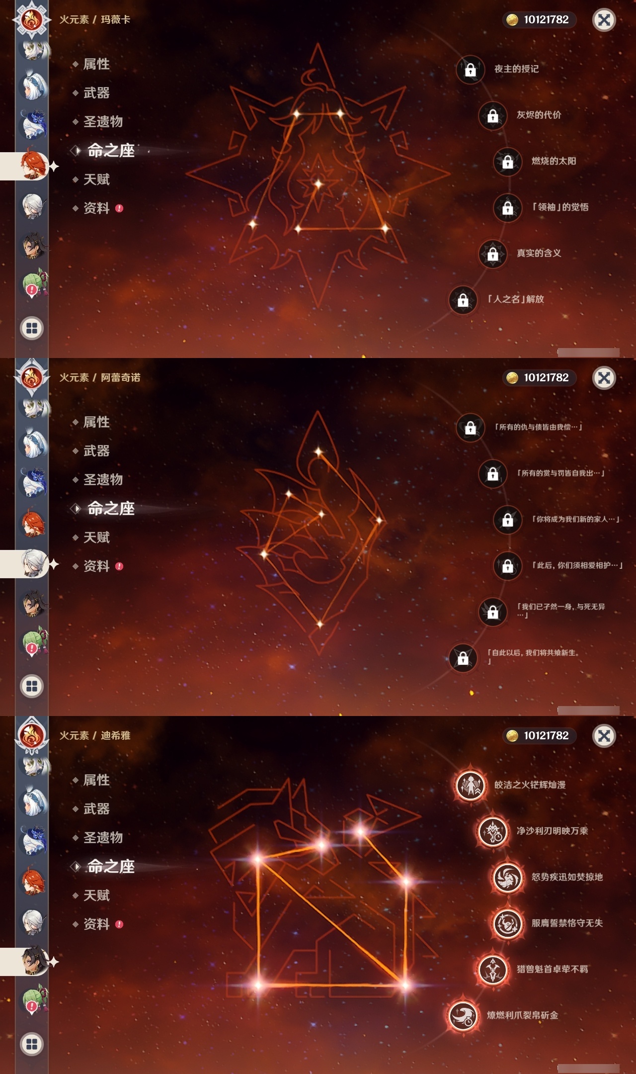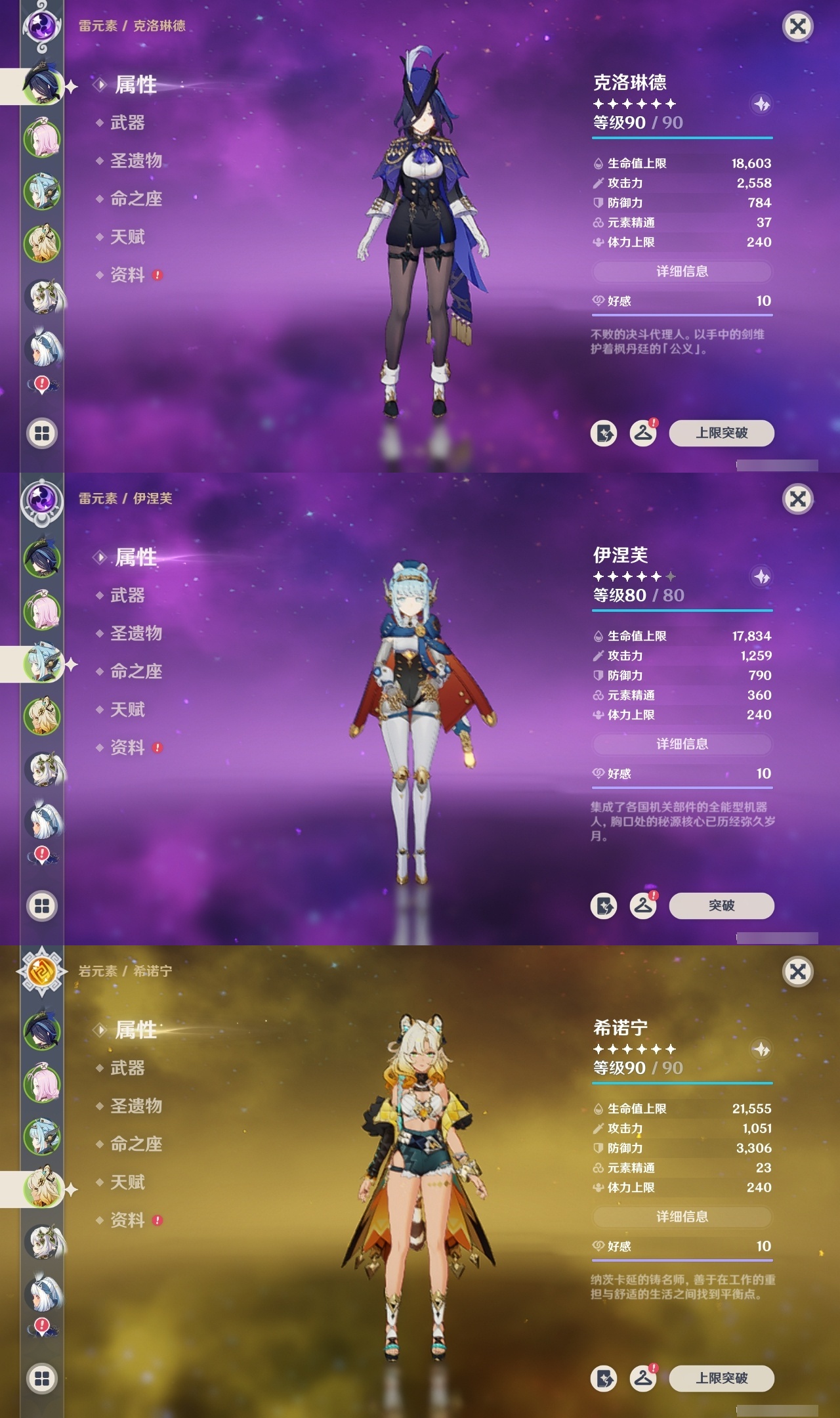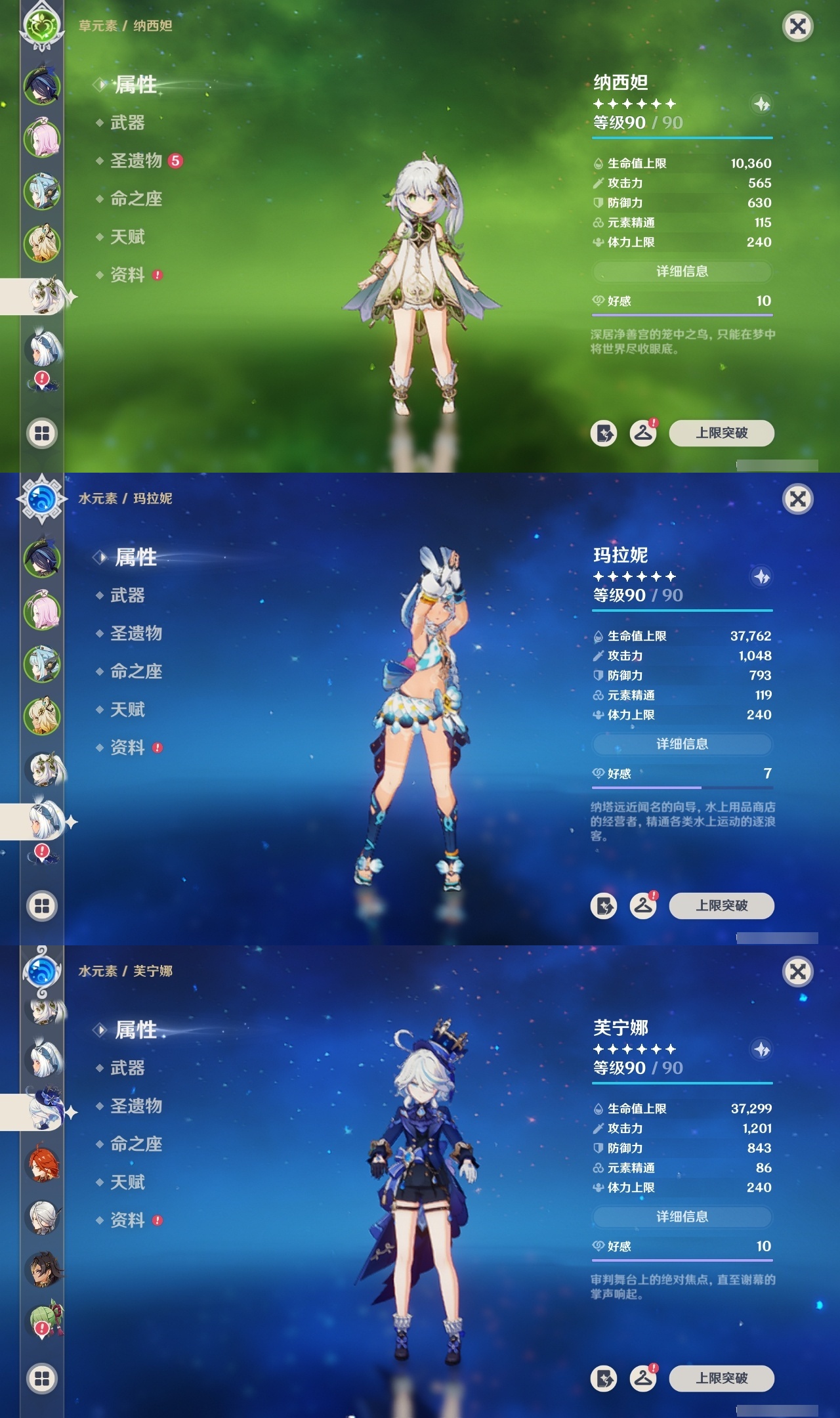 【原神】满命,冒险等级:60,五星数量:27,五星角色:迪希雅 6命闲云 6命克洛琳德 6命琴 4命迪卢克 3命希诺宁 2命玛拉妮 1命伊涅芙 1命刻晴 1命七七神里绫华恰斯卡玛薇卡芙宁娜阿蕾奇诺纳西妲奈芙尔杜林枫原万叶__五星武器:鹤鸣余音 2精苇海信标溢彩心念风鹰剑天空之傲天空之刃赦罪__四星角色:班尼特 6命行秋 6命久岐忍 6命珐露珊 6命砂糖 6命米卡 6命坎蒂丝 6命柯莱 6命蓝砚 6命托马 6命烟绯 6命罗莎莉亚 6命夏沃蕾 6命嘉明 6命伊安珊 6命赛索斯 6命香菱 5命莱依拉 5命重云 5命北斗 5命卡齐娜 3命九条裟罗 3命多莉 3命卡维 3命菲谢尔 3命琳妮特 3命夏洛蒂 3命凝光 2命云堇 2命辛焱 2命诺艾尔 2命瑶瑶 1命欧洛伦 1命芭芭拉 1命五郎 1命雷泽 1命菲米尼 1命奇偶·男性鹿野院平藏迪奥娜绮良良早柚伊法塔利雅爱诺