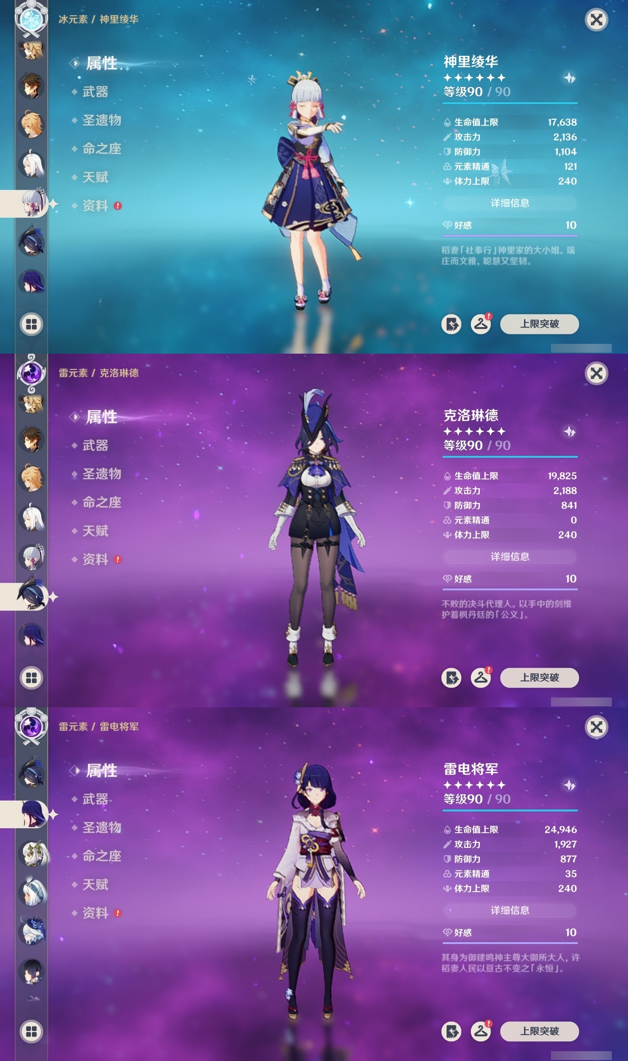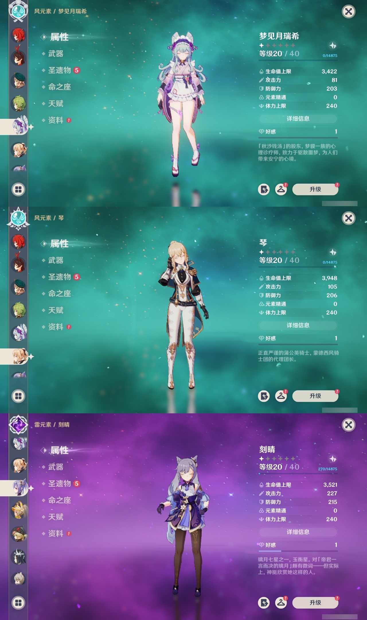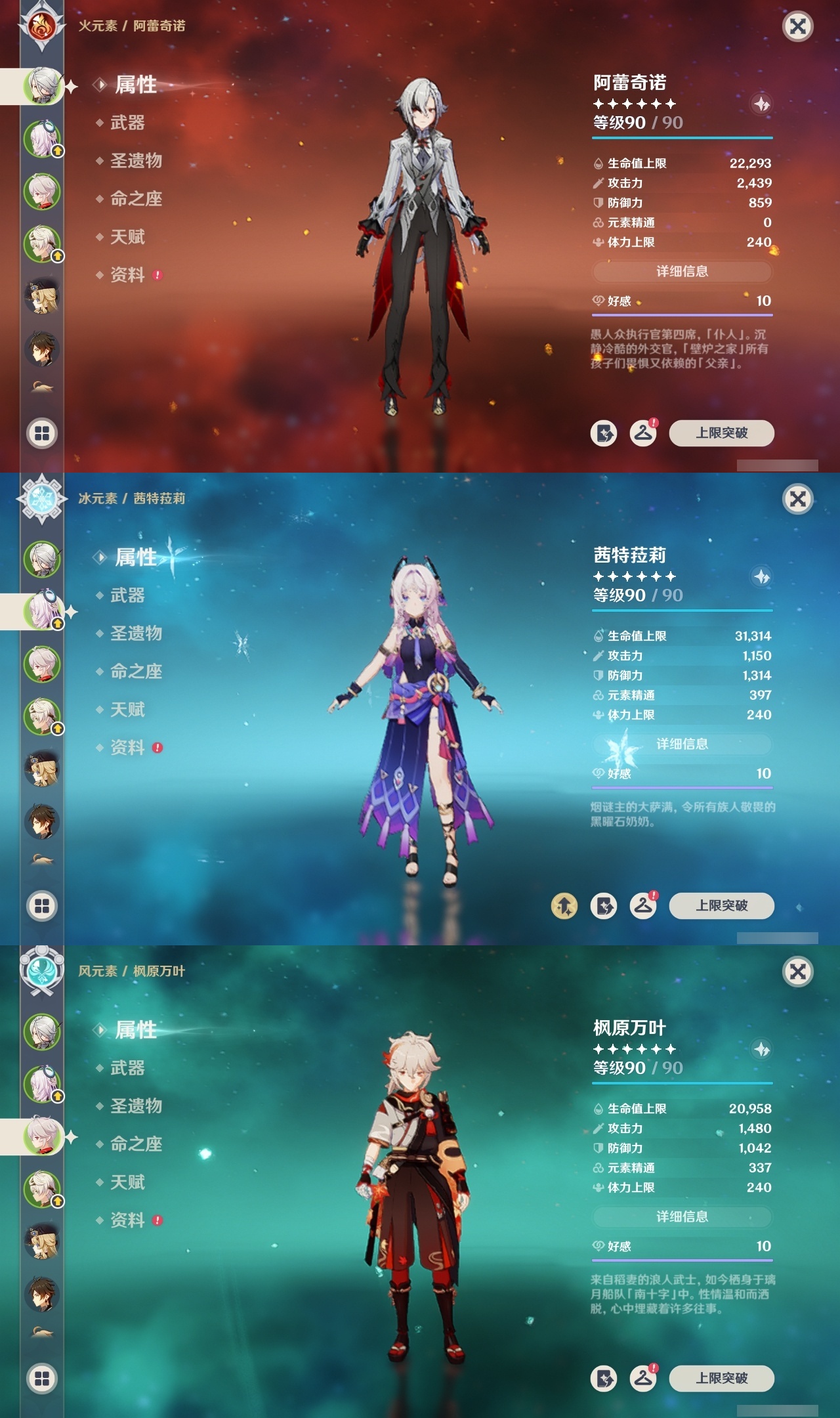 【原神】【lyys9267】冒险等级:60,五星数量:41,五星角色:琴 4命迪卢克 2命刻晴 2命夜兰 2命阿蕾奇诺 1命胡桃 1命七七 1命申鹤 1命提纳里 1命莫娜玛拉妮珊瑚宫心海神里绫华温迪茜特菈莉宵宫钟离荒泷一斗达达利亚梦见月瑞希芙宁娜娜维娅纳西妲奈芙尔枫原万叶克洛琳德雷电将军__五星武器:狼的末路 2精天空之卷 2精千夜浮梦 2精裁断真语秘匣护摩之杖四风原典天空之脊天空之刃无工之剑雾切之回光终末嗟叹之诗若水__四星角色:班尼特 6命行秋 6命香菱 6命久岐忍 6命鹿野院平藏 6命凝光 6命迪奥娜 6命砂糖 6命柯莱 6命芭芭拉 6命云堇 6命早柚 6命五郎 6命烟绯 6命重云 6命辛焱 6命诺艾尔 6命罗莎莉亚 6命菲谢尔 6命北斗 6命托马 5命琳妮特 5命绮良良 4命卡齐娜 3命米卡 3命坎蒂丝 3命多莉 3命雷泽 3命夏沃蕾 3命爱诺 3命九条裟罗 2命瑶瑶 2命蓝砚 2命珐露珊 1命莱依拉 1命卡维 1命欧洛伦 1命菲米尼 1命夏洛蒂 1命嘉明 1命赛索斯 1命埃洛伊