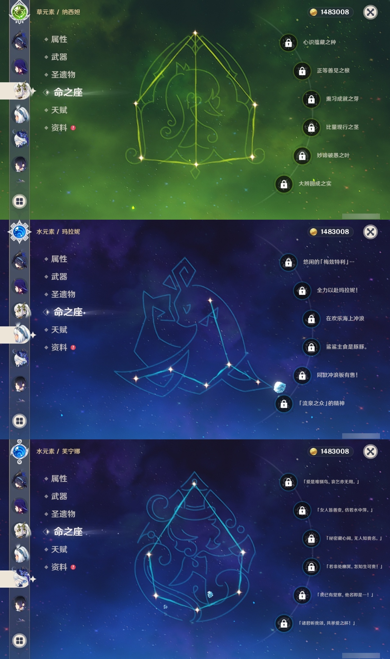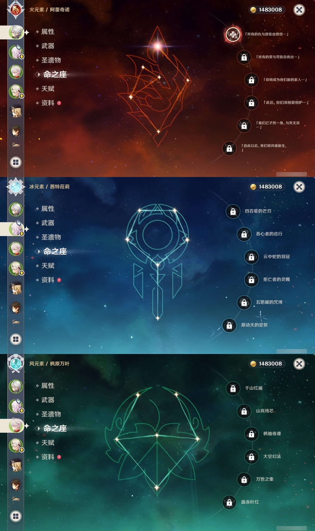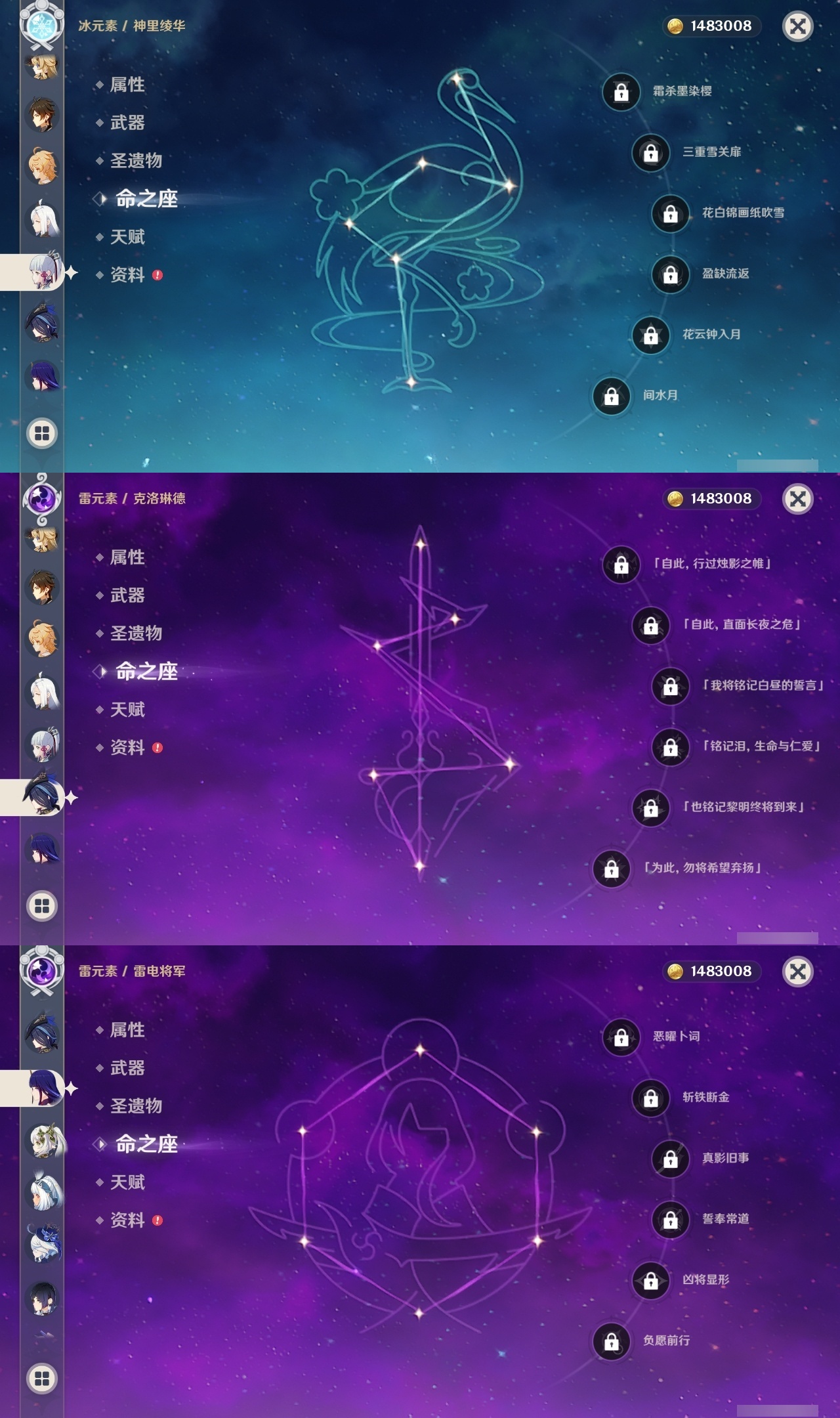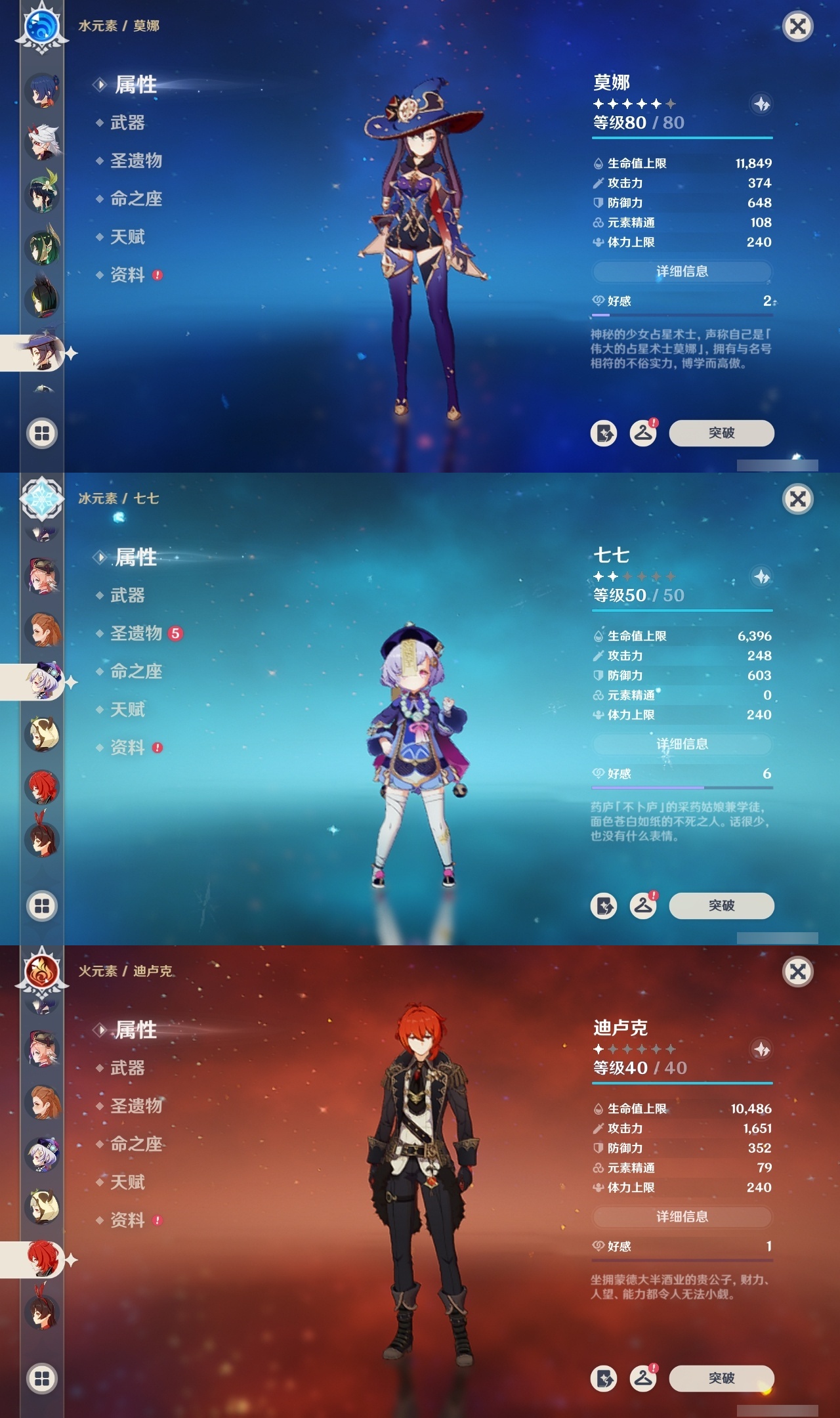 【原神】【lyys9267】冒险等级:60,五星数量:41,五星角色:琴 4命迪卢克 2命刻晴 2命夜兰 2命阿蕾奇诺 1命胡桃 1命七七 1命申鹤 1命提纳里 1命莫娜玛拉妮珊瑚宫心海神里绫华温迪茜特菈莉宵宫钟离荒泷一斗达达利亚梦见月瑞希芙宁娜娜维娅纳西妲奈芙尔枫原万叶克洛琳德雷电将军__五星武器:狼的末路 2精天空之卷 2精千夜浮梦 2精裁断真语秘匣护摩之杖四风原典天空之脊天空之刃无工之剑雾切之回光终末嗟叹之诗若水__四星角色:班尼特 6命行秋 6命香菱 6命久岐忍 6命鹿野院平藏 6命凝光 6命迪奥娜 6命砂糖 6命柯莱 6命芭芭拉 6命云堇 6命早柚 6命五郎 6命烟绯 6命重云 6命辛焱 6命诺艾尔 6命罗莎莉亚 6命菲谢尔 6命北斗 6命托马 5命琳妮特 5命绮良良 4命卡齐娜 3命米卡 3命坎蒂丝 3命多莉 3命雷泽 3命夏沃蕾 3命爱诺 3命九条裟罗 2命瑶瑶 2命蓝砚 2命珐露珊 1命莱依拉 1命卡维 1命欧洛伦 1命菲米尼 1命夏洛蒂 1命嘉明 1命赛索斯 1命埃洛伊