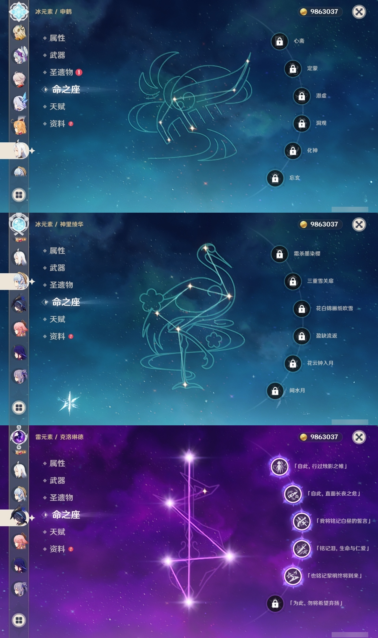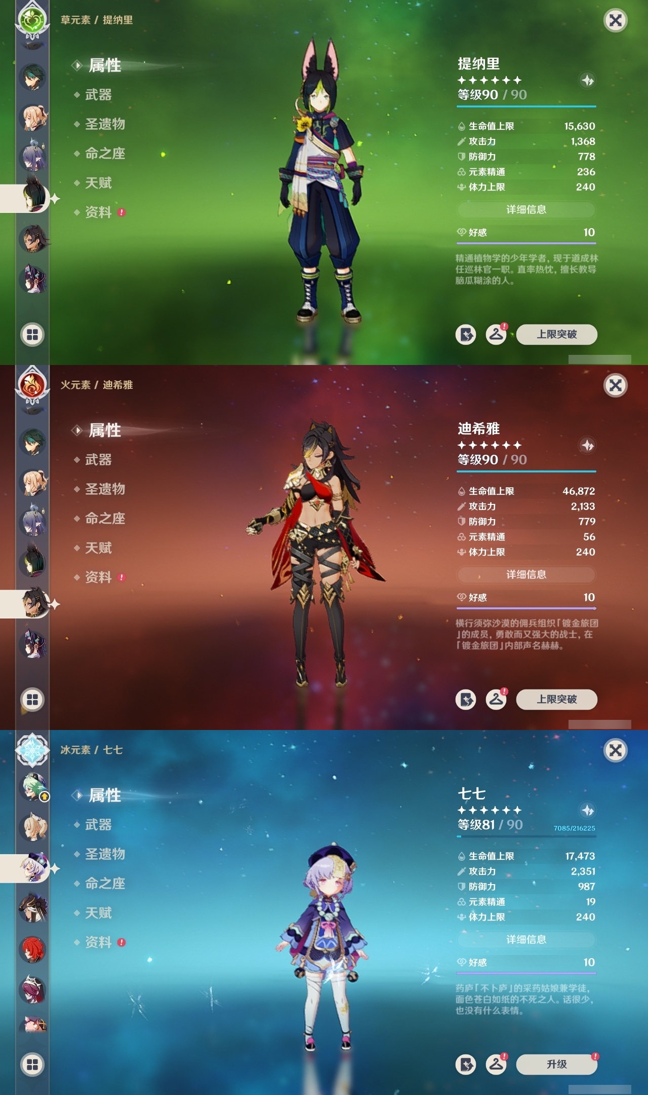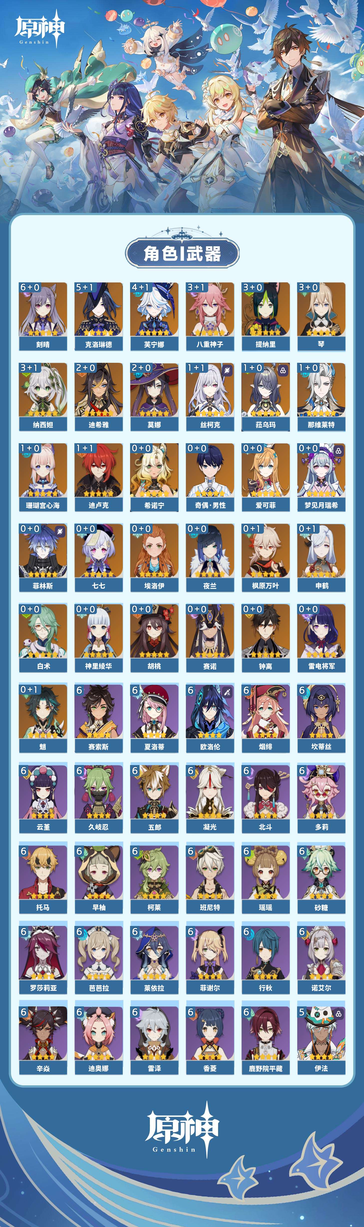 【原神】【lyys9130】冒险等级:60,五星数量:46,五星角色:刻晴 6命克洛琳德 5命芙宁娜 4命琴 3命八重神子 3命提纳里 3命纳西妲 3命迪希雅 2命莫娜 2命那维莱特 1命丝柯克 1命菈乌玛 1命迪卢克 1命珊瑚宫心海 1命七七希诺宁白术神里绫华钟离梦见月瑞希申鹤夜兰赛诺爱可菲菲林斯枫原万叶魈胡桃雷电将军__五星武器:风鹰剑 3精冲浪时光静水流涌之辉苍耀苍古自由之誓和璞鸢狼的末路天空之傲天空之脊天空之刃息灾神乐之真意千夜浮梦赦罪__四星角色:班尼特 6命行秋 6命香菱 6命久岐忍 6命鹿野院平藏 6命凝光 6命迪奥娜 6命砂糖 6命瑶瑶 6命莱依拉 6命坎蒂丝 6命多莉 6命柯莱 6命芭芭拉 6命欧洛伦 6命云堇 6命早柚 6命托马 6命五郎 6命烟绯 6命辛焱 6命诺艾尔 6命罗莎莉亚 6命雷泽 6命菲谢尔 6命北斗 6命夏洛蒂 6命赛索斯 6命珐露珊 5命重云 5命伊法 5命卡齐娜 4命琳妮特 4命伊安珊 4命九条裟罗 3命卡维 3命蓝砚 3命夏沃蕾 3命嘉明 3命绮良良 2命米卡 1命埃洛伊奇偶·女性奇偶·男性菲米尼塔利雅爱诺