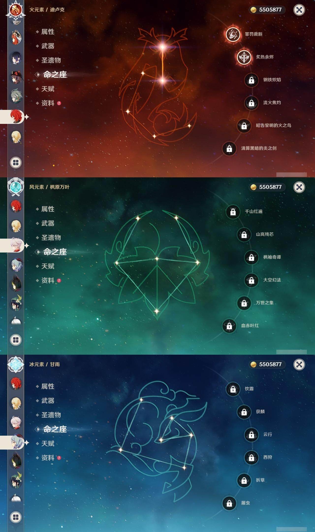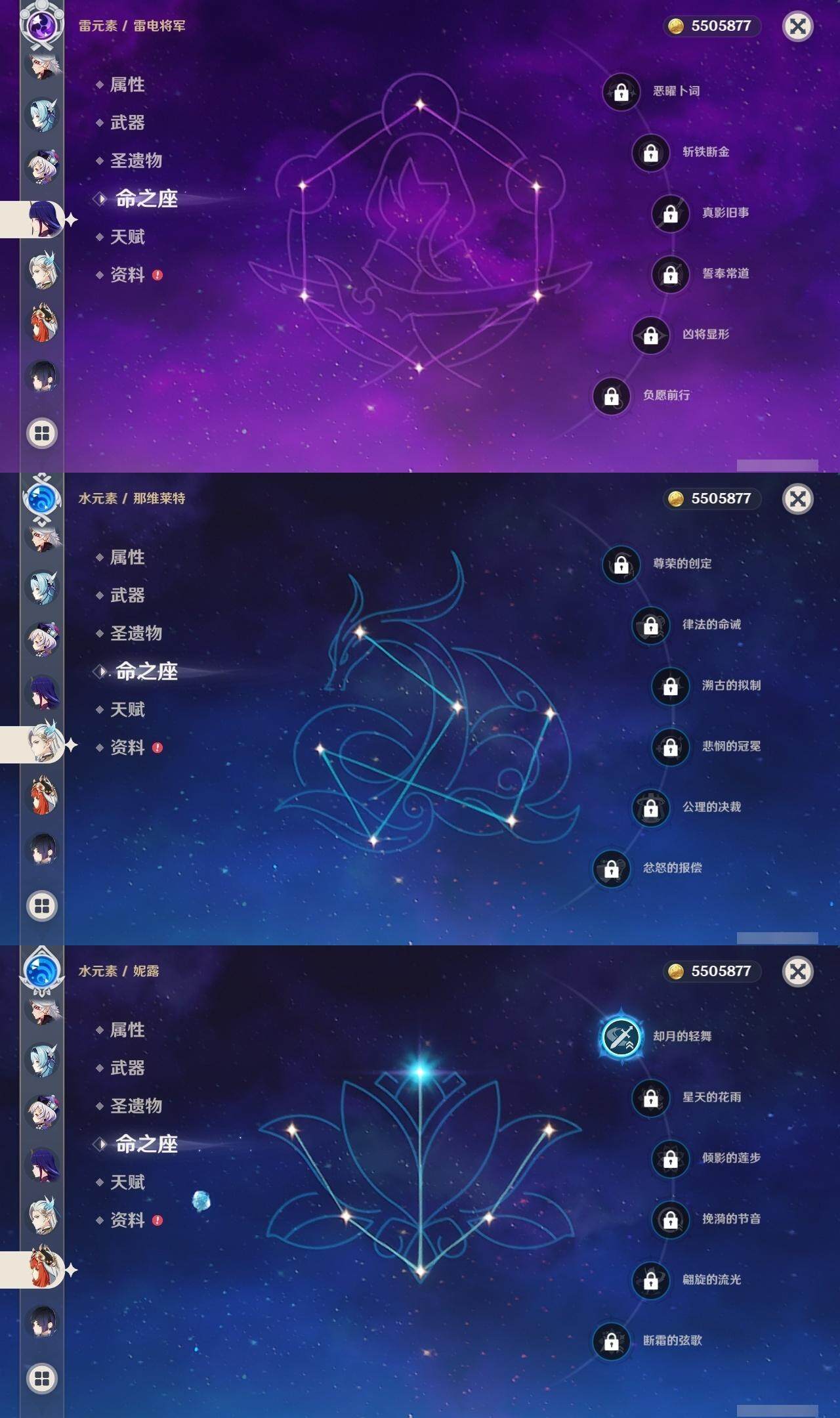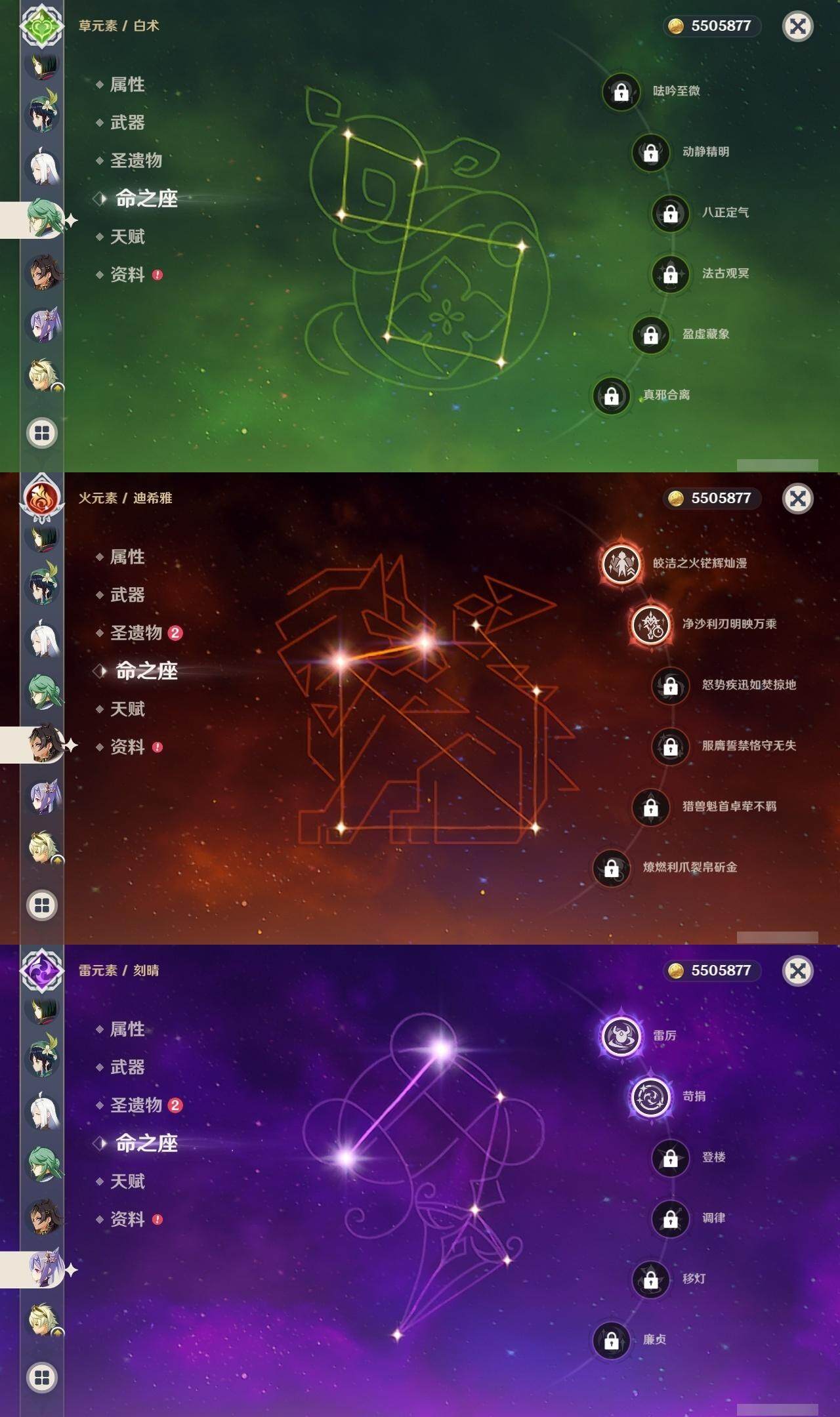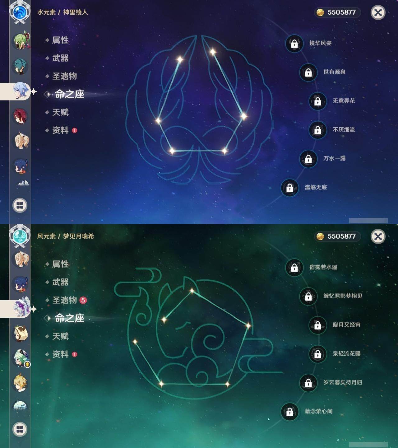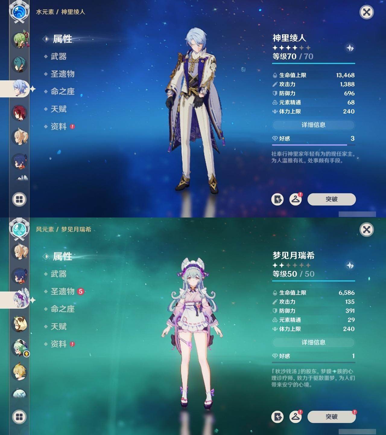 [14620992]59级/54黄/女主/23个五星角色/16个五星武器 0命那维莱特0命白术2命迪希雅0命艾尔海森0命纳西妲1命妮露2命提纳里0命夜兰0命神里绫人0命申鹤1命荒泷一斗0命优菈0命雷电将军0命枫原万叶0命钟离1命胡桃0命甘雨0命温迪2命刻晴4命七七2命迪卢克0命梦见月瑞希0命奈芙尔精1碧落之珑精1千夜浮梦精1圣显之钥精1若水精1赤角石溃杵精1薙草之稻光精1雾切之回光精1松籁响起之时精1四风原典精1阿莫斯之弓精1天空之刃精1天空之卷精1风鹰剑精1真语秘匣