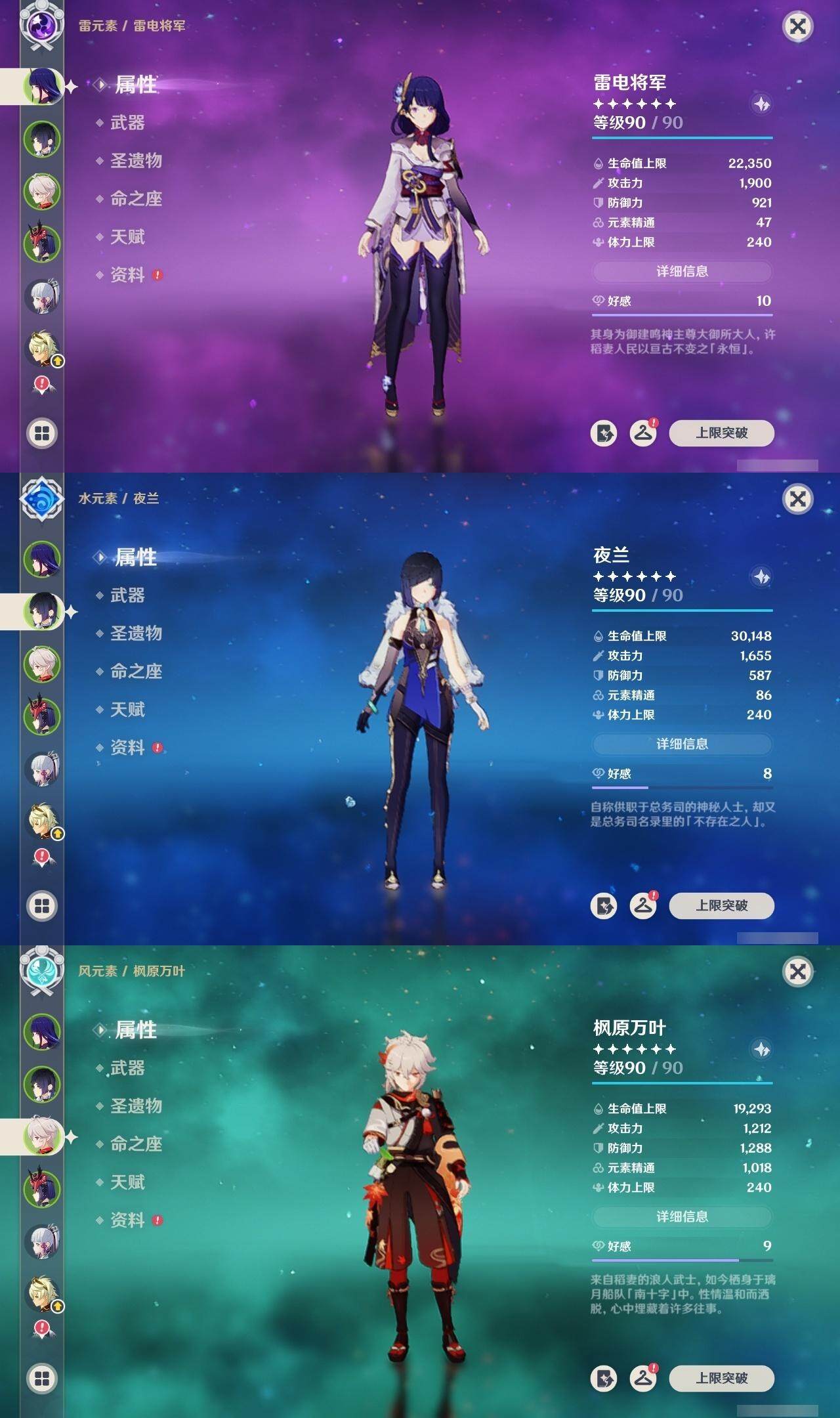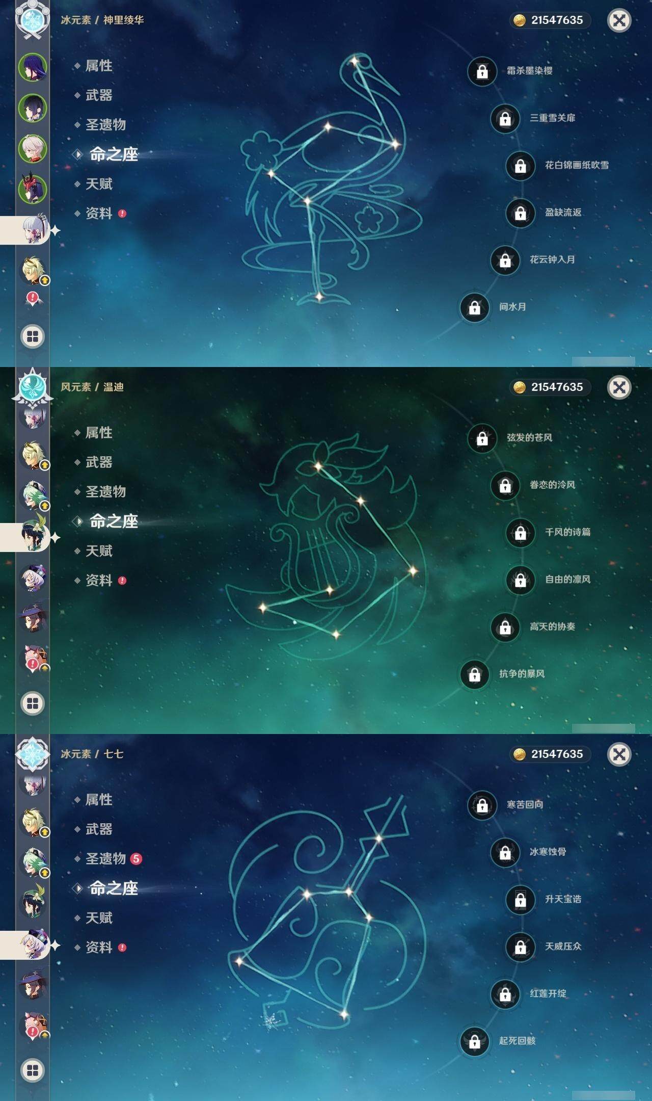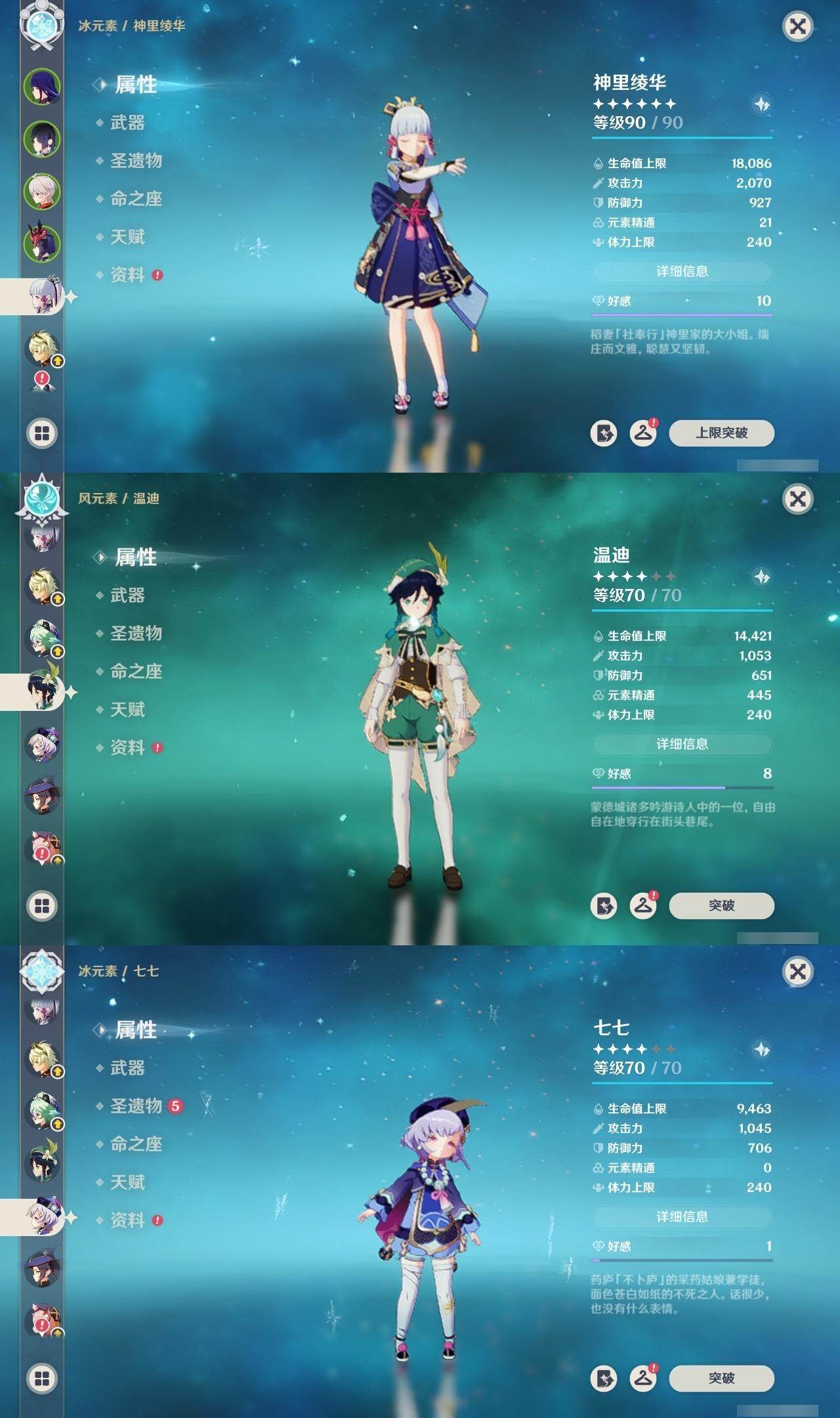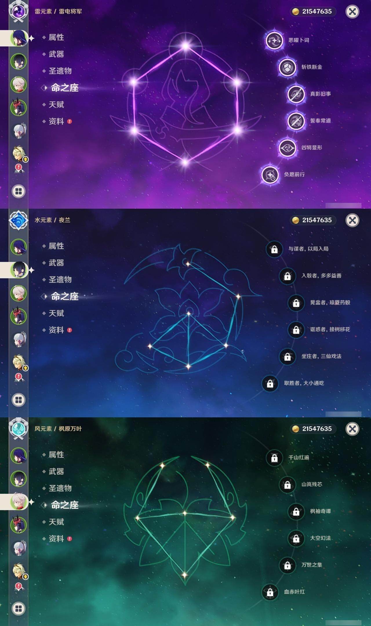[14634703]56级/23黄/女主/11个五星角色/4个五星武器 0命赛诺0命提纳里0命夜兰满命雷电将军0命枫原万叶0命神里绫华0命温迪0命刻晴0命七七2命莫娜0命迪卢克精1薙草之稻光精1雾切之回光精1天空之刃精1天空之傲