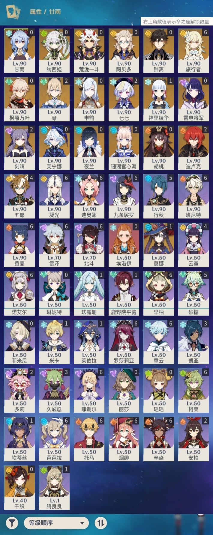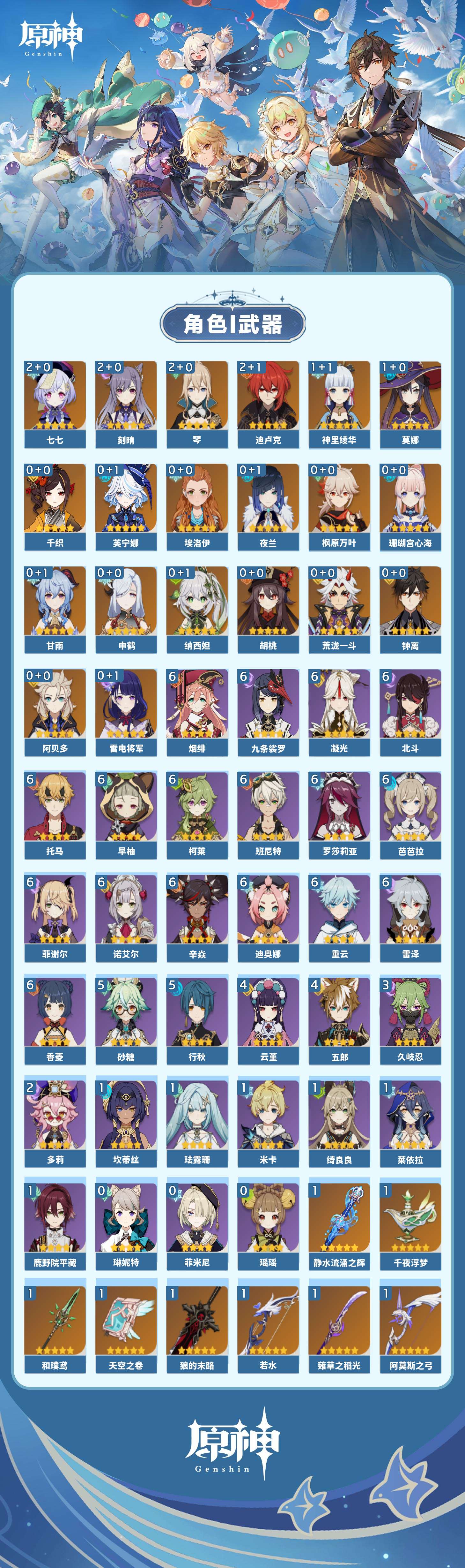 【原神】【lyys9250】冒险等级:60,五星数量:29,五星角色:迪卢克 2命刻晴 2命七七 2命琴 2命莫娜 1命神里绫华 1命珊瑚宫心海钟离荒泷一斗申鹤阿贝多夜兰芙宁娜千织纳西妲枫原万叶甘雨胡桃雷电将军__五星武器:静水流涌之辉阿莫斯之弓和璞鸢狼的末路天空之卷雾切之回光薙草之稻光若水千夜浮梦__四星角色:班尼特 6命九条裟罗 6命香菱 6命凝光 6命迪奥娜 6命柯莱 6命芭芭拉 6命早柚 6命托马 6命烟绯 6命重云 6命辛焱 6命诺艾尔 6命罗莎莉亚 6命雷泽 6命菲谢尔 6命北斗 6命行秋 5命砂糖 5命云堇 4命五郎 4命久岐忍 3命多莉 2命鹿野院平藏 1命珐露珊 1命绮良良 1命莱依拉 1命米卡 1命坎蒂丝 1命埃洛伊瑶瑶菲米尼琳妮特