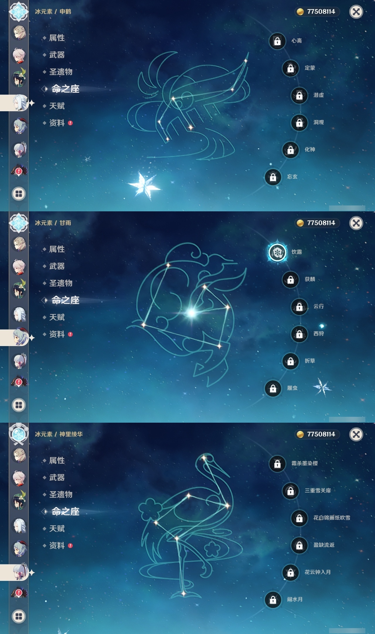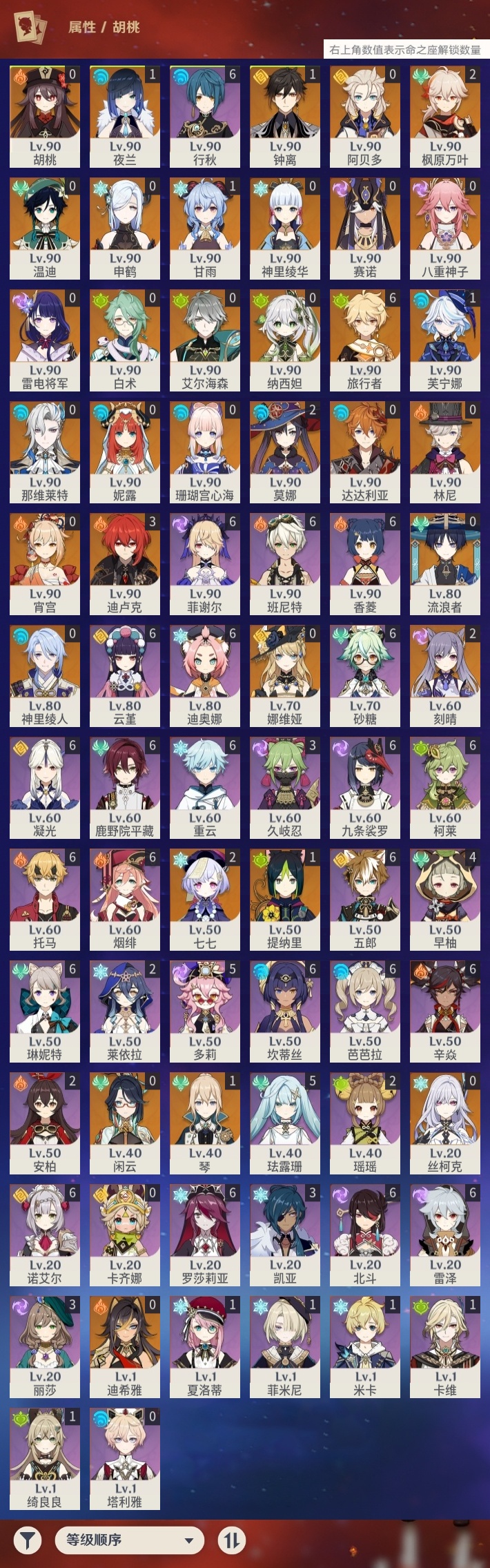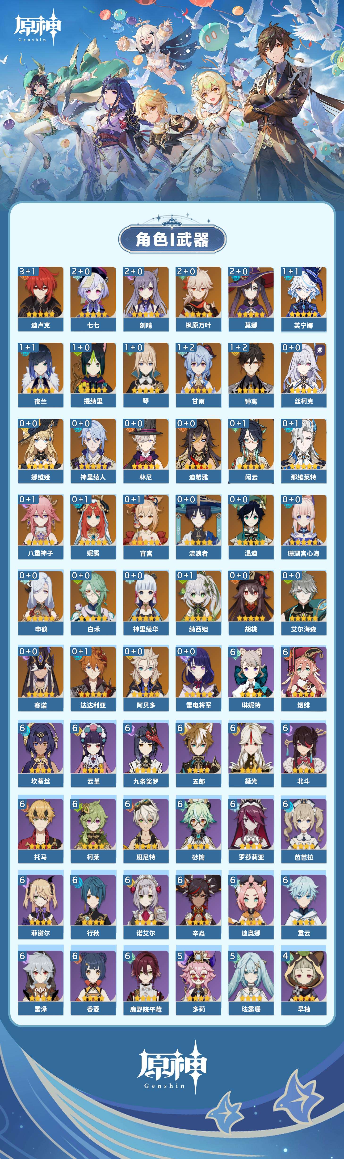 【原神】【lyys9294】冒险等级:60,五星数量:53,五星角色:迪卢克 3命枫原万叶 2命刻晴 2命莫娜 2命七七 2命芙宁娜 1命甘雨 1命琴 1命钟离 1命夜兰 1命提纳里 1命珊瑚宫心海白术神里绫华温迪宵宫迪希雅达达利亚申鹤八重神子神里绫人林尼阿贝多那维莱特娜维娅闲云赛诺丝柯克妮露纳西妲艾尔海森流浪者胡桃雷电将军__五星武器:阿莫斯之弓 2精贯虹之槊 2精万世流涌大典静水流涌之辉鹤鸣余音飞雷之弦振和璞鸢狼的末路磐岩结绿天空之傲天空之脊天空之卷天空之刃天空之翼冬极白星神乐之真意若水圣显之钥千夜浮梦__四星角色:班尼特 6命行秋 6命九条裟罗 6命香菱 6命鹿野院平藏 6命凝光 6命迪奥娜 6命砂糖 6命坎蒂丝 6命柯莱 6命芭芭拉 6命云堇 6命托马 6命五郎 6命烟绯 6命重云 6命辛焱 6命诺艾尔 6命罗莎莉亚 6命雷泽 6命菲谢尔 6命北斗 6命琳妮特 6命珐露珊 5命多莉 5命早柚 4命久岐忍 3命瑶瑶 2命莱依拉 2命绮良良 1命米卡 1命卡维 1命菲米尼 1命夏洛蒂 1命卡齐娜塔利雅