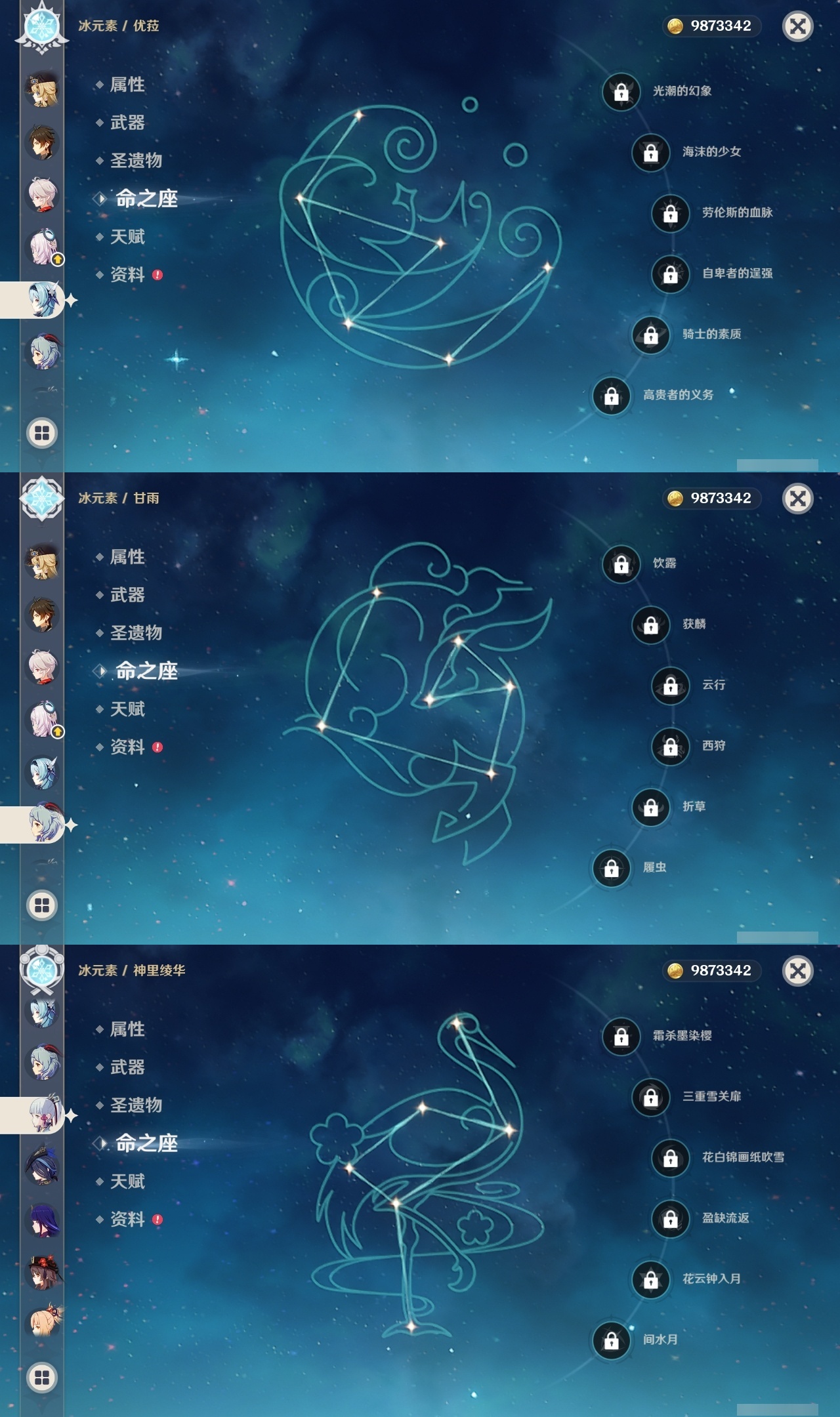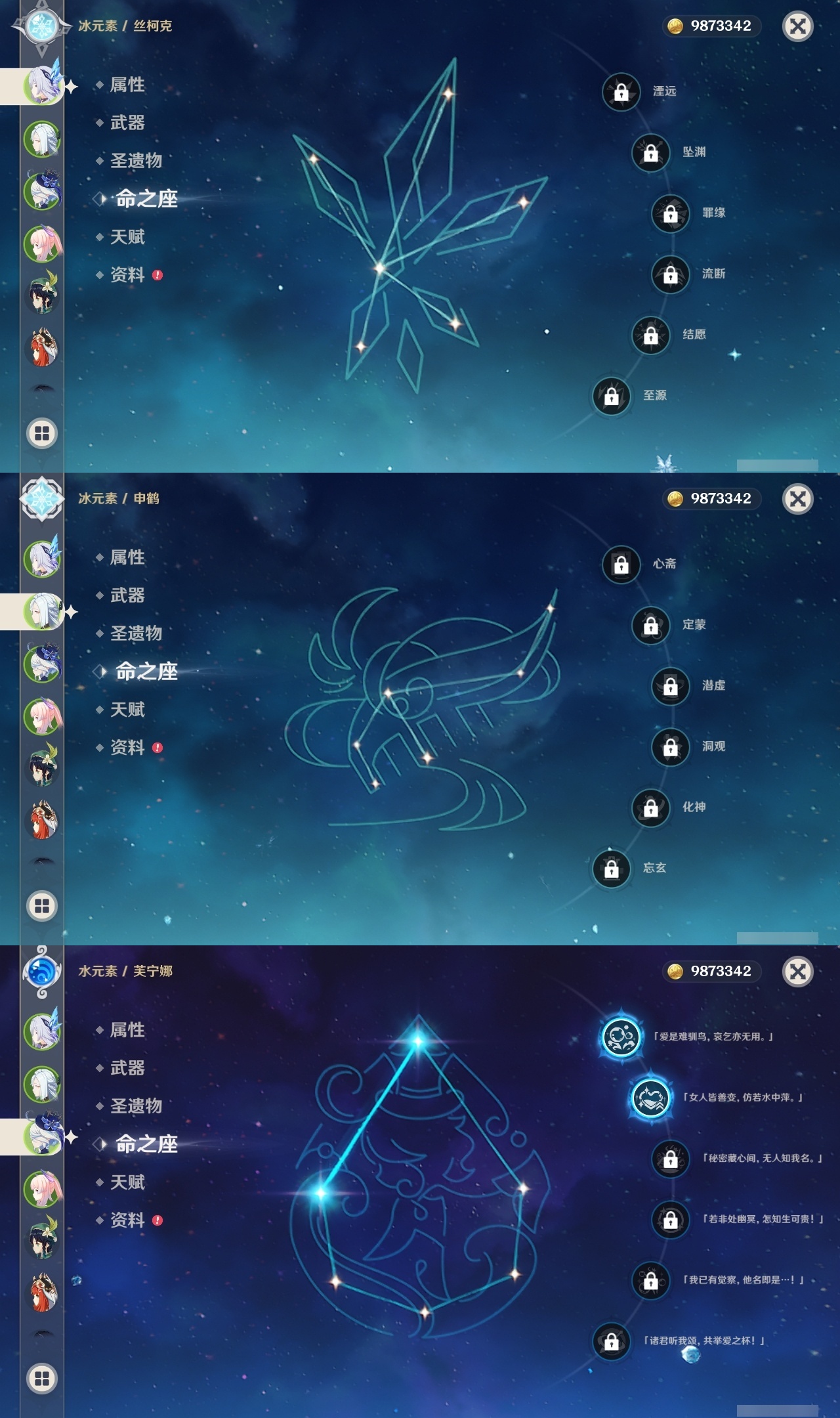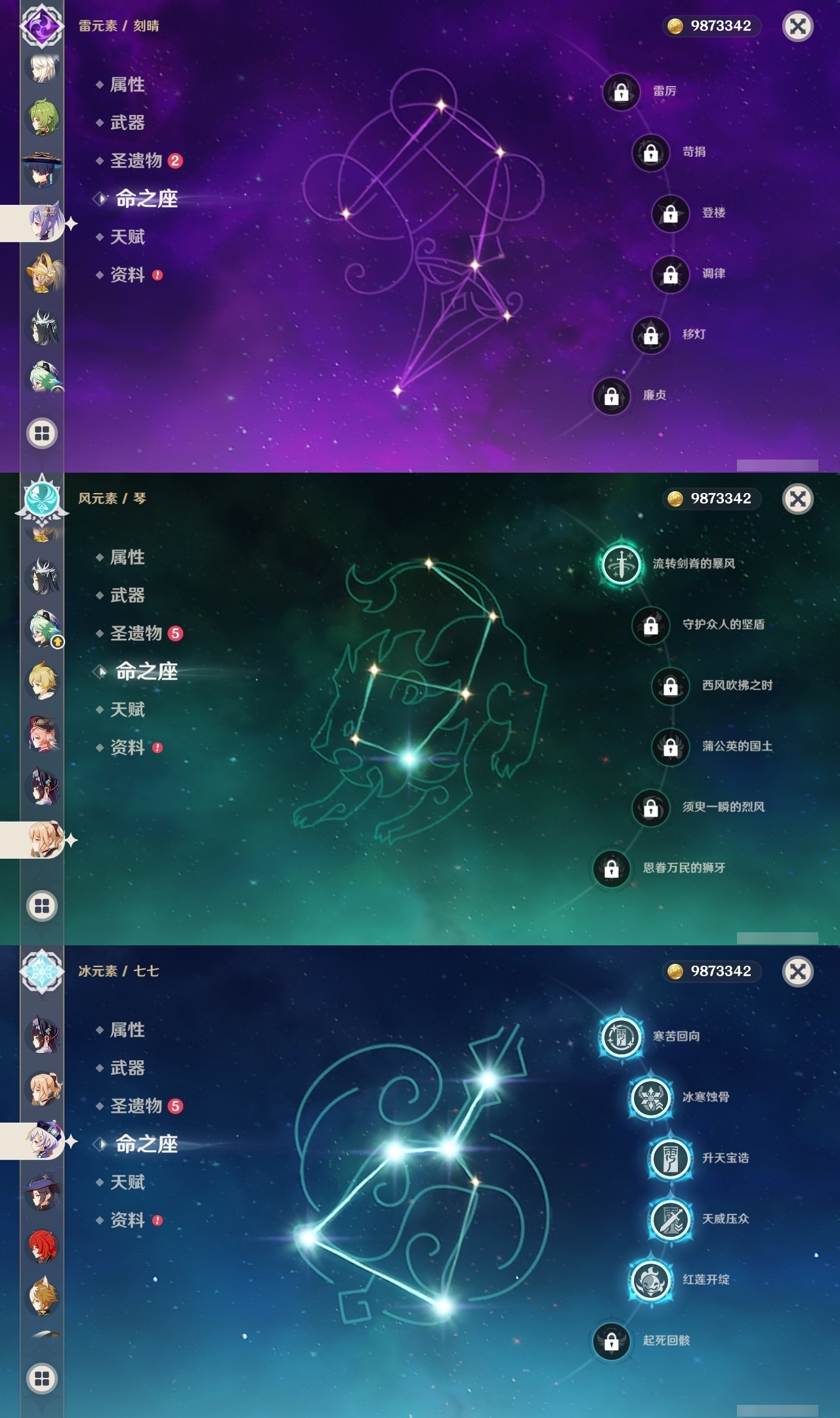 【原神】【lyys9318】冒险等级:60,五星数量:49,五星角色:七七 5命迪卢克 3命芙宁娜 2命胡桃 1命莫娜 1命琴 1命珊瑚宫心海神里绫华温迪茜特菈莉宵宫优菈迪希雅钟离荒泷一斗申鹤夜兰娜维娅丝柯克妮露纳西妲流浪者枫原万叶甘雨克洛琳德刻晴雷电将军__五星武器:风鹰剑 2精四风原典 2精天空之刃 2精柔灯挽歌静水流涌之辉裁叶萃光阿莫斯之弓和璞鸢护摩之杖狼的末路松籁响起之时天空之傲天空之脊天空之翼雾切之回光薙草之稻光赤角石溃杵息灾神乐之真意千夜浮梦__四星角色:班尼特 6命行秋 6命香菱 6命久岐忍 6命凝光 6命迪奥娜 6命砂糖 6命瑶瑶 6命坎蒂丝 6命多莉 6命卡维 6命芭芭拉 6命云堇 6命烟绯 6命重云 6命诺艾尔 6命菲谢尔 6命北斗 6命夏洛蒂 6命五郎 5命雷泽 5命莱依拉 4命柯莱 4命欧洛伦 4命早柚 4命罗莎莉亚 4命赛索斯 4命九条裟罗 3命鹿野院平藏 3命珐露珊 3命米卡 3命辛焱 3命绮良良 2命托马 2命菲米尼 2命琳妮特 2命卡齐娜 1命夏沃蕾 1命嘉明 1命伊安珊 1命爱诺 1命埃洛伊奇偶·女性蓝砚伊法