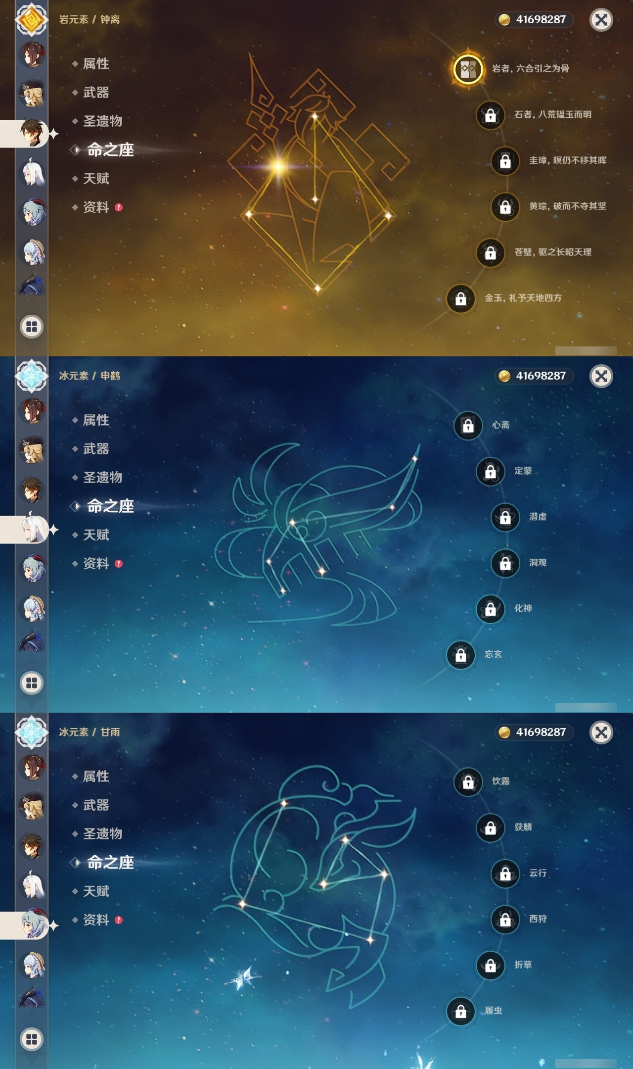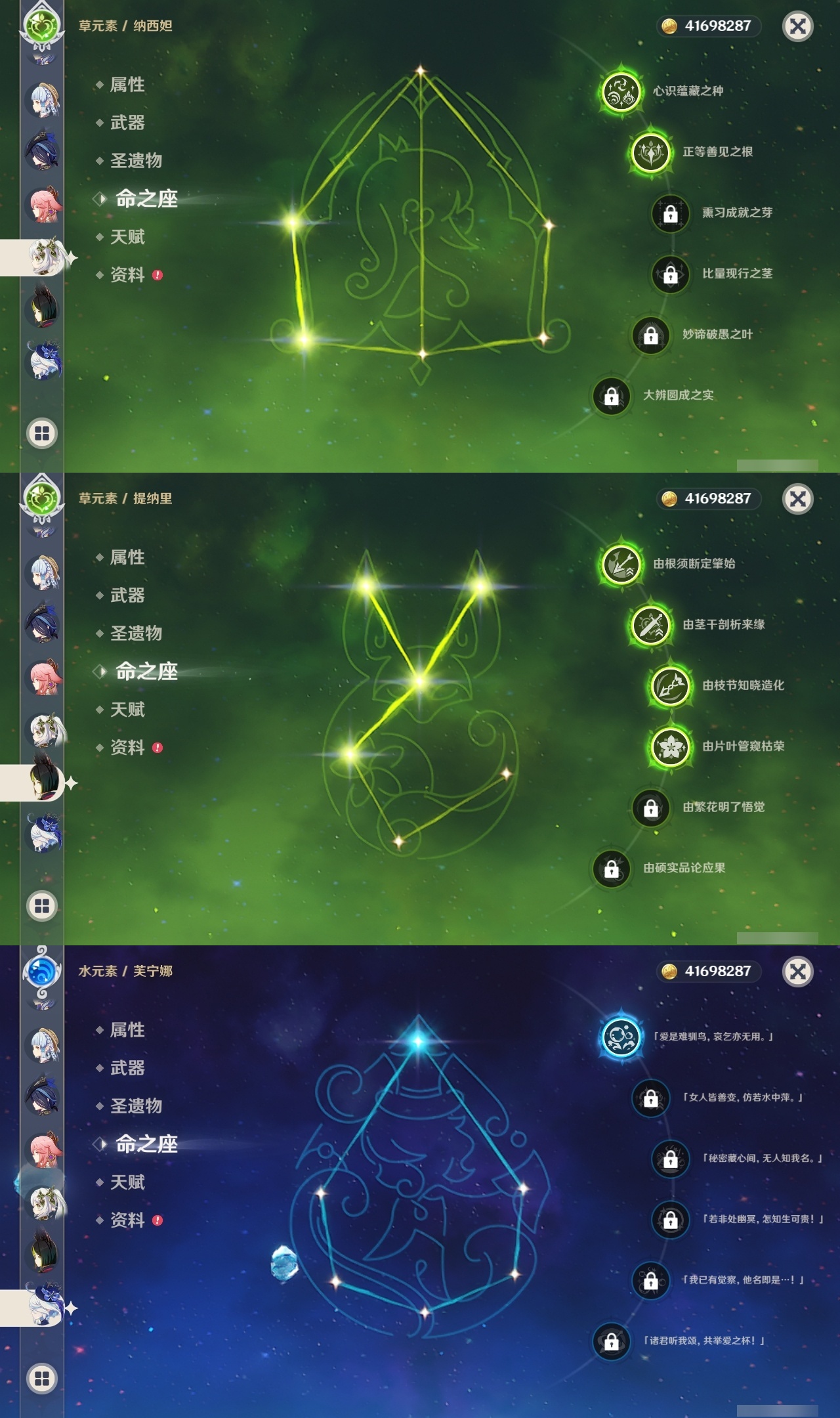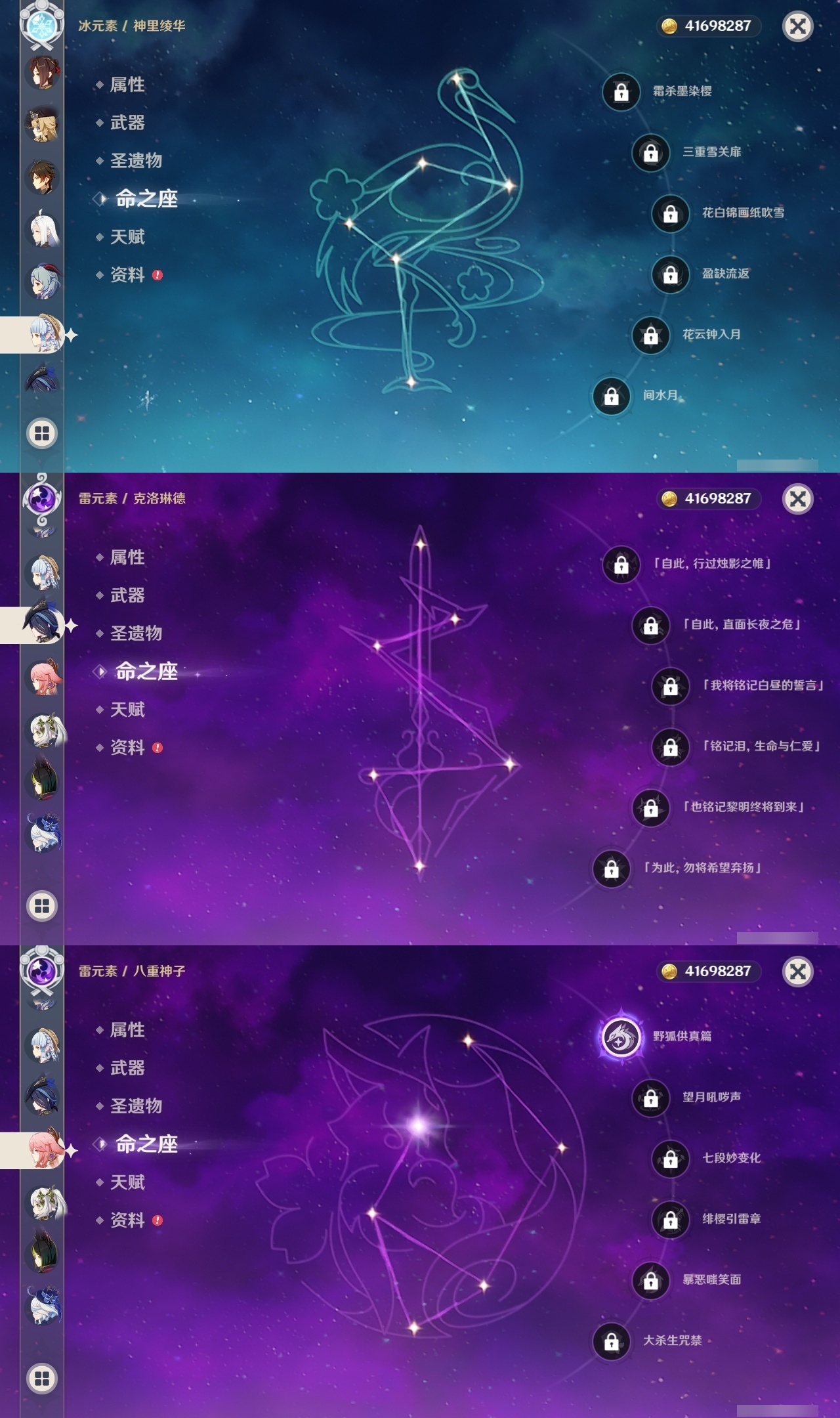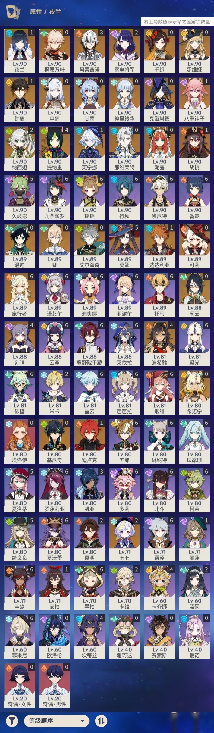 【原神】【lyys9328】冒险等级:60,五星数量:54,五星角色:莫娜 5命迪希雅 4命刻晴 4命提纳里 4命阿蕾奇诺 3命雷电将军 2命七七 2命纳西妲 2命芙宁娜 1命达达利亚 1命迪卢克 1命胡桃 1命钟离 1命八重神子 1命夜兰 1命琴基尼奇希诺宁神里绫华温迪申鹤那维莱特娜维娅闲云千织妮露艾尔海森枫原万叶甘雨克洛琳德可莉__五星武器:阿莫斯之弓 2精苍古自由之誓 2精风鹰剑 2精和璞鸢 2精有乐御簾切赤月之形护摩之杖狼的末路天空之傲天空之翼薙草之稻光赤角石溃杵冬极白星息灾神乐之真意若水赤沙之杖圣显之钥千夜浮梦赦罪__四星角色:班尼特 6命行秋 6命九条裟罗 6命香菱 6命鹿野院平藏 6命珐露珊 6命凝光 6命迪奥娜 6命砂糖 6命瑶瑶 6命莱依拉 6命多莉 6命柯莱 6命芭芭拉 6命云堇 6命早柚 6命托马 6命五郎 6命烟绯 6命重云 6命辛焱 6命诺艾尔 6命罗莎莉亚 6命雷泽 6命菲谢尔 6命北斗 6命菲米尼 6命琳妮特 6命夏沃蕾 6命久岐忍 5命绮良良 5命夏洛蒂 5命卡齐娜 4命坎蒂丝 4命米卡 2命卡维 2命蓝砚 2命嘉明 2命埃洛伊奇偶·女性奇偶·男性欧洛伦爱诺赛索斯