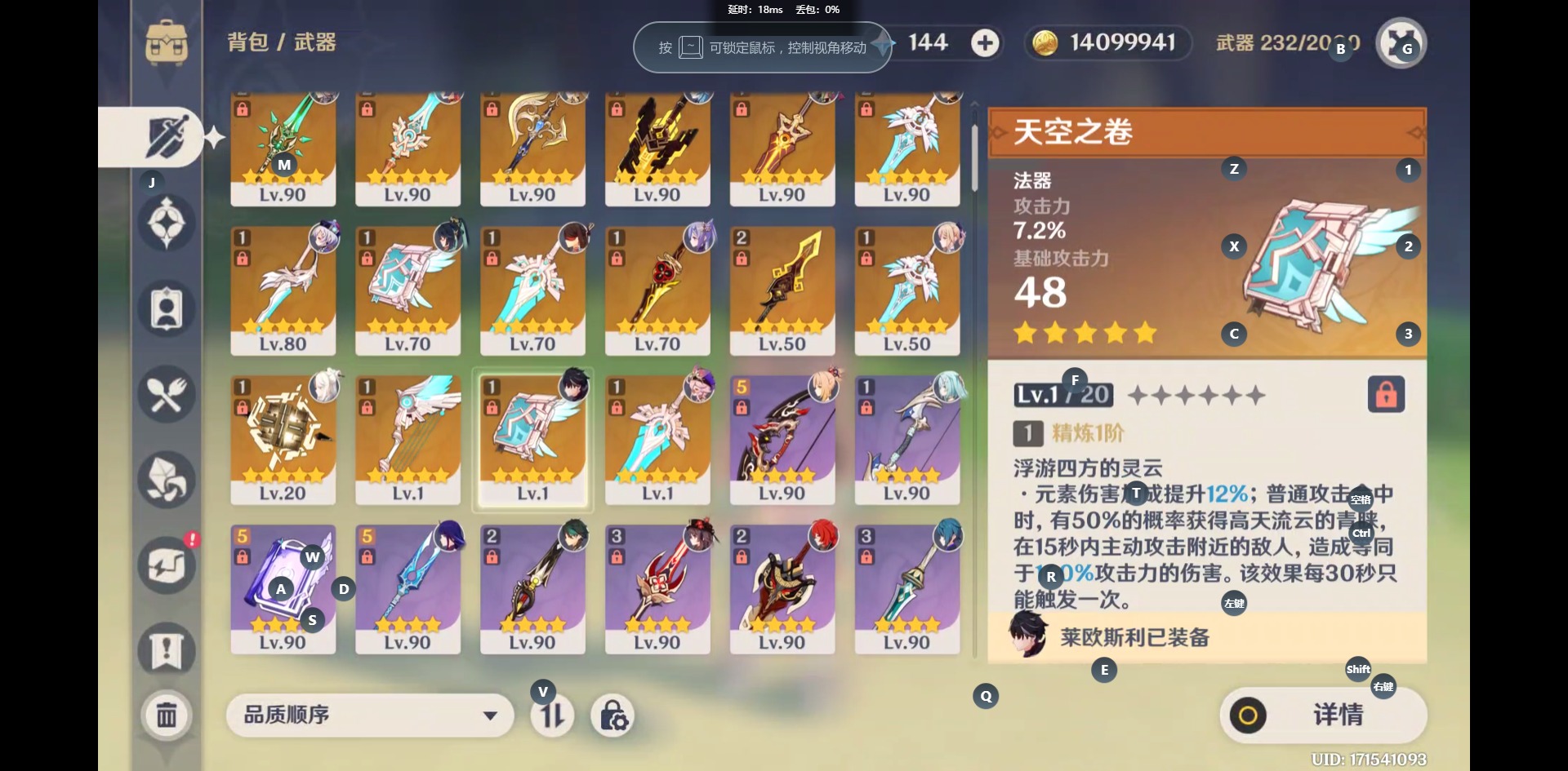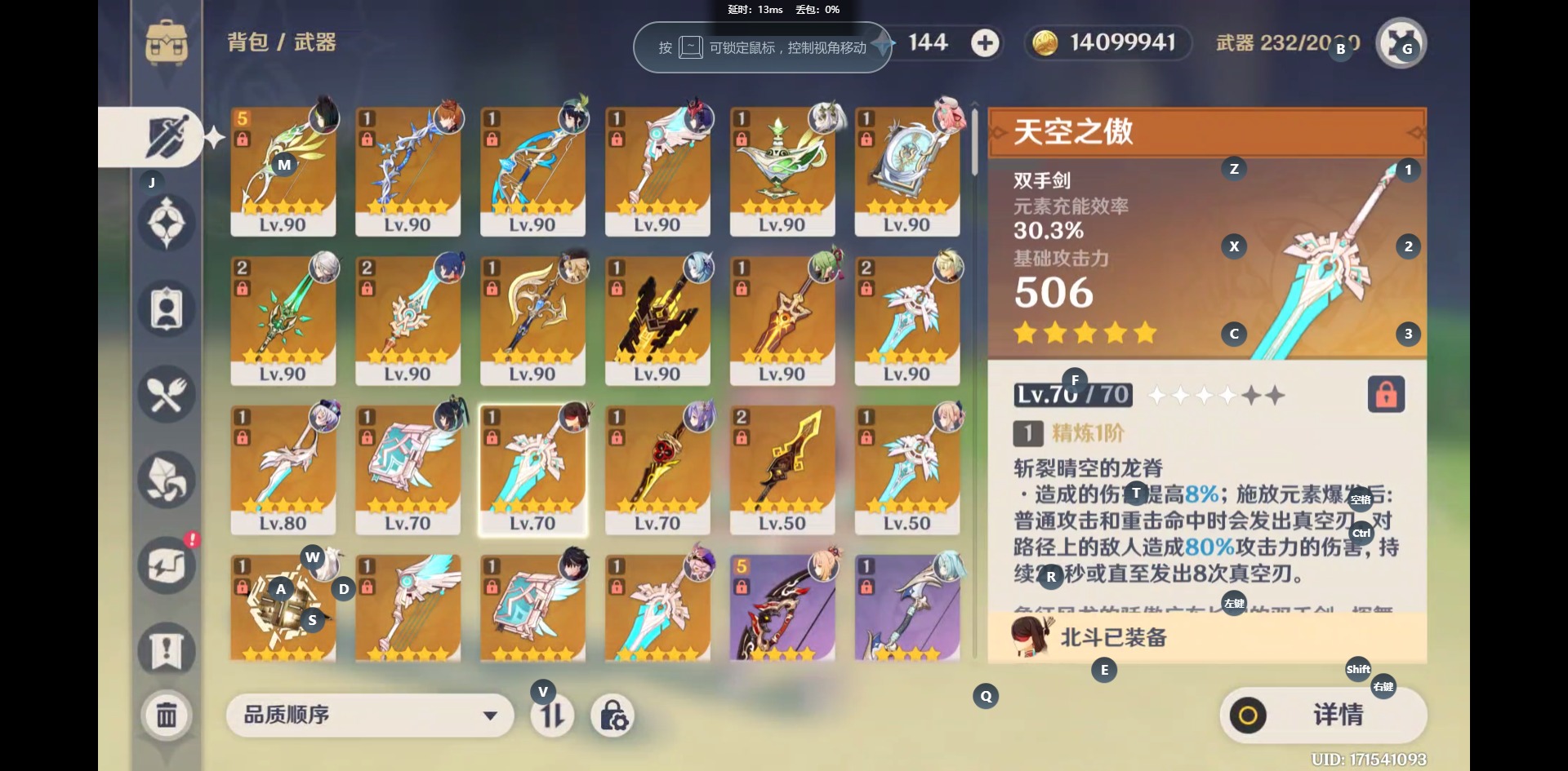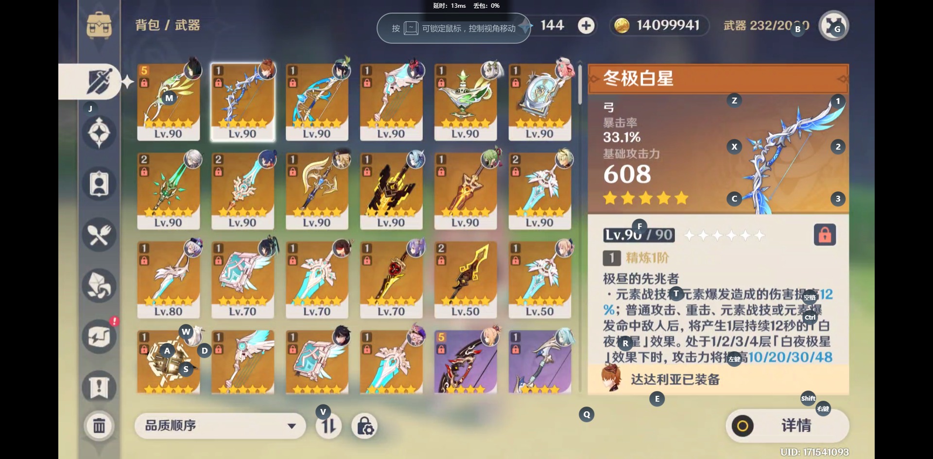 [14650038]【总黄数】:46 【冒险等级】:59 【6命金色角色】:满命钟离满命提纳里满命七七满命莫娜 【4命金色角色】:四命刻晴 【3命金色角色】:三命迪卢克 【1命金色角色】:一命闲云一命琴 【0命金色角色】:瓦雷莎玛薇卡阿蕾奇诺娜维娅莱欧斯利白术八重神子雷电将军宵宫枫原万叶优菈胡桃魈达达利亚温迪 【5精武器】:猎人之径 【2精武器】:和璞鸢贯虹之槊天空之脊 【1精武器】:有乐御簾切裁断千夜浮梦圣显之钥冬极白星终末嗟叹之诗风鹰剑天空之傲天空之卷无工之剑天空之翼天空之刃四风原典