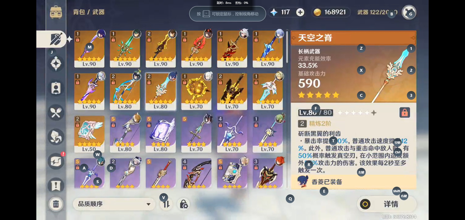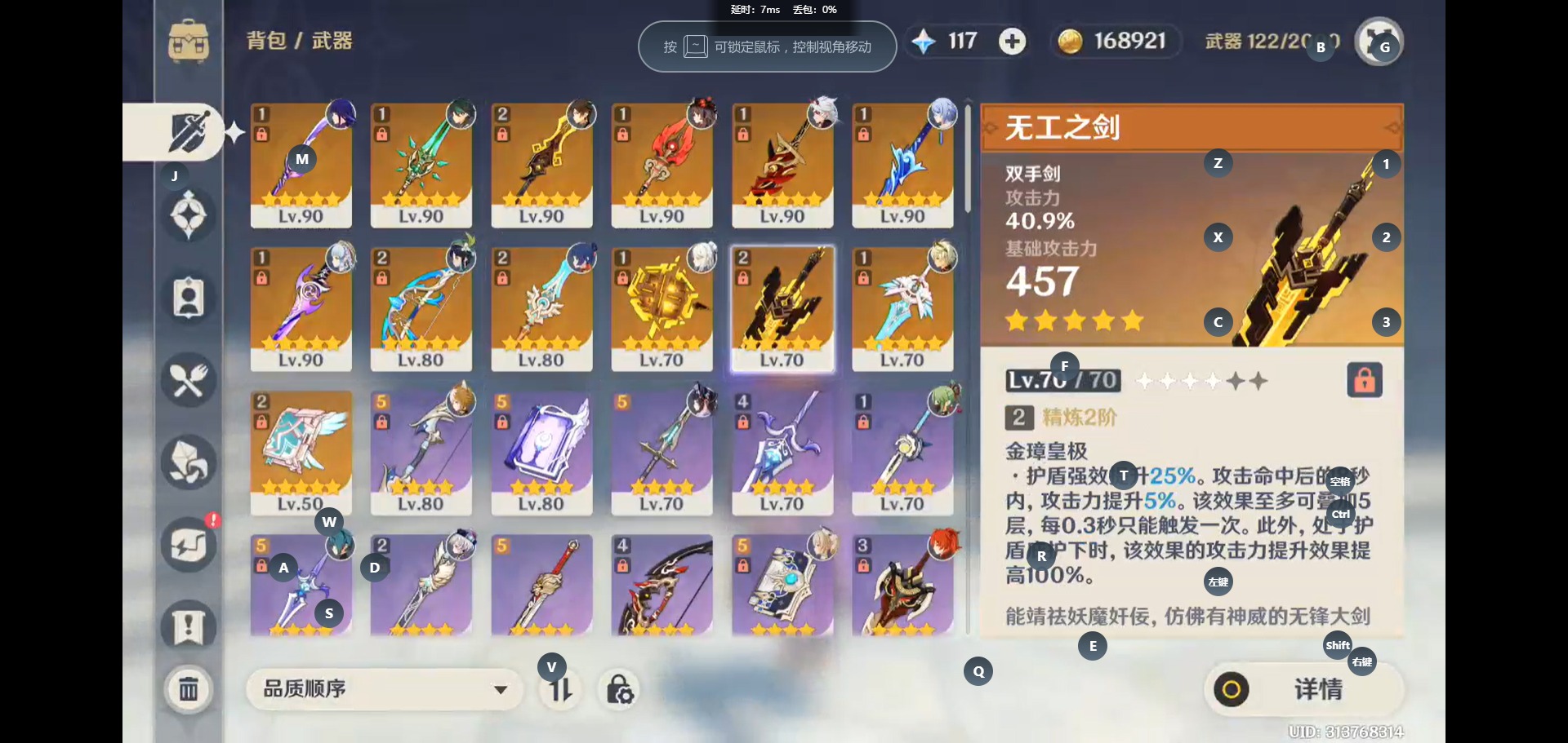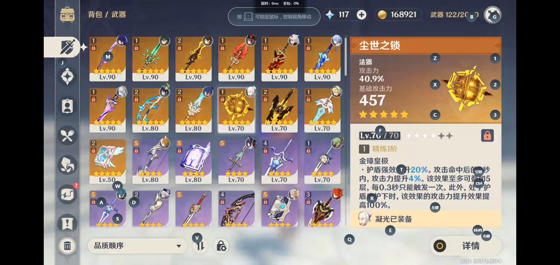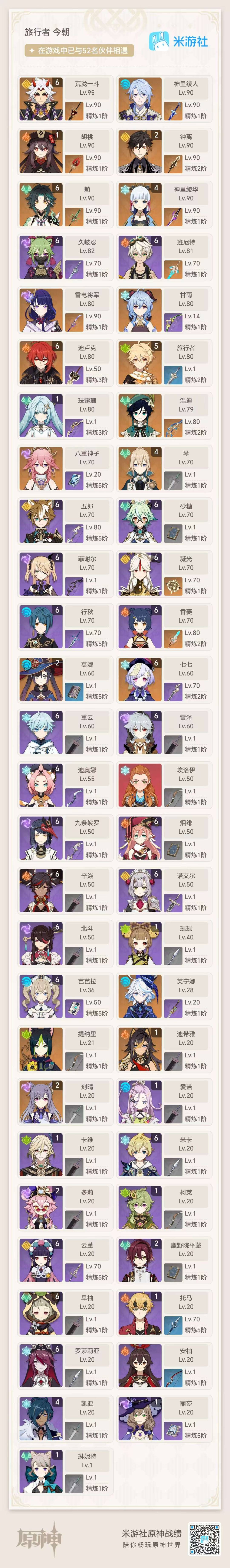 [14652317]【总黄数】:40 【冒险等级】:57 【6命金色角色】:满命荒泷一斗满命魈满命迪卢克满命七七 【4命金色角色】:四命神里绫华四命琴 【2命金色角色】:二命钟离二命刻晴二命莫娜 【1命金色角色】:一命胡桃一命迪希雅 【0命金色角色】:芙宁娜神里绫人八重神子雷电将军甘雨温迪提纳里 【2精武器】:贯虹之槊终末嗟叹之诗天空之卷无工之剑天空之脊 【1精武器】:波乱月白经津赤角石溃杵薙草之稻光雾切之回光护摩之杖和璞鸢尘世之锁天空之刃