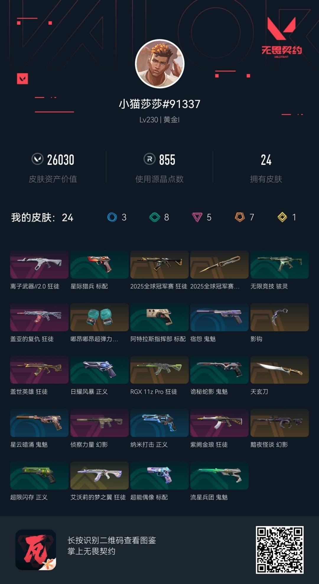 [14238727]7橙皮 1金皮 5紫皮 24皮肤 28英雄 102卡面 855已用源晶 黄金段位 【套装】:2025全球冠军赛 【近战武器皮肤】:2025全球冠军赛 蝴蝶刀影钩天玄刀 【步呛皮肤】:幻影-黯夜怪谈狂徒-rgx 11z pro狂徒-离子武器2.02025全球冠军赛 狂徒
