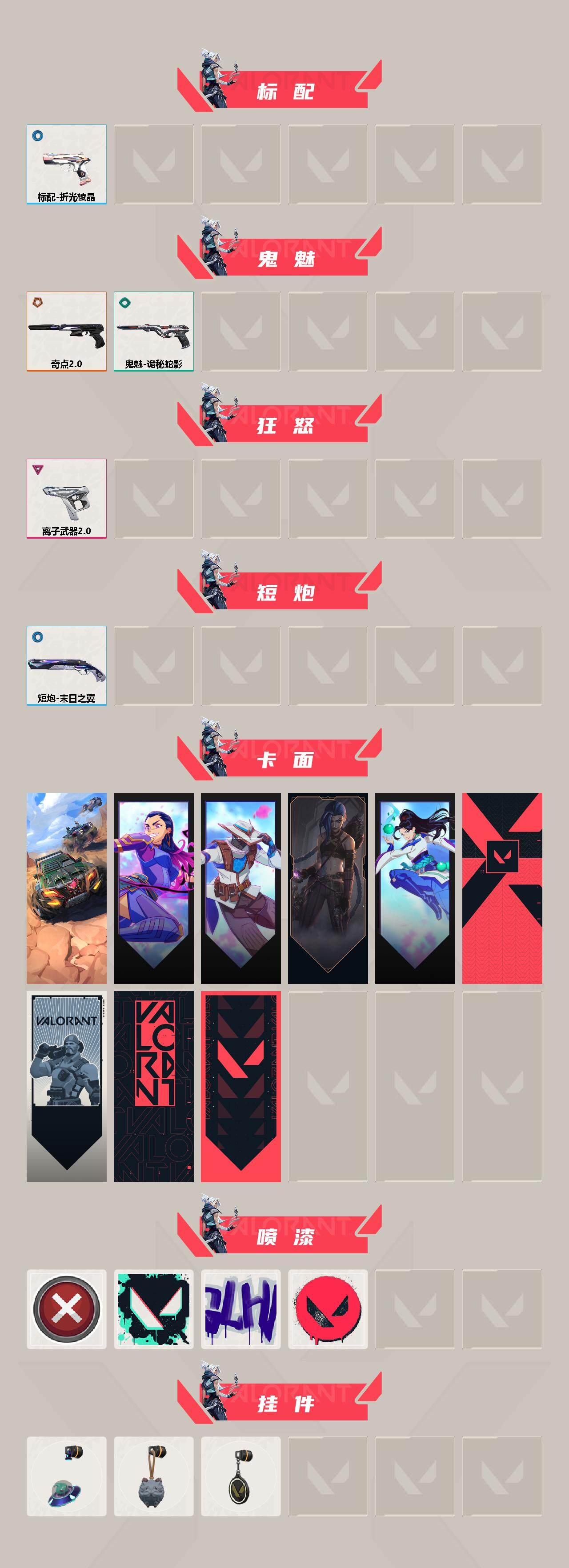【套装】:离子武器//2.0套装 【英雄】:幻棱,炼狱,维斯,暮蝶,钛狐,壹决,铁臂,捷风,雷兹,幽影,不死鸟,贤者,猎枭,零,芮娜,奇乐,尚勃勒,霓虹,夜露,k/o,海神,盖可,黑梦,钢锁 【近战 武器】:近战武器-离子武器//2.0 爪刀,近战武器-诡秘蛇影 军刀,近战武器-阿特拉斯指挥部 甩棍 【狂徒】:狂徒-2025全球冠军赛,狂徒-离子武器//2.0,狂徒-诡秘蛇影 【幻影】:幻影-