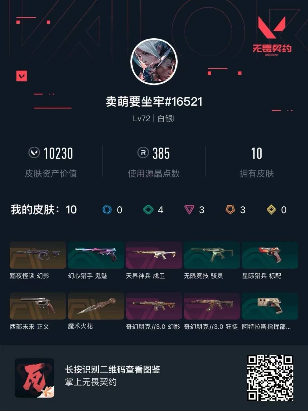 [14266453]3橙皮 3紫皮 10皮肤 22英雄 37卡面 385已用源晶 白银段位 【近战武器皮肤】:魔术火花 【佩呛皮肤】:正义-西部未来 【步呛皮肤】:幻影-黯夜怪谈奇幻朋克3.0狂徒幻影-奇幻朋克3.0戍卫-天界神兵 【挂饰】:薰衣草之心挂饰鱼骨头挂饰
