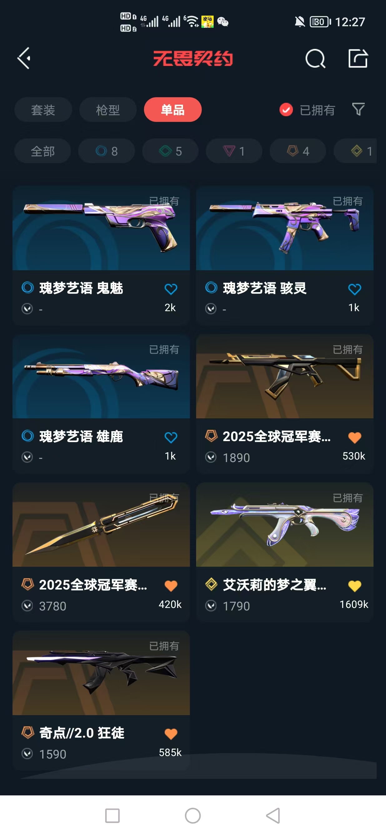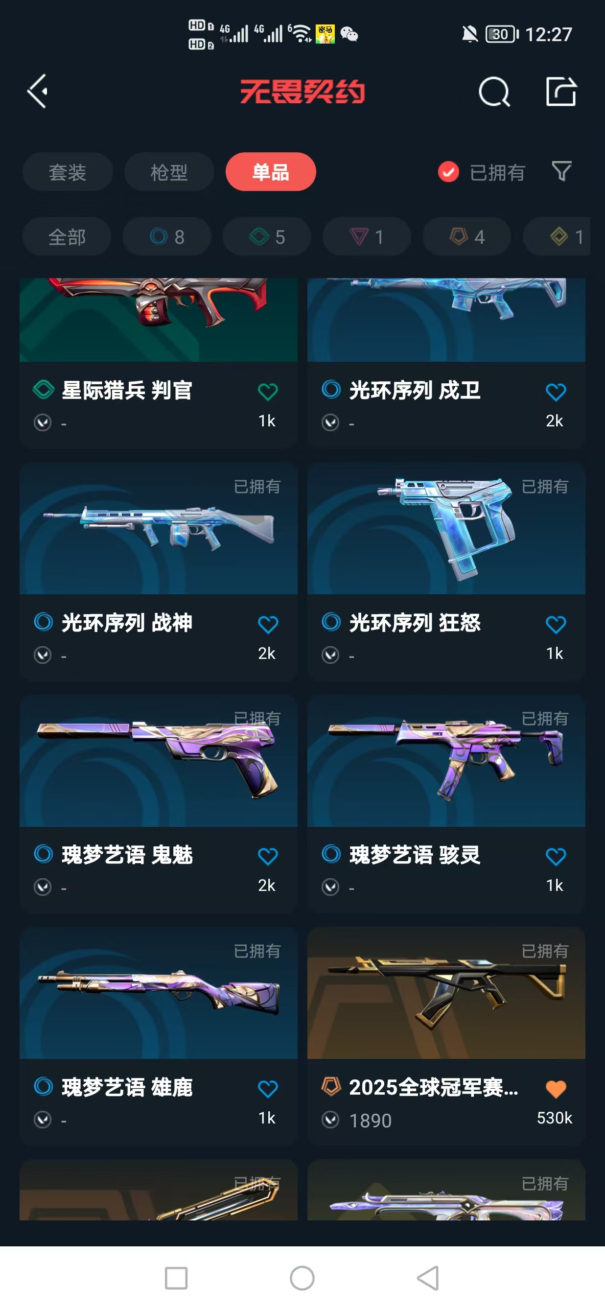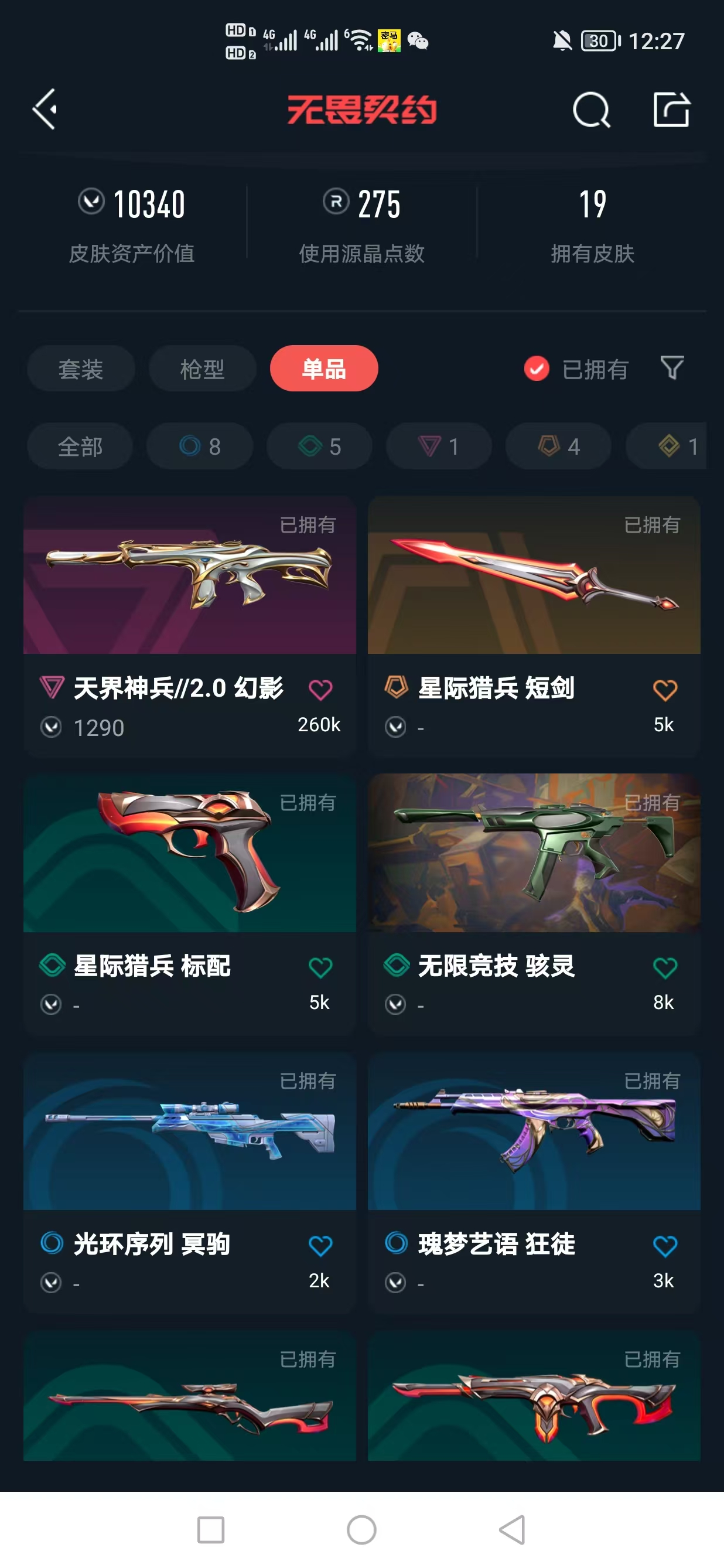 【25冠军套】【游戏等级】lv48 【段位】 白银i 【r点】275 【皮肤总价值】10340 【英雄数量】18 【皮肤数量】19 【挂饰数量】24 【卡面数量】35 【喷漆数量】28 【幻影】幻影-天界神兵//2.0 幻影-星际猎兵 【近战武器】近战武器-星际猎兵短剑 近战武器-2025全球冠军赛蝴蝶刀 【标配】标配-星际猎兵 【骇灵】骇灵-无限竞技 骇灵-瑰梦艺语 【冥