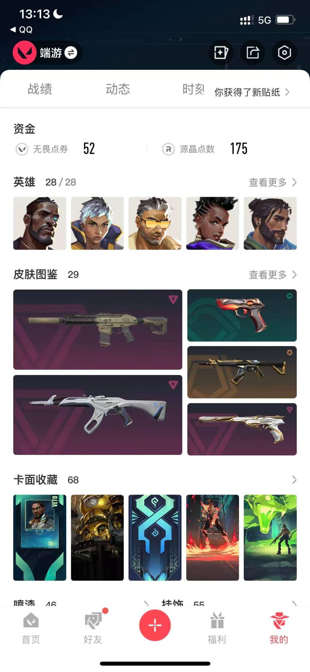[14315310]5橙皮 7紫皮 29皮肤 28英雄 68卡面 645已用源晶 超凡段位 【近战武器皮肤】:短剑-流星兵团剥皮小刀 【佩呛皮肤】:正义-离子武器鬼魅-天界神兵 【步呛皮肤】:狂徒-创·纪元狂徒-离子武器2.02025全球冠军赛 狂徒狂徒-盖亚的复仇狂徒-冰点凝冻幻影