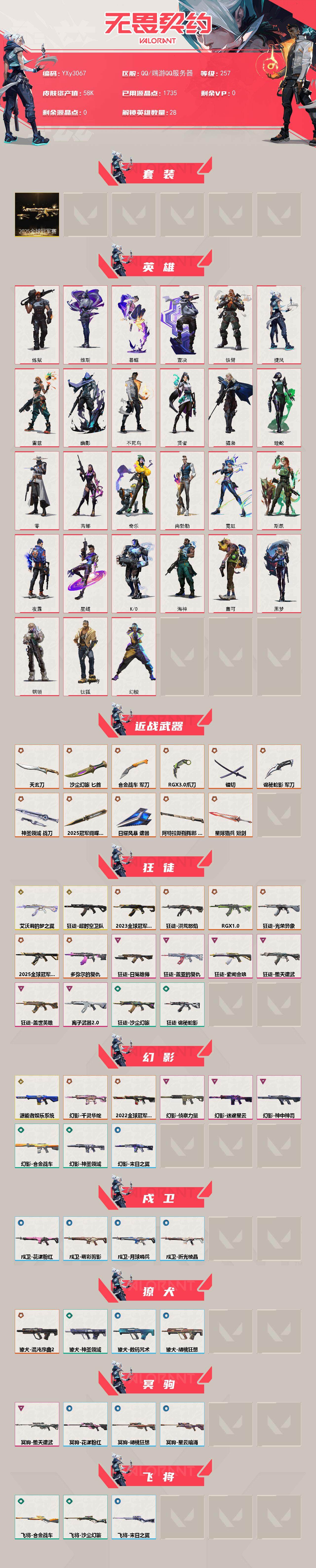 【5.8w库存25冠军套.显卡爪刀.镭切.天玄刀.十四把狂徒6幻影23冠军.猫猫.超时空.显卡.流脓.22冠军.电玩.千灵华绽.侦查】y3067【无二次】【因赛季更新游戏段付以上号为准!】 【套装】:2025全球冠军赛套装 【英雄】:幻棱,炼狱,维斯,暮蝶,钛狐,壹决,铁臂,捷风,雷兹,幽影,不死鸟,贤者,猎枭,蝰蛇,零,芮娜,奇乐,尚勃勒,霓虹,斯凯,夜露,星礈,k/o,海神,盖可,黑梦