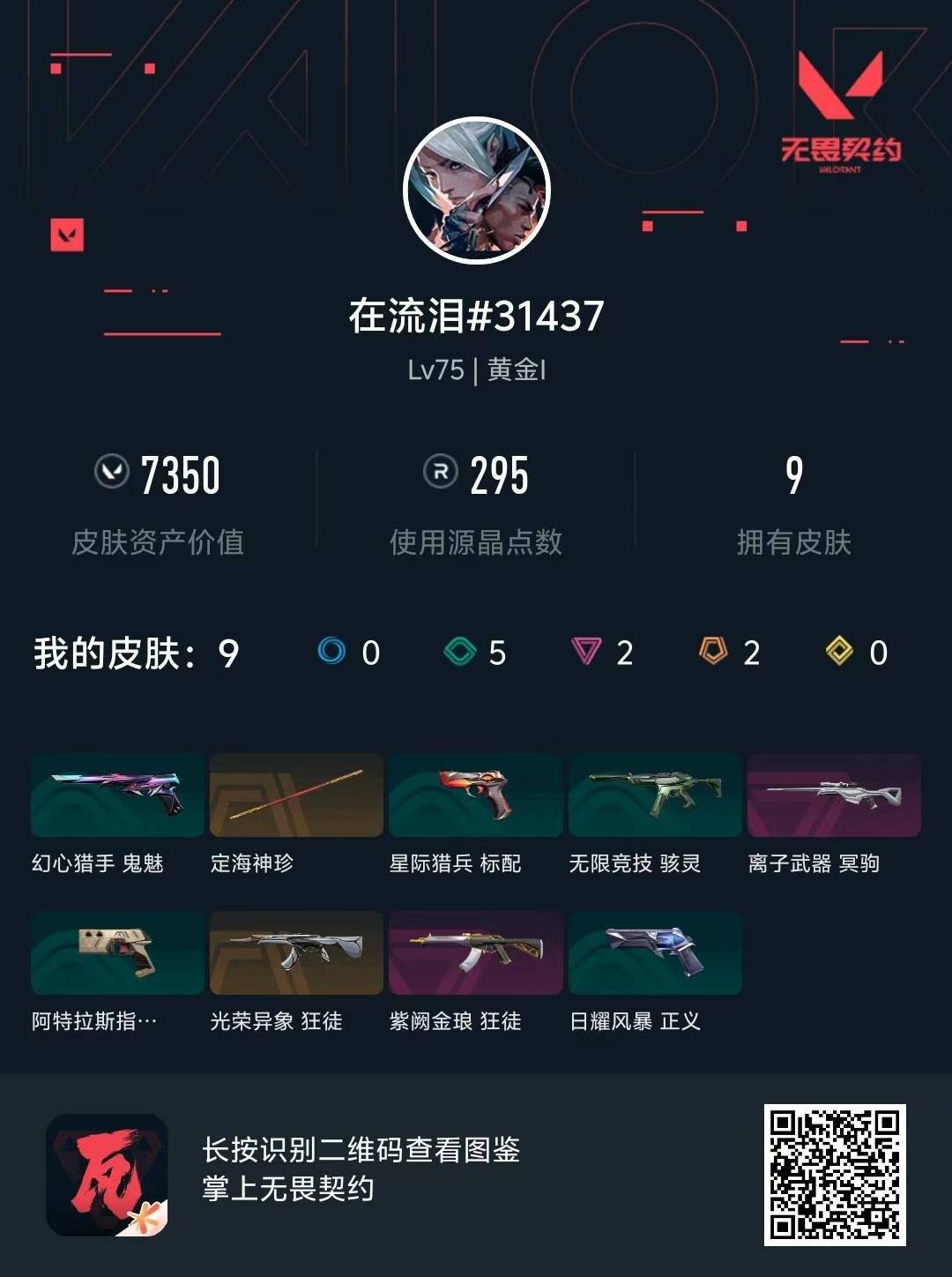 [14337942]2橙皮 2紫皮 9皮肤 21英雄 47卡面 295已用源晶 黄金段位 【近战武器皮肤】:定海神珍 【步呛皮肤】:狂徒-光荣异象狂徒-紫阙金琅 【狙击呛皮肤】:冥驹-离子武器 【挂饰】:薰衣草之心挂饰袖珍捷风挂饰蓄势待滚挂饰