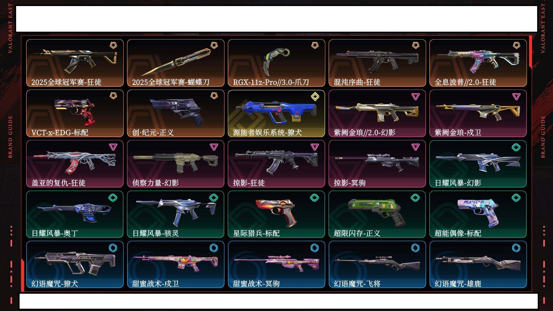 【1110】欢 142445【套装】:2025全球冠军赛套装,vctxedg 队伍套装 【英雄】:幻棱,炼狱,维斯,暮蝶,钛狐,壹决,铁臂,捷风,雷兹,幽影,不死鸟,贤者,猎枭,蝰蛇,零,芮娜,奇乐,尚勃勒,霓虹,斯凯,夜露,星礈,k/o,海神,盖可,黑梦,钢锁 【近战 武器】:近战武器-2025全球冠军赛 蝴蝶刀,近战武器-rgx 11z pro//3.0 爪刀 【狂徒】:狂徒-2025全球冠军赛,狂徒-混沌序曲,狂徒-全息波普//2.0,狂徒-掠影,狂徒-盖亚的复仇 【幻影】:幻影-侦察力量,幻影-紫阙金琅//2.0 【戍卫】:戍卫-紫阙金琅 【獠犬】:獠犬-源能者娱乐系统 【冥驹】:冥驹-掠影 【标配】:标配-超能偶像 【vct手呛】:标配-vct x edg 【正义】:正义-创·纪元,正义-超限闪存,正义-纳米打击 【鬼魅】:鬼魅-数码咒术 【卡面】:终章:激斗汉堡 卡面,进入射程 卡面,《双城之战》拥抱 卡面,精灵大战 卡面,欢迎来到底城 卡面,南瓜盛典 卡面,无畏契约:暮蝶 卡面,修车达人 卡面,正义的化身 卡面,终章:生意人麦宝 卡面,铁之华 卡面,时间到 卡面,最高舞台 卡面,声感陷阱设计图 卡面,clutch 卡面,梦幻奶茶 卡面,零点嗅探设计图 卡面,无畏契约go!第一卷:芮娜 卡面,清除名单 卡面,无畏契约go!第一卷:零 卡面,龍记 卡面,完美调谐 卡面 ,暗呛 卡面,"luie" 卡面,铁臂设计图 卡面,代号红色 卡面,冰淇淋店 卡面,新兵报到 卡面,友军火力 卡面,v契约 卡面,无畏契约 卡面 【喷漆】:嗨宝南瓜灯 喷漆,嘭! 喷漆,都算到了 喷漆,控场勿近 喷漆,伤心心 喷漆,小丑猫 喷漆,熊抱 喷漆,超级粉丝 喷漆,捷风差距 喷漆,惊声尖叫 喷漆,审判之爪 喷漆,拼一呛 喷漆,加油!加油! 喷漆,新潮流 喷漆,双击点赞 喷漆,买装还是存钱 喷漆,醒狮贺春 喷漆,暴走萝莉 喷漆,蕊形灯 喷漆,胜利属于无畏契约 喷漆,glhf 喷漆,无畏契约 喷漆 【挂饰】:终章:猫猫木乃伊 挂饰,悠闲鸡块 挂饰,伞绳 挂饰,《双城之战》小蛋糕 挂饰,第九季//第三幕 纪念币 挂饰,工具腰带 挂饰,无畏契约go!第一卷 芮娜 挂饰,熔岩灯 挂饰,第九季//第二幕 纪念币 挂饰,薰衣草之心 挂饰,终章:这瓜保熟 挂饰,糖葫芦 挂饰,袖珍捷风 挂饰,迷你浓缩 挂饰,第九季//第一幕 纪念币 挂饰,迷你机甲 挂饰,vct x edg 挂饰,第八季//第三幕 纪念币 挂饰,第八季//第二幕 纪念币 挂饰 ,天外飞客 挂饰,好运福爪 挂饰,瞄这里 挂饰,第八季//第一幕 纪念币 挂饰,海豹的认可 挂饰,第七季//第三幕 纪念币 挂饰,第七季//第二幕 纪念币 挂饰,无畏契约 纪念币 挂饰