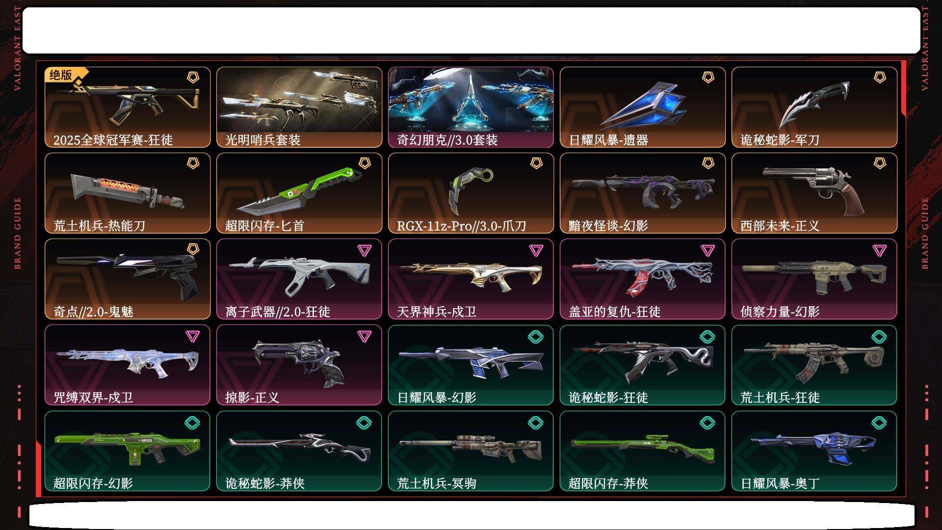 【1151】欢 150977【套装】:光明哨兵套装 【英雄】:幻棱,炼狱,维斯,暮蝶,钛狐,壹决,铁臂,捷风,雷兹,幽影,不死鸟,贤者,猎枭,蝰蛇,零,芮娜,奇乐,尚勃勒,霓虹,斯凯,夜露,星礈,k/o,海神,盖可,黑梦,钢锁 【近战 武器】:近战武器-魔术火花,近战武器-rgx 11z pro//3.0 爪刀,近战武器-超限闪存 匕首,近战武器-荒土机兵 热能刀,近战武器-圣石遗物,近战武器-诡秘蛇影 军刀,近战武器-日耀风暴 遗器,近战武器-魔术火花 【狂徒】:狂徒-2025全球冠军赛,狂徒-光明哨兵,狂徒-盖亚的复仇,狂徒-离子武器//2.0,狂徒-奇幻朋克//3.0,狂徒-荒土机兵,狂徒-诡秘蛇影 【幻影】:幻影-黯夜怪谈,幻影-侦察力量,幻影-奇幻朋克//3.0,幻影-超限闪存,幻影-纳米打击,幻影-末日之翼 【戍卫】:戍卫-天界神兵,戍卫-咒缚双界,戍卫-浮光跃金,戍卫-逆冲蛮牛,戍卫-折光棱晶 【獠犬】:獠犬-模拟赫兹,獠犬-逆冲蛮牛 【冥驹】:冥驹-光明哨兵,冥驹-荒土机兵,冥驹-模拟赫兹 【飞将】:飞将-末日之翼 【莽侠】:莽侠-超限闪存,莽侠-诡秘蛇影 【战神】:战神-光明哨兵,战神-浮光跃金 【奥丁】:奥丁-纳米打击,奥丁-末日之翼 【判官】:判官-诡秘蛇影,判官-纳米打击x 【雄鹿】:雄鹿-模拟赫兹,雄鹿-逆冲蛮牛 【骇灵】:骇灵-荒土机兵,骇灵-无限竞技,骇灵-浮光跃金 【蜂刺】:蜂刺-超限闪存,蜂刺-折光棱晶 【标配】:标配-荒土机兵,标配-浮光跃金,标配-折光棱晶 【正义】:正义-光明哨兵,正义-西部未来,正义-掠影,正义-超限闪存,正义-纳米打击,正义-天涯浪客 【鬼魅】:鬼魅-奇点//2.0,鬼魅-诡秘蛇影,鬼魅-模拟赫兹,鬼魅-星云暗涌 【狂怒】:狂怒-逆冲蛮牛,狂怒-喷火式 【短炮】:短炮-天才少女,短炮-末日之翼 【卡面】:终章:激斗汉堡 卡面,进入射程 卡面,分崩离析 卡面,纳米打击 卡面,抑制技术 卡面,激斗汉堡 卡面,瓦娃脸雪糕 p2 卡面,从黄昏到黎明 卡面,荒土机兵 卡面,银弹猎手 卡面,逆冲蛮牛 卡面,《双城之战》拥抱 卡面,精灵大战 卡面,欢迎来到底城 卡面,南瓜盛典 卡面,唱片的故事 卡面,钢弓与箭弦 卡面,排除故障 卡面,战术桌游 卡面,悠享食光 卡面,修车达人 卡面,模拟赫兹 卡面,浮光跃金 卡面,超限闪存 卡面,维斯工牌 卡面,正义的化身 卡面,采蜜小蜂队 卡面,脚踝终结者 卡面 ,无畏契约go!第一卷:芮娜 卡面,无畏契约go!第一卷:零 卡面,《双城之战》金克丝 卡面,无畏契约go!第一卷:贤者 卡面,萌彩剪影 卡面,代号红色 卡面,冰淇淋店 卡面,新兵报到 卡面,友军火力 卡面,v契约 卡面,无畏契约 卡面 【喷漆】:小小心意 喷漆,战“素”兔 喷漆,宇宙的指引 喷漆,请求重启 喷漆,逆冲蛮牛 喷漆,纳米打击 喷漆,鼻尖上的蝴蝶 喷漆,简笔画黯兽 喷漆,独守蝰腹 喷漆,他们将落荒而逃 喷漆,通缉:战术企鹅 喷漆,荒土机兵 喷漆,别挡我吃球! 喷漆,嗨宝南瓜灯 喷漆,嘭! 喷漆,都算到了 喷漆,控场勿近 喷漆,皮蛋呼呼 喷漆,像素星礈 喷漆,图谋不轨的零 喷漆,小丑猫 喷漆,模拟赫兹 喷漆,高丽风情小熊 喷漆,蹲到一个 喷漆,全力集中 喷漆,超限闪存 喷漆,rua一下 喷漆,熊抱 喷漆,高丽风情小虎 喷漆,记在小本本 喷漆,防弹企鹅 喷漆,高丽风情小蛙 喷漆,黯兽卖萌 喷漆,捷风差距 喷漆,买装还是存钱 喷漆,无畏契约go!第一卷:芮娜 喷漆,无畏契约go!第一卷:零 喷漆,今天的潮声甚是喧嚣 喷漆 ,胜利属于无畏契约 喷漆,glhf 喷漆,无畏契约 喷漆 【挂饰】:终章:猫猫木乃伊 挂饰,荒土机兵 挂饰,悠闲鸡块 挂饰,猫猫木乃伊 挂饰,水壶 挂饰,纳米打击 挂饰,逆冲蛮牛 挂饰,可爱糖糖 挂饰,伞绳 挂饰,《双城之战》小蛋糕 挂饰,第九季//第三幕 纪念币 挂饰,拳击战术熊 挂饰,工具腰带 挂饰,无畏契约go!第一卷 芮娜 挂饰,无畏契约go!第一卷 零 挂饰,暗藏猫腻 挂饰,高丽风情 挂饰,鱼骨头 挂饰,熔岩灯 挂饰,超限闪存 挂饰,瞬云履 挂饰,迷你k/o 挂饰,模拟赫兹 挂饰,第九季//第二幕 纪念币 挂饰,袖珍捷风 挂饰,z世代特饮 挂饰,天外飞客 挂饰,红鳞松叶 挂饰,《双城之战》魄罗 挂饰,海豹的认可 挂饰,无畏契约 纪念币 挂饰