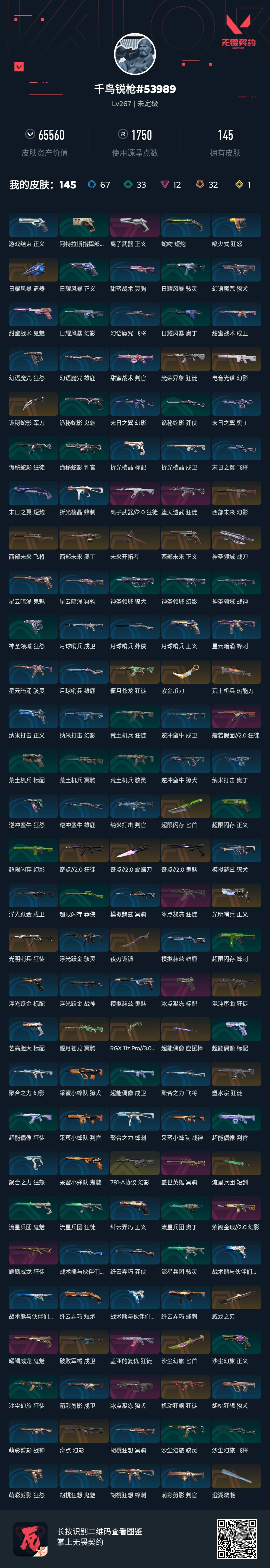 [14384588]b190077 (西部未来套装/奇点2.0套装/耀鳞威龙套装)无畏契约/267等级/未定级/27英雄/145皮肤/65560资产/已使用r点1750/剩余r点70/西部未来-幻影西部未来-奥丁西部未来-飞将西部未来-正义未来开拓者,奇点//2.0-狂徒奇点//2.0-鬼魅奇点//2.0-蝴蝶刀,耀鳞威龙-狂徒耀鳞威龙-鬼魅威龙之刃,日耀风暴-遗器,诡秘蛇影-军刀,神圣领域-战刀,荒土机兵-热能刀,超限闪存-匕首,超能偶像-应援棒,流星兵团-短剑,沙尘幻旅-匕首,澄湖潋滟,夜刃诡镰,紫金爪刀,rgx-11z-pro//3.0-爪刀,光荣异象-狂徒,电音光谱-幻影,光明哨兵-狂徒,混沌序曲-狂徒,破败军械-戍卫,塑水宗-狂徒,机动狂飙-狂徒,偃月苍龙-狂徒,奇点-幻影,781-a协议-幻影,离子武器//2.0-狂徒,堕天遗武-狂徒,般若假面//2.0-狂徒,紫阙金琅//2.0-幻影,盖亚的复仇-狂徒,冰点凝冻-狂徒,冰点凝冻-獠犬,偃月苍龙-冥驹,盖世英雄-冥驹,光明哨兵-正义,冰点凝冻-标配,离子武器-正义