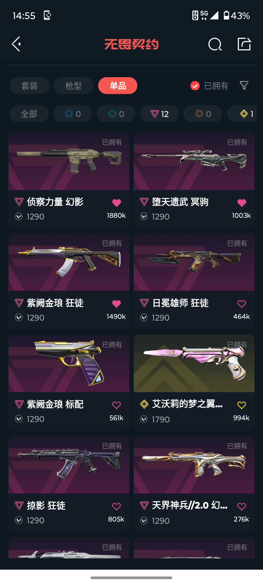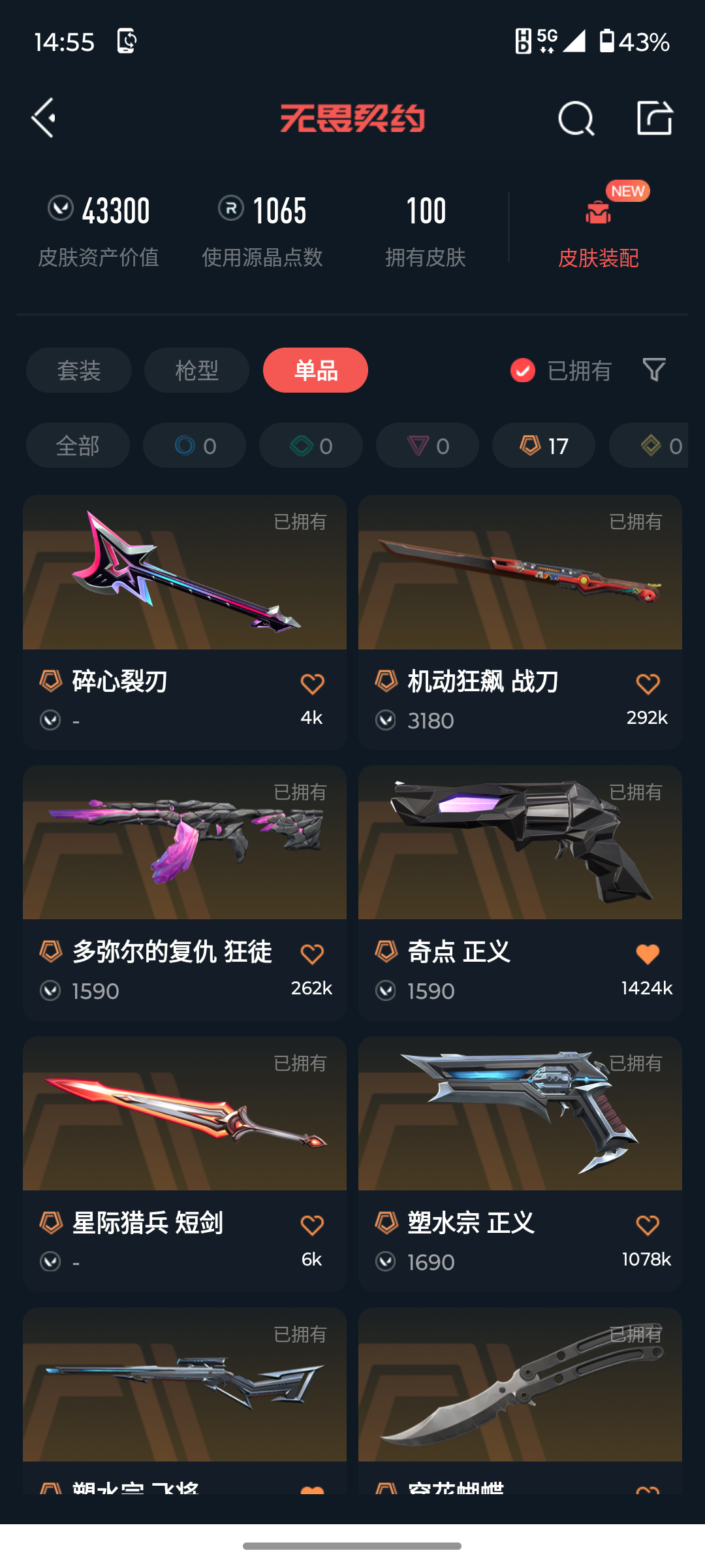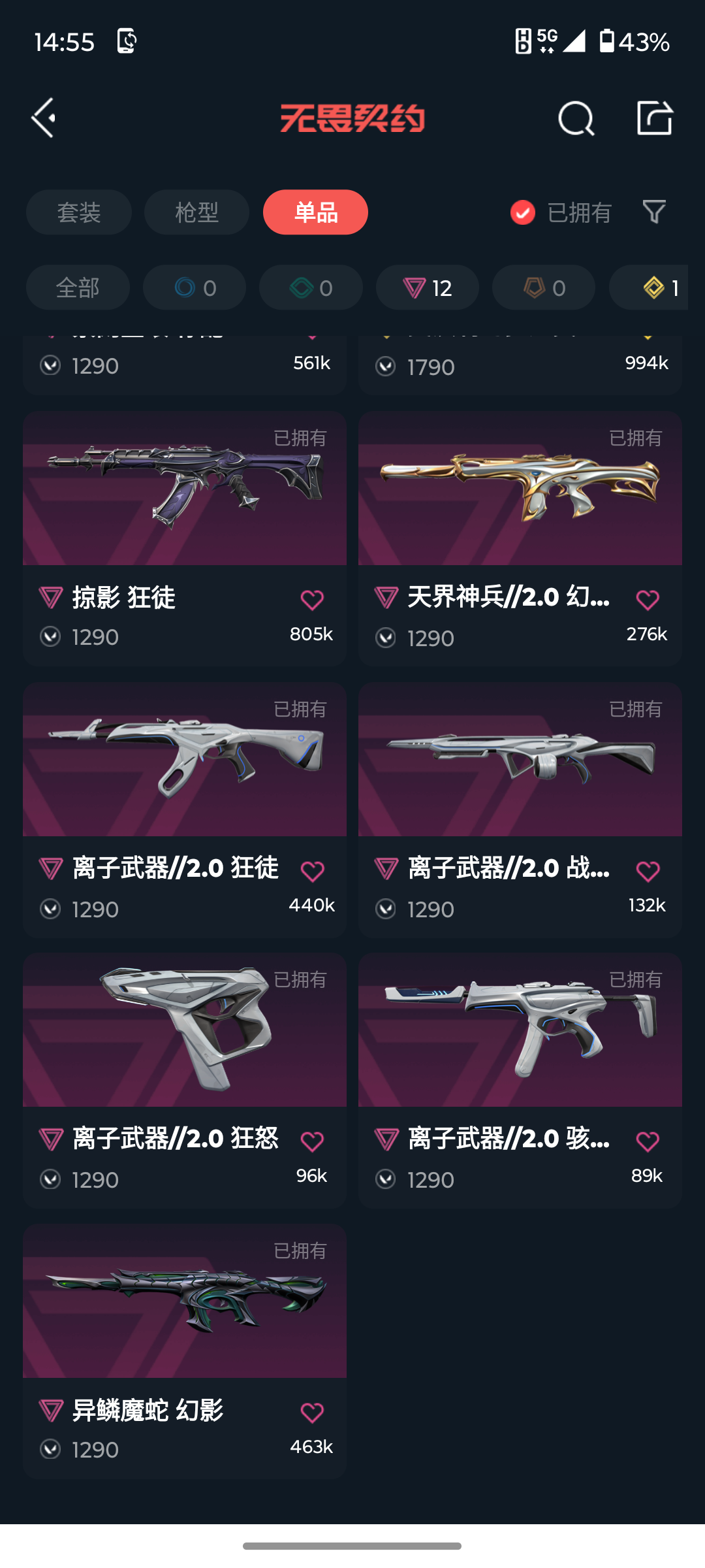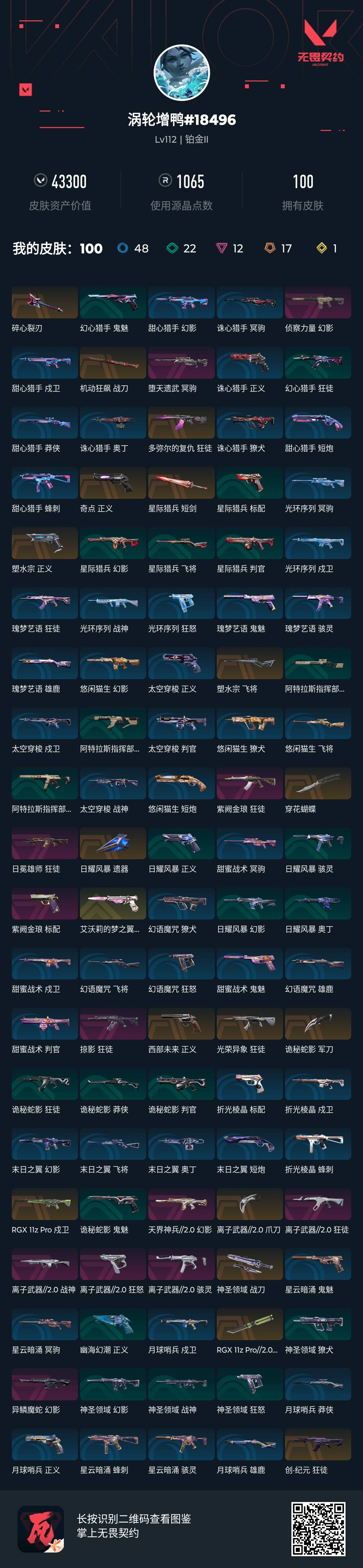 [14444360]l192349 (离子武器//2.0套装)无畏契约/112级/铂金ii/28英雄/100皮肤/资产43300/已使用r点1065/剩余r点5/离子武器//2.0-狂徒,离子武器//2.0-战神,离子武器//2.0-骇灵,离子武器//2.0-狂怒,离子武器//2.0-爪刀,碎心裂刃,星际猎兵-短剑,日耀风暴-遗器,诡秘蛇影-军刀,神圣领域-战刀,rgx-11z-pro//2.0-蝴蝶刀,机动狂飙-战刀,穿花蝴蝶,多弥尔的复仇-狂徒,光荣异象-狂徒,rgx-11z-pro-戍卫,创·纪元-狂徒,异鳞魔蛇-幻影,天界神兵//2.0-幻影,紫阙金琅-狂徒,侦察力量-幻影,日冕雄师-狂徒,掠影-狂徒,塑水宗-飞将,堕天遗武-冥驹,西部未来-正义,塑水宗-正义,奇点-正义,艾沃莉的梦之翼-鬼魅,紫阙金琅-标配