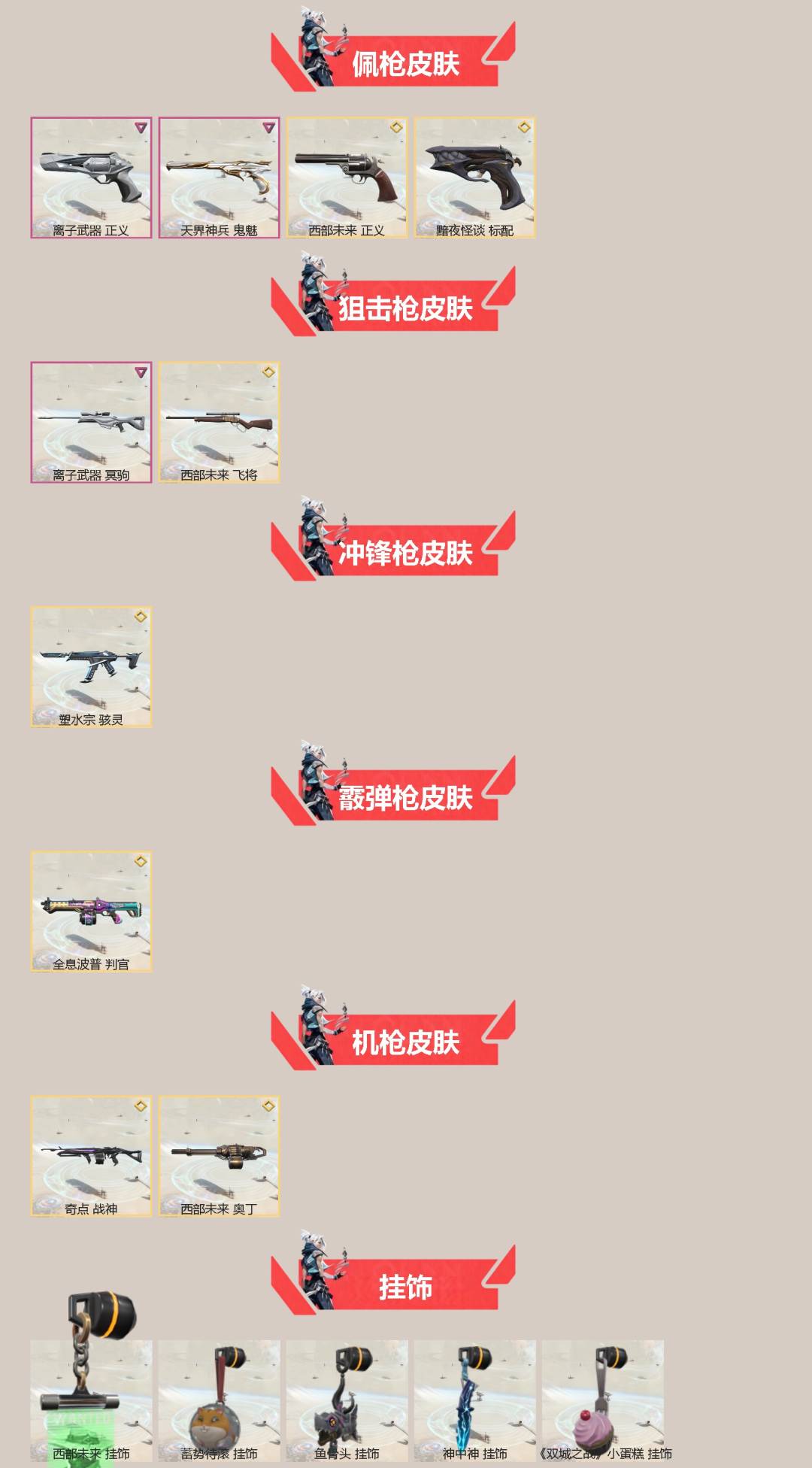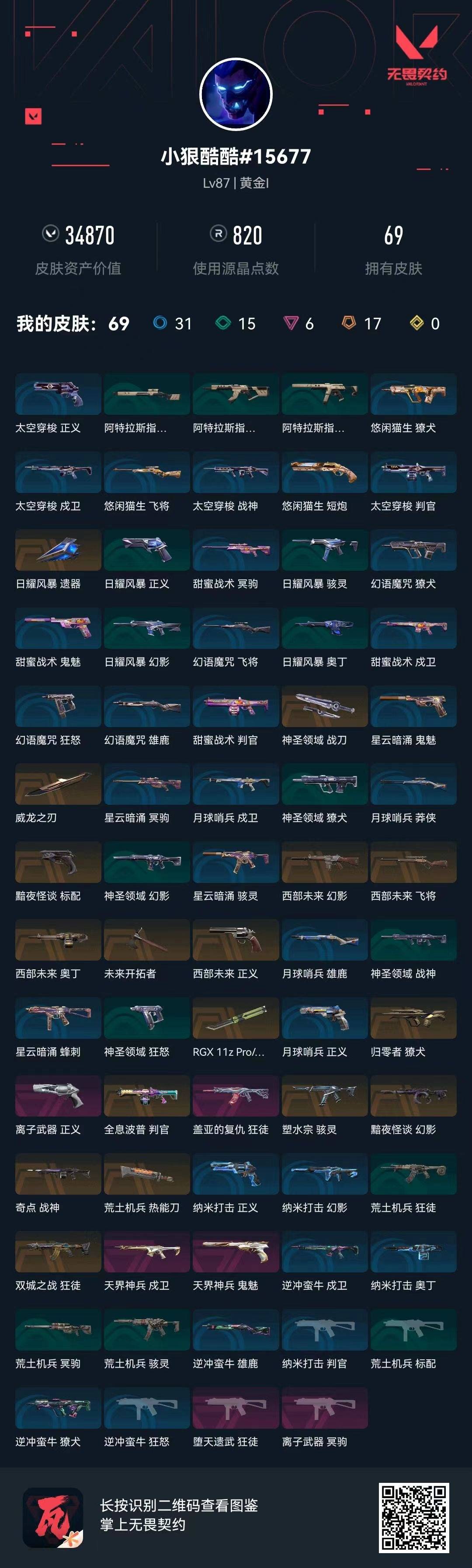 17橙皮 6紫皮 69皮肤 22英雄 95卡面 820已用源晶 黄金段位 【套装】:西部未来 【近战武器皮肤】:rgx 11z pro//2.0 蝴蝶刀未来开拓者神圣领域 战刀荒土机兵热能刀威龙之刃 【佩呛皮肤】:标配-黯夜怪谈正义-西部未来正义-离子武器鬼魅-天界神兵 【冲锋呛皮肤