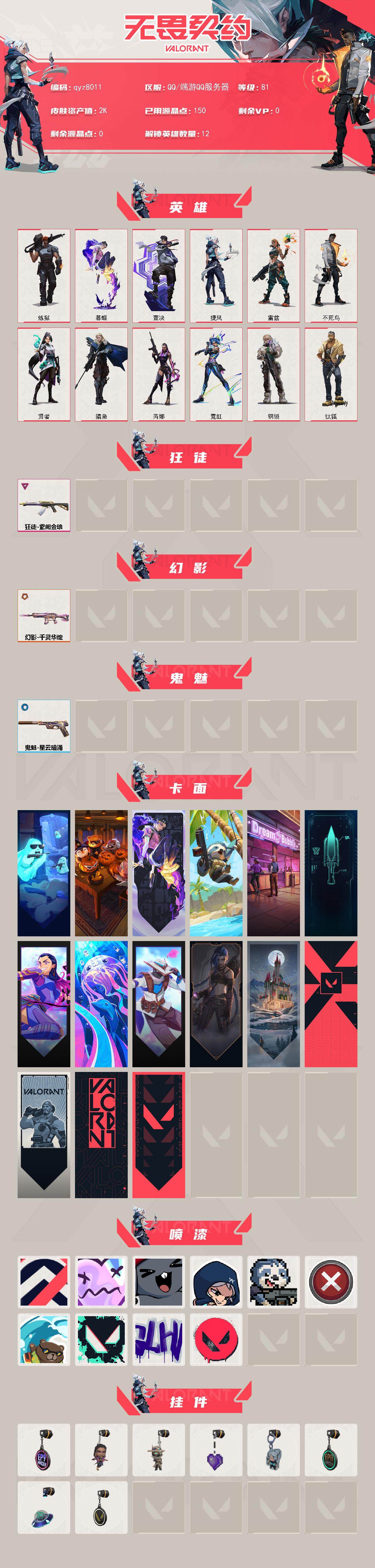 莲花m4-紫金ak-qyz8011-步呛皮肤:-狂徒-紫阙金琅幻影-千灵华绽-亮点:-【qyz8011】莲花m4-紫金akqyz8011-步呛皮肤:-狂徒-紫阙金琅幻影-千灵华绽-亮点:-【qyz8011】【英雄】:炼狱,暮蝶,钛狐,壹决,捷风,雷兹,不死鸟,贤者,猎枭,芮娜,霓虹,钢锁【狂徒】:狂徒-紫阙金琅【幻影】:幻影-千灵华绽【鬼魅】:鬼魅-星云暗涌【卡面】:精灵大战-卡面,南瓜盛典-卡面,无畏契约:暮蝶-卡面,树懒大作战-卡面,梦幻奶茶-卡面,零点嗅探设计图-卡面,无畏契约go!第一卷:芮娜-卡面,深海水族-卡面,无畏契约go!第一卷:零-卡面,《双城之战》金克丝-卡面,胡桃狂想-卡面,代号红色-卡面,新兵报到-卡面,v契约-卡面,无畏契约-卡面【喷漆】:控场勿近-喷漆,伤心心-喷漆,超级粉丝-喷漆,捷风差距-喷漆,审判之爪-喷漆,买装还是存钱-喷漆,酷熊冲浪-喷漆,胜利属于无畏契约-喷漆,glhf-喷漆,无畏契约-喷漆【挂饰】:第九季//第三幕-纪念币-挂饰,无畏契约go!第一卷-芮娜-挂饰,无畏契约go!第一卷-零-挂饰,薰衣草之心-挂饰,袖珍捷风-挂饰,第八季//第三幕-纪念币-挂饰,天外飞客-挂饰,无畏契约-纪念币-挂饰