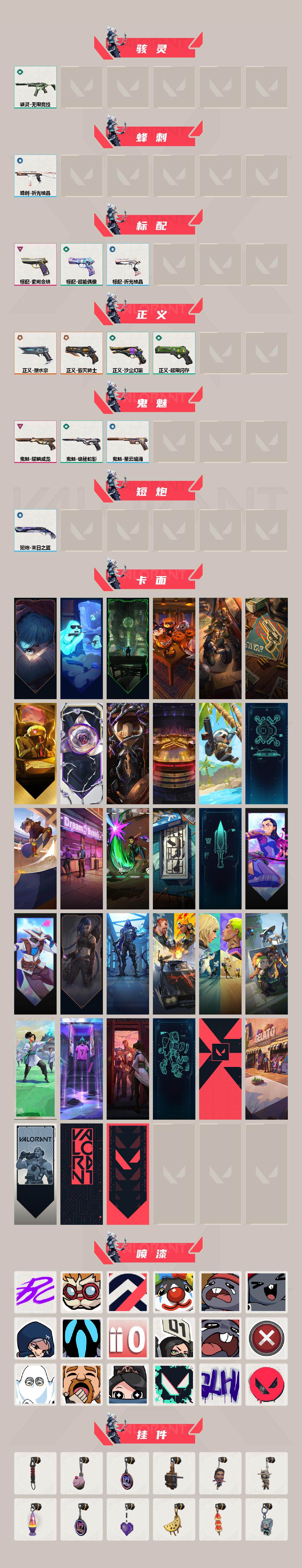 [14614295]【套装】:2022全球冠军赛套装,vct 2025 赛季套装 【英雄】:幻棱,炼狱,维斯,暮蝶,钛狐,壹决,铁臂,捷风,雷兹,幽影,不死鸟,贤者,猎枭,蝰蛇,零,芮娜,奇乐,尚勃勒,霓虹,斯凯,夜露,星礈,k/o,海神,盖可,黑梦,钢锁 【近战 武器】:近战武器-2022全球冠军赛 蝴蝶刀,近战武器-vct 2025 爪刀,近战武器-黑波之刃,近战武器-定海神珍,近战武器-诡秘蛇影 军刀,近战武器-日耀风暴 遗器,近战武器-阿特拉斯指挥部 甩棍,近战武器-星际猎兵 短剑 【狂徒】:狂徒-超时空卫队,狂徒-2025全球冠军赛,狂徒-洪荒怒焰,狂徒-rgx 11z pro,狂徒-滋滋x特攻队,狂徒-冰点凝冻,狂徒-掠影,狂徒-耀鳞威龙,狂徒-紫阙金琅,狂徒-离子武器//2.0,狂徒-诡秘蛇影 【幻影】:幻影-2022全球冠军赛,幻影-黯夜怪谈,幻影-砰砰x特攻队,幻影-侦察力量,幻影-末日之翼 【戍卫】:戍卫-破败军械,戍卫-折光棱晶 【冥驹】:冥驹-盖世英雄 【飞将】:飞将-末日之翼 【莽侠】:莽侠-诡秘蛇影 【奥丁】:奥丁-末日之翼 【判官】:判官-诡秘蛇影 【骇灵】:骇灵-无限竞技 【蜂刺】:蜂刺-折光棱晶 【标配】:标配-紫阙金琅,标配-超能偶像,标配-折光棱晶 【正义】:正义-毁灭骑士,正义-塑水宗,正义-超限闪存,正义-沙尘幻旅 【鬼魅】:鬼魅-耀鳞威龙,鬼魅-诡秘蛇影,鬼魅-星云暗涌 【短炮】:短炮-末日之翼 【卡面】:《双城之战》拥抱 卡面,精灵大战 卡面,欢迎来到底城 卡面,南瓜盛典 卡面,修车达人 卡面,正义的化身 卡面,终章:生意人麦宝 卡面,铁之华 卡面,时间到 卡面,最高舞台 卡面,树懒大作战 卡面,声感陷阱设计图 卡面,clutch 卡面,梦幻奶茶 卡面,源能反应 卡面,打造专属狂徒 卡面,零点嗅探设计图 卡面,无畏契约go!第一卷:芮娜 卡面,无畏契约go!第一卷:零 卡面,《双城之战》金克丝 卡面,暗呛 卡面,铁臂vs雷兹 卡面,钢锁vs盖可 卡面,别冒尖 卡面,夯实根基 卡面,"luie" 卡面,热烈欢迎 卡面,铁臂设计图 卡面,代号红色 卡面,冰淇淋店 卡面,新兵报到 卡面,v契约 卡面,无畏契约 卡面,拯救宽体奇乐 卡面 【喷漆】:嘭! 喷漆,都算到了 喷漆,控场勿近 喷漆,小丑猫 喷漆,熊抱 喷漆,超级粉丝 喷漆,捷风差距 喷