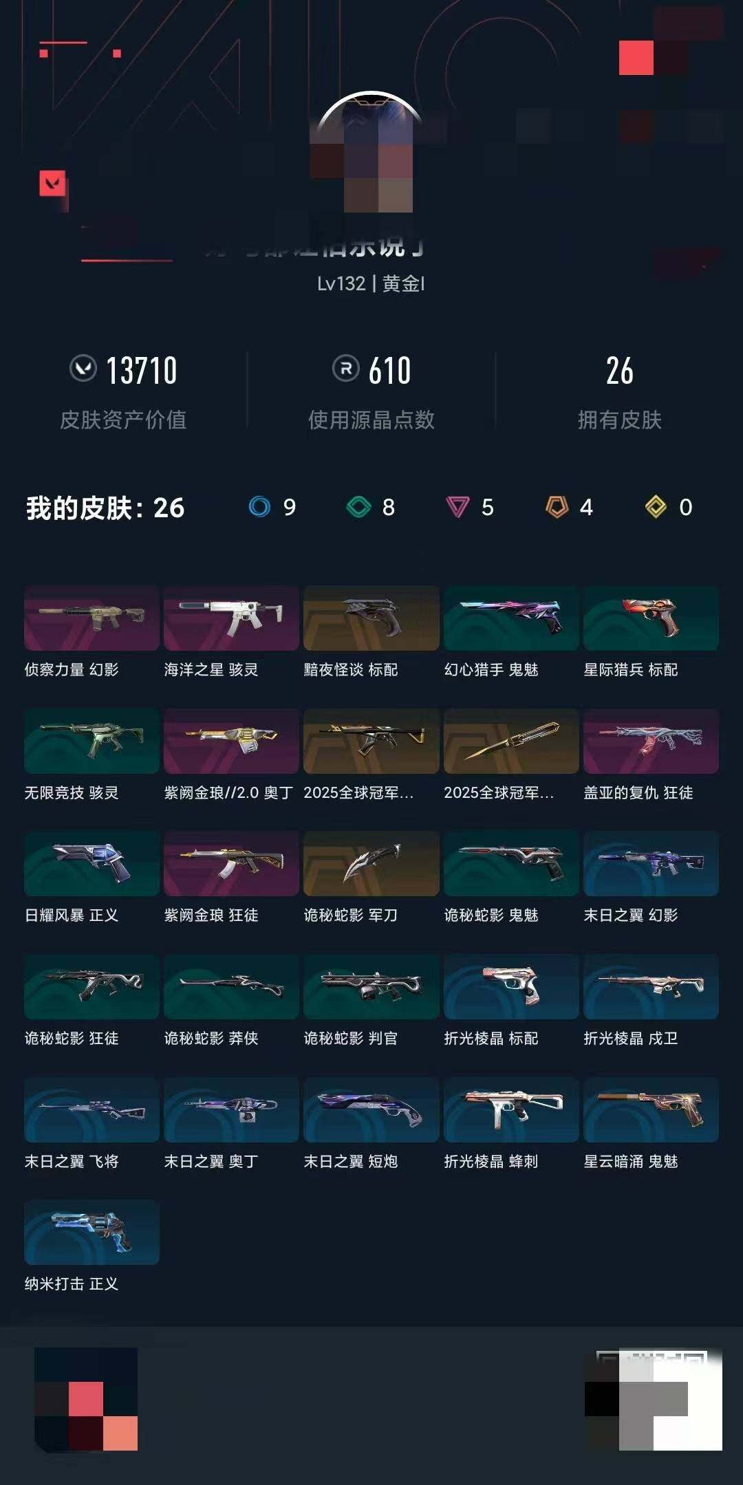 【wwn226】终极4/卓越5/皮肤26/等级132/段位:黄金/2025全球冠军赛套装/幻棱/炼狱/维斯/暮蝶/钛狐/壹决/铁臂/捷风/雷兹/幽影/不死鸟/贤者/猎枭/蝰蛇/零/芮娜/奇乐/尚勃勒/霓虹/斯凯/夜露/星礈/k/o/海神/盖可/黑梦/钢锁/近战武器-2025全球冠军赛 蝴蝶刀/近战武器-诡秘蛇影 军刀/狂徒-2025全球冠军赛/狂徒-盖亚的复仇/狂徒-紫阙金琅/狂徒-诡秘蛇影/幻影-侦察力量/幻影-末日之翼/戍卫-折光棱晶/飞将-末日之翼/莽侠-诡秘蛇影/奥丁-紫阙金琅//2.0/奥丁-末日之翼/判官-诡秘蛇影/骇灵-海洋之星/骇灵-无限竞技/蜂刺-折光棱晶/标配-黯夜怪谈/标配-折光棱晶/正义-纳米打击/鬼魅-诡秘蛇影/鬼魅-星云暗涌/短炮-末日之翼/终章:激斗汉堡 卡面/进入射程 卡面/银弹猎手 卡面/《双城之战》拥抱 卡面/精灵大战 卡面/欢迎来到底城 卡面/南瓜盛典 卡面/正义的化身 卡面/树懒大作战 卡面/红鳞松叶 卡面/clutch 卡面/脚踝终结者 卡面 /夜班 卡面/无畏契约go!第一卷:芮娜 卡面/无畏契约go!第一卷:零 卡面/《双城之战》金克丝 卡面/蝰蛇vs幽影 卡面/同步耍酷 卡面/无畏契约go!第一卷:贤者 卡面/别冒尖 卡面/代号红色 卡面/新兵报到 卡面/v契约 卡面/无畏契约 卡面/嗨宝南瓜灯 喷漆/嘭! 喷漆/都算到了 喷漆/控场勿近 喷漆/买装还是存钱 喷漆/无畏契约go!第一卷:芮娜 喷漆/胜利属于无畏契约 喷漆/glhf 喷漆/无畏契约 喷漆/终章:猫猫木乃伊 挂饰/悠闲鸡块 挂饰/伞绳 挂饰/《双城之战》小蛋糕 挂饰/第九季//第三幕 纪念币 挂饰/无畏契约go!第一卷 芮娜 挂饰/无畏契约go!第一卷 零 挂饰/第九季//第二幕 纪念币 挂饰/天外飞客 挂饰/《双城之战》魄罗 挂饰/无畏契约 纪念币 挂饰