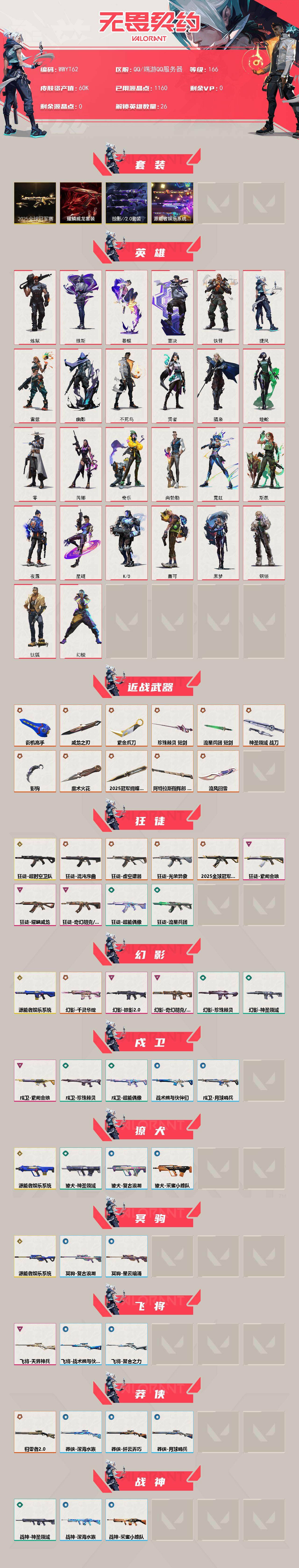 【wwyt62】终极18/传奇5/卓越13/皮肤97/等级166/段位:未定级/2025全球冠军赛套装/源能者娱乐系统套装/耀鳞威龙套装/掠影//2.0套装/幻棱/炼狱/维斯/暮蝶/钛狐/壹决/铁臂/捷风/雷兹/幽影/不死鸟/贤者/猎枭/蝰蛇/零/芮娜/奇乐/尚勃勒/霓虹/斯凯/夜露/星礈/k/o/盖可/黑梦/钢锁/近战武器-2025全球冠军赛 蝴蝶刀/近战武器-流风回雪/近战武器-魔术火花/近战武器-影钩/近战武器-紫金爪刀/近战武器-威龙之刃/近战武器-珍珠棘贝 短剑/近战武器-流星兵团 短剑/近战武器-街机高手/近战武器-神圣领域 战刀/近战武器-阿特拉斯指挥部 甩棍/狂徒-超时空卫队/狂徒-2025全球冠军赛/狂徒-混沌序曲/狂徒-虚空遗器/狂徒-光荣异象/狂徒-耀鳞威龙/狂徒-紫阙金琅/狂徒-奇幻朋克//3.0/狂徒-超能偶像/狂徒-流星兵团/幻影-源能者娱乐系统/幻影-千灵华绽/幻影-掠影//2.0/幻影-奇幻朋克//3.0/幻影-珍珠棘贝/幻影-神圣领域/戍卫-紫阙金琅/戍卫-超能偶像/戍卫-珍珠棘贝/戍卫-战术熊与伙伴们/戍卫-月球哨兵/獠犬-源能者娱乐系统/獠犬-神圣领域/獠犬-采蜜小蜂队/獠犬-复古浪潮/冥驹-源能者娱乐系统/冥驹-复古浪潮/冥驹-星云暗涌/飞将-天界神兵/飞将-聚合之力/飞将-战术熊与伙伴们/莽侠-归零者//2.0/莽侠-深海水族/莽侠-纤云弄巧/莽侠-月球哨兵/战神-神圣领域/战神-采蜜小蜂队/战神-深海水族/奥丁-掠影//2.0/奥丁-流星兵团/判官-超能偶像/判官-采蜜小蜂队/雄鹿-紫阙金琅//2.0/雄鹿-复古浪潮/雄鹿-月球哨兵/骇灵-掠影//2.0/骇灵-流星兵团/骇灵-珍珠棘贝/骇灵-星云暗涌/蜂刺-聚合之力/蜂刺-深海水族/蜂刺-纤云弄巧/蜂刺-星云暗涌/标配-战术熊与伙伴们/标配-vct x prx/正义-掠影/正义-复古浪潮/正义-纳米打击/正义-纤云弄巧/正义-月球哨兵/鬼魅-源能者娱乐系统/鬼魅-耀鳞威龙/鬼魅-掠影//2.0/鬼魅-流星兵团/鬼魅-诡秘蛇影/鬼魅-采蜜小蜂队/鬼魅-星云暗涌/狂怒-珍珠棘贝/狂怒-神圣领域/狂怒-聚合之力/狂怒-战术熊与伙伴们/短炮-深海水族/短炮-纤云弄巧/终章:激斗汉堡 卡面/进入射程 卡面/《双城之战》拥抱 卡面/精灵大战 卡面/欢迎来到底城 卡面/南瓜盛典 卡面/修车达人 卡面/正义的化身 卡面/时间到 卡面/最高舞台 卡面/复活专家 卡面/归乡 // 蝰蛇 卡面/超能偶像 卡面/生意人麦宝 卡面/音熊登场 卡面/先瓦为敬 银色 卡面/声感陷阱设计图 卡面/霓帧牛蛙 卡面/钢锁工牌 卡面/战术小伙伴的夏日 卡面/采蜜小蜂队 卡面/聚合之力 卡面/梦幻奶茶 卡面/终章:打造专属狂徒 卡面/趁热吃 卡面/西装暴徒 卡面/失控边缘 卡面/哨卫者之领域 卡面/暮蝶工牌 卡面/战术熊与伙伴们 卡面/源能反应 卡面/流星兵团 卡面/纤云弄巧 卡面/暂别喧嚣 卡面/打造专属狂徒 卡面/零点嗅探设计图 卡面/表象之下 卡面/虹吸式咖啡壶 卡面/源能者美容 卡面/脚踝终结者 卡面 /夜班 卡面/瓦娃脸雪糕 卡面 /沙雕爆能器 卡面/无畏契约go!第一卷:芮娜 卡面/深海水族 卡面/珍珠棘贝 卡面/复古浪潮 卡面/盖可工牌 卡面/清除名单 卡面/无畏契约go!第一卷:零 卡面/龍记 卡面/暗呛 卡面/钢锁vs盖可 卡面/别冒尖 卡面/铁臂设计图 卡面/代号红色 卡面/新兵报到 卡面/v契约 卡面/无畏契约 卡面/嗨宝南瓜灯 喷漆/嘭! 喷漆/都算到了 喷漆/控场勿近 喷漆/熊抱 喷漆/终极羞辱 喷漆/超级粉丝 喷漆/捷风差距 喷漆/惊声尖叫 喷漆/水晶球 喷漆/五人成星 喷漆/超能偶像 喷漆/放我出去 喷漆/战术熊的巴拉莱卡琴 喷漆/掩护我 喷漆/大佬发呛 喷漆/边缘试探 喷漆/拼一呛 喷漆/聚合之力 喷漆/采蜜小蜂队 喷漆/梦幻小队 喷漆/五个全都齐了 喷漆/加油!加油! 喷漆/开心到爆炸 喷漆/皮蛋萌舞 喷漆/我觉得不行 喷漆/头号粉丝 喷漆/吸一口快乐 喷漆/永远的答案 喷漆/再来一次? 喷漆/别挡我的路! 喷漆/我的刀呢? 喷漆/当然可以 喷漆/流星兵团 喷漆/战术熊与伙伴们 喷漆/禁止喷漆 喷漆/纤云弄巧 喷漆/情绪控制 喷漆/哨卫滑步 喷漆/倒吸一口凉气 喷漆/uwu 喷漆/新潮流 喷漆/逮到一个 喷漆/一个人的孤岛 喷漆/双人比心 喷漆/不予置评 喷漆/三熊合一 喷漆/要喝完噢! 喷漆/双击点赞 喷漆/珍珠棘贝 喷漆/深海水族 喷漆/禁止标配 喷漆 /铁臂尴尬 喷漆/买装还是存钱 喷漆/醒狮贺春 喷漆/蕊形灯 喷漆/放下武器 喷漆/放手一搏 喷漆/老铁困了 喷漆/胜利属于无畏契约 喷漆/glhf 喷漆/无畏契约 喷漆/终章:猫猫木乃伊 挂饰/悠闲鸡块 挂饰/伞绳 挂饰/《双城之战》小蛋糕 挂饰/第九季//第三幕 纪念币 挂饰/第九季//第二幕 纪念币 挂饰/袖珍捷风 挂饰/冲上云霄 挂饰/超能偶像 挂饰/迷你浓缩 挂饰/尤克里里 挂饰/这瓜保熟 挂饰/z世代特饮 挂饰/采蜜小蜂队 挂饰/第九季//第一幕 纪念币 挂饰/聚合之力 挂饰/第八季:白银 挂饰/终章:迷你机甲 挂饰/犯困的布鲁诺 挂饰/战术河童 挂饰/招财猫熊 挂饰/迷你机甲 挂饰/荧光棒 挂饰/章鱼烧先生 挂饰/流星兵团 挂饰/云开见日 挂饰/第八季//第三幕 纪念币 挂饰/终章:扭结饼干 挂饰 /战术抓娃娃:阿丹 挂饰 /瓶中信 挂饰/复古浪潮 挂饰/深海水母 挂饰/传世莲华 挂饰/扭结饼干 挂饰 /珍珠棘贝 挂饰/深海水族 挂饰 /第八季//第二幕 纪念币 挂饰 /天外飞客 挂饰/好运福爪 挂饰/红鳞松叶 挂饰/第八季//第一幕 纪念币 挂饰/海豹的认可 挂饰/第七季//第三幕 纪念币 挂饰/无畏契约 纪念币 挂饰