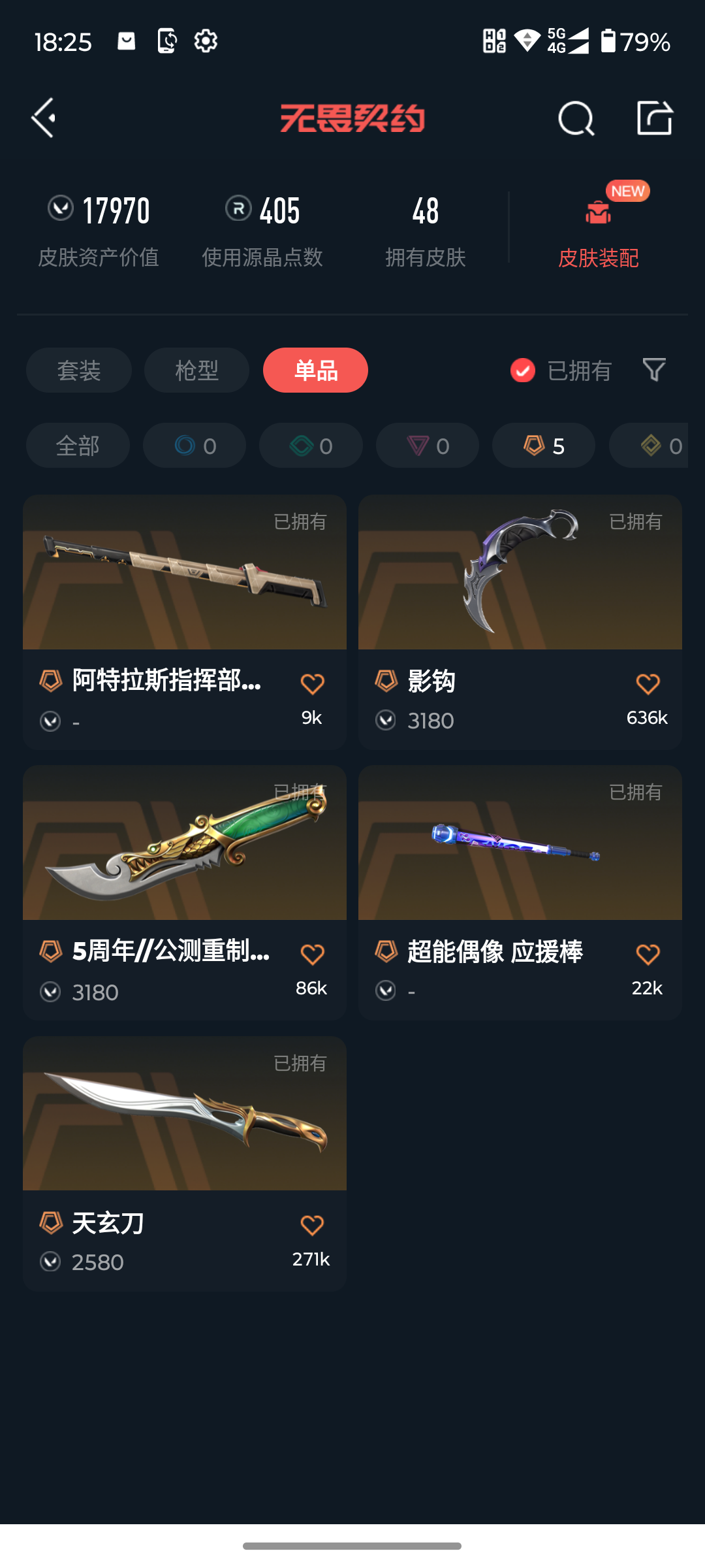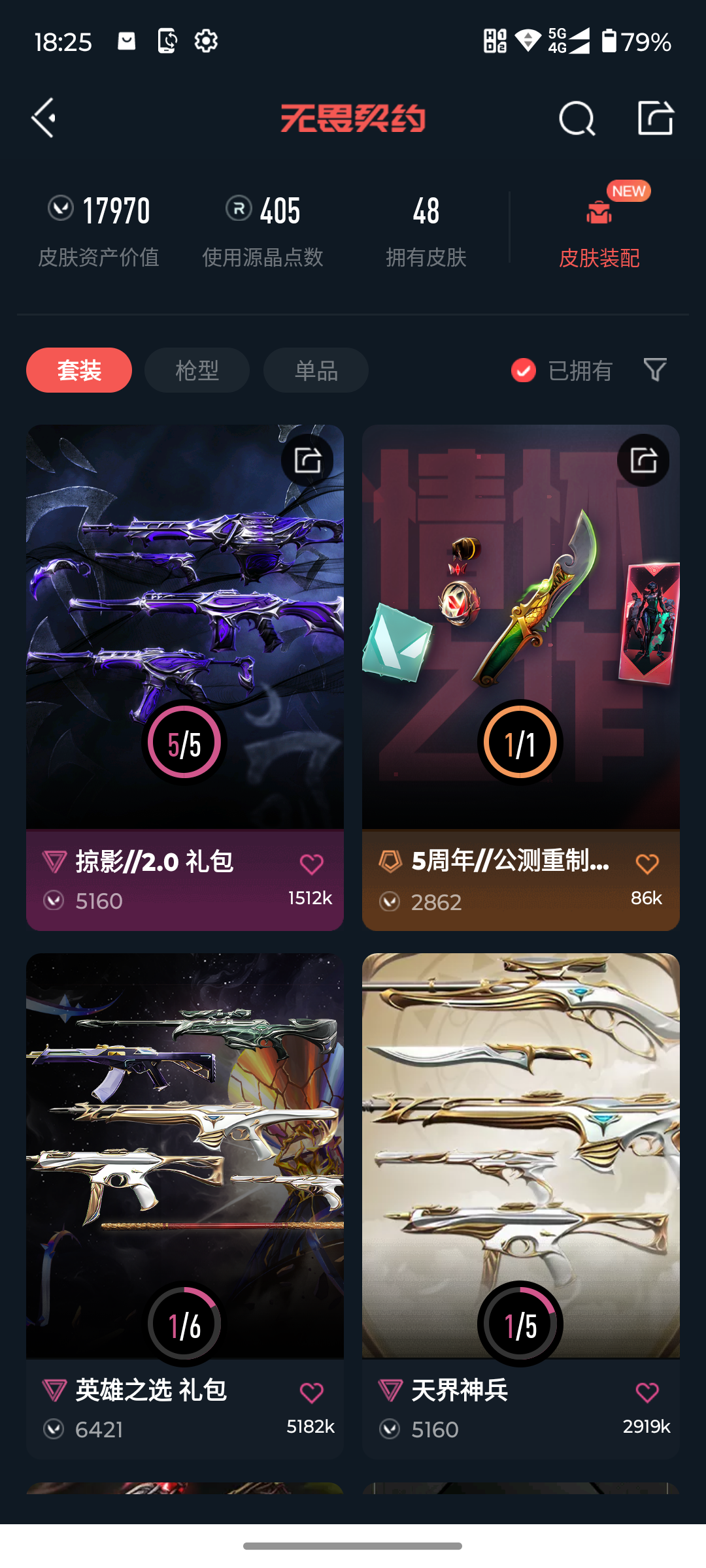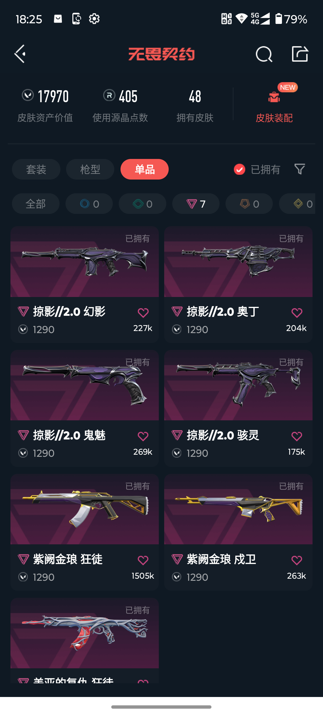 [14644258]q191316 (掠影//2.0套装)无畏契约/等级79/段位未定级/英雄22/皮肤48/资产17970/已使用r点405/剩余r点355/掠影//2.0-幻影掠影//2.0-奥丁掠影//2.0-骇灵掠影//2.0-鬼魅影钩,阿特拉斯指挥部-甩棍,5周年//公测重制版-苍龙之刃,超能偶像-应援棒,天玄刀,紫阙金琅-狂徒,紫阙金琅-戍卫,盖亚的复仇-狂徒
