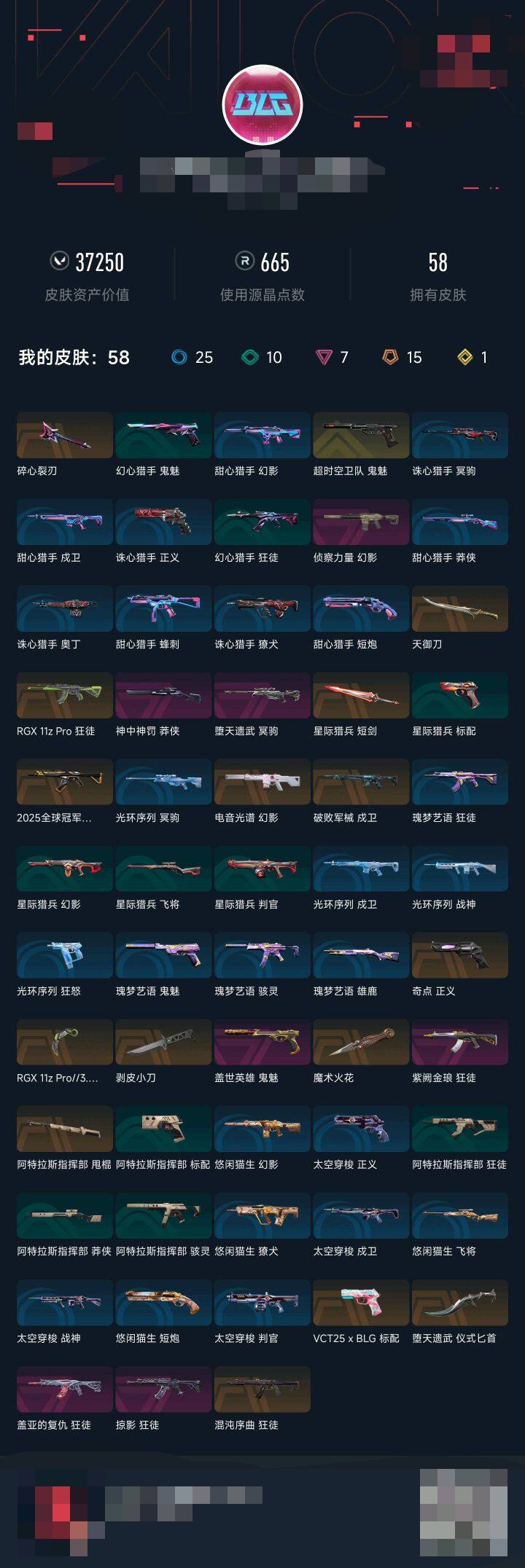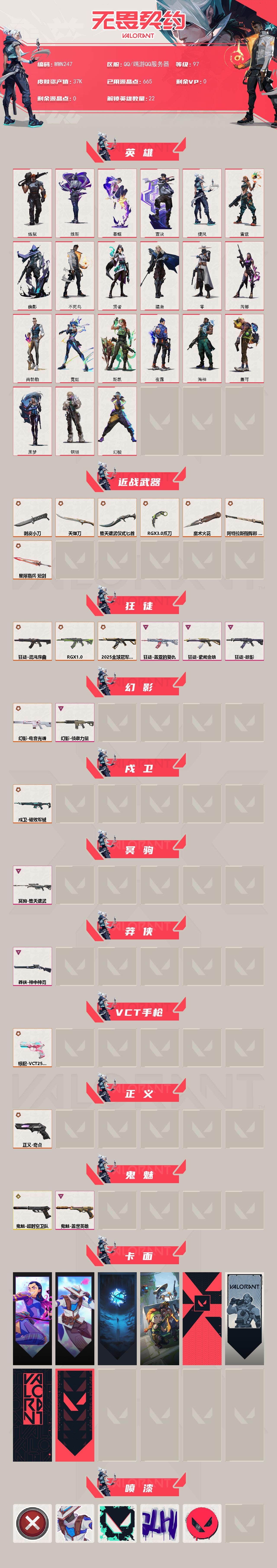 【wwn247】终极15/传奇1/卓越7/皮肤58/等级97/段位:青铜/幻棱/炼狱/维斯/暮蝶/壹决/捷风/雷兹/幽影/不死鸟/贤者/猎枭/零/芮娜/尚勃勒/霓虹/斯凯/夜露/海神/盖可/黑梦/钢锁/近战武器-魔术火花/剥皮小刀/rgx-11z-pro//3.0-爪刀/堕天遗武 仪式匕首/天御刀/近战武器-阿特拉斯指挥部 甩棍/近战武器-星际猎兵 短剑/狂徒-2025全球冠军赛/混