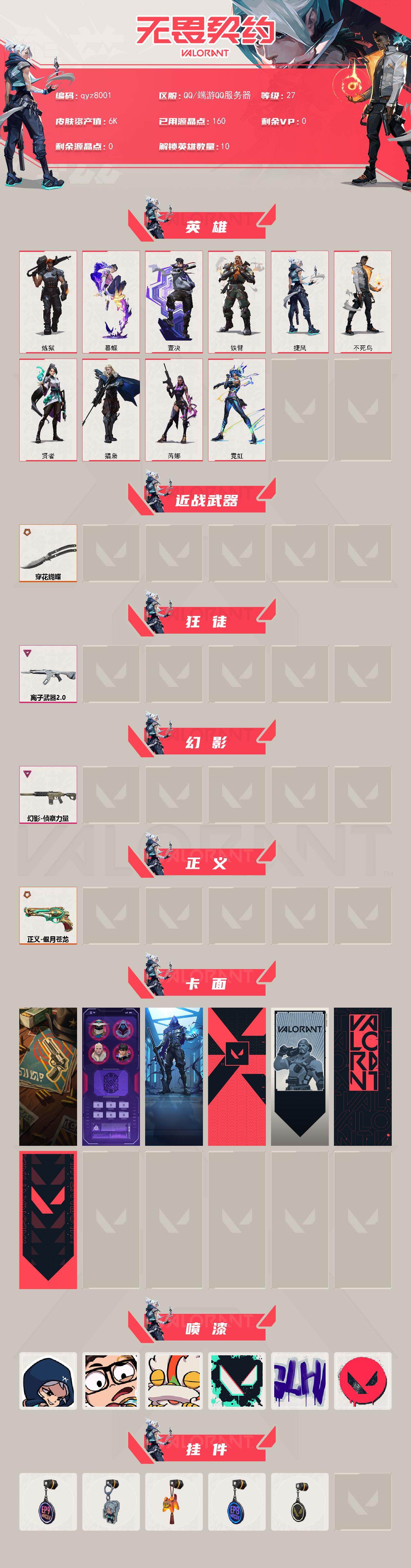 穿花蝴蝶-离子ak-侦察m4-qyz8001-lv27-白银i,-刀皮数量1,呛皮数量3-绝版0限定2终极0卓越2-;皮肤资产价值6750,已用r点160;【刀皮】:近战武器-穿花蝴蝶;-【呛皮】:正义-偃月苍龙,狂徒-离子武器20,幻影-侦察力量;【热门挂饰】:袖珍捷风挂饰;【热门喷漆】:醒狮贺春喷漆;详情看图【皮肤可能含有某些特权皮肤,具体以游戏内实际拥有为准】