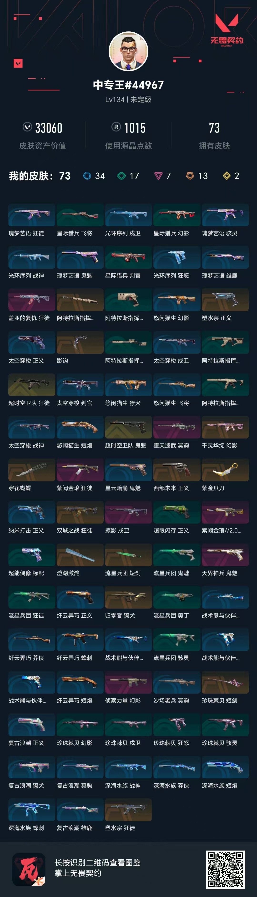 [14682343]13橙皮 2金皮 7紫皮 73皮肤 27英雄 110卡面 1015已用源晶 未定级段位 【近战武器皮肤】:短剑-流星兵团影钩穿花蝴蝶阿特拉斯指挥部紫金爪刀短剑-珍珠棘贝澄湖潋滟 【佩呛皮肤】:鬼魅-超时空卫队正义-西部未来正义-塑水宗鬼魅-天界神兵 【步呛皮肤】:狂徒-双城之战戍卫-掠影狂徒-超时空卫队狂徒-紫阙金琅狂徒-盖亚的复仇狂徒-塑水宗幻影-侦察力量幻影-紫阙金琅2.0幻影-千灵华绽獠犬-归零者 【狙击呛皮肤】:冥驹-堕天遗武 【挂饰】:薰衣草之心挂饰传世莲华挂饰袖珍捷风挂饰双城之战小蛋糕挂饰双城之战魄罗挂饰神中神挂饰打不烂的挂饰源晶工程挂饰糖葫芦挂饰云开见日挂饰迷你机甲挂饰终章ko小金人挂饰