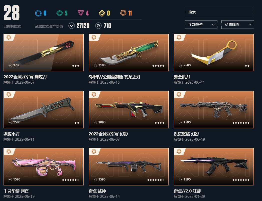 【1260】欢 366203【套装】:2022全球冠军赛套装 【英雄】:幻棱,炼狱,维斯,暮蝶,钛狐,壹决,铁臂,捷风,雷兹,幽影,不死鸟,贤者,猎枭,蝰蛇,零,芮娜,奇乐,尚勃勒,霓虹,斯凯,夜露,星礈,k/o,海神,盖可,黑梦,钢锁 【近战 武器】:近战武器-2022全球冠军赛 蝴蝶刀,近战武器-5周年//公测重制版 苍龙之刃,近战武器-剥皮小刀,近战武器-紫金爪刀,近战武器-日耀风暴 遗器 【狂徒】:狂徒-奇点//2.0,狂徒-双城之战,狂徒-堕天遗武,狂徒-掠影 【幻影】:幻影-2022全球冠军赛,幻影-洪荒怒焰,幻影-侦察力量 【戍卫】:戍卫-天界神兵 【战神】:战神-奇点 【判官】:判官-千灵华绽 【卡面】:《双城之战》拥抱 卡面,精灵大战 卡面,欢迎来到底城 卡面,南瓜盛典 卡面,vct cn首冠 卡面,无畏契约:暮蝶 卡面,修车达人 卡面,正义的化身 卡面,时间到 卡面,最高舞台 卡面,声感陷阱设计图 卡面,红鳞松叶 卡面,clutch 卡面,梦幻奶茶 卡面,源能反应 卡面,零点嗅探设计图 卡面,沙雕爆能器 卡面,无畏契约go!第一卷:芮娜 卡面,清除名单 卡面,无畏契约go!第一卷:零 卡面,龍记 卡面,完美调谐 卡面 ,暗呛 卡面,铁臂设计图 卡面,代号红色 卡面,冰淇淋店 卡面,新兵报到 卡面,友军火力 卡面,v契约 卡面,无畏契约 卡面 【喷漆】:嘭! 喷漆,都算到了 喷漆,控场勿近 喷漆,伤心心 喷漆,小丑猫 喷漆,熊抱 喷漆,蛋糕还是爆能器? 喷漆,超级粉丝 喷漆,黯兽卖萌 喷漆,捷风差距 喷漆,惊声尖叫 喷漆,2021冠军巡回赛花火 喷漆,拼一呛 喷漆,我的刀呢? 喷漆,uwu 喷漆,新潮流 喷漆,双击点赞 喷漆,买装还是存钱 喷漆,醒狮贺春 喷漆,旅行小熊 喷漆,蕊形灯 喷漆,这是你掉的吗? 喷漆,红牌退场 喷漆,口袋贤者 喷漆,胜利属于无畏契约 喷漆,glhf 喷漆,无畏契约 喷漆 【挂饰】:伞绳 挂饰,《双城之战》小蛋糕 挂饰,第九季//第三幕 纪念币 挂饰,熔岩灯 挂饰,第九季//第二幕 纪念币 挂饰,袖珍捷风 挂饰,迷你浓缩 挂饰,第九季//第一幕 纪念币 挂饰,荧光棒 挂饰,第八季//第三幕 纪念币 挂饰,传世莲华 挂饰,第八季//第二幕 纪念币 挂饰 ,天外飞客 挂饰,好运福爪 挂饰,酷闪轮滑 挂饰,瞄这里 挂饰,第八季//第一幕 纪念币 挂饰,第七季//第三幕 纪念币 挂饰,幸运中国结 挂饰,第七季//第二幕 纪念币 挂饰,无畏契约 纪念币 挂饰
