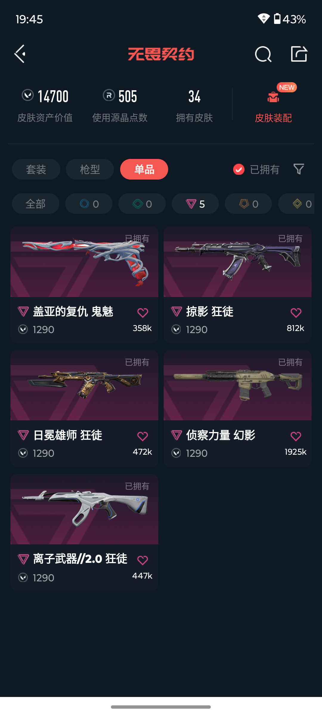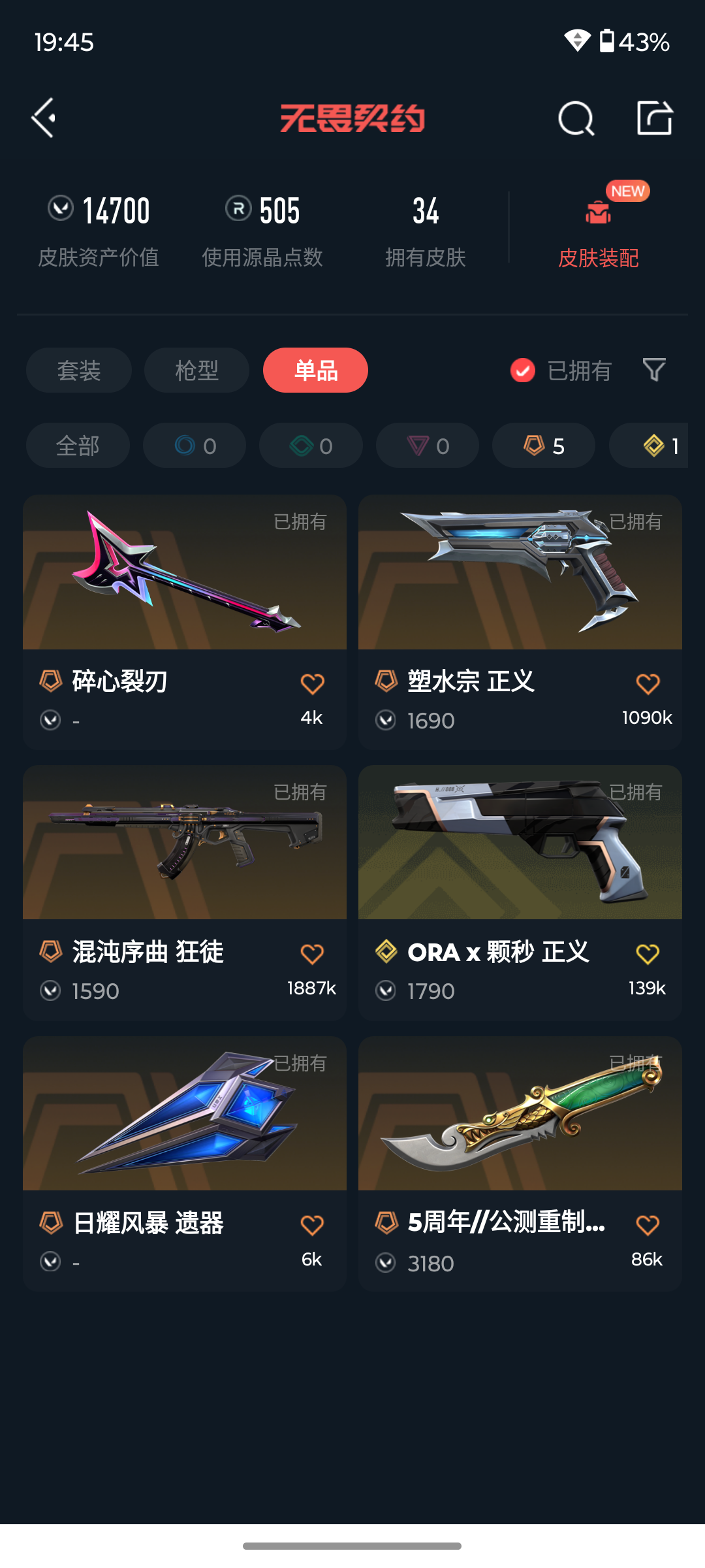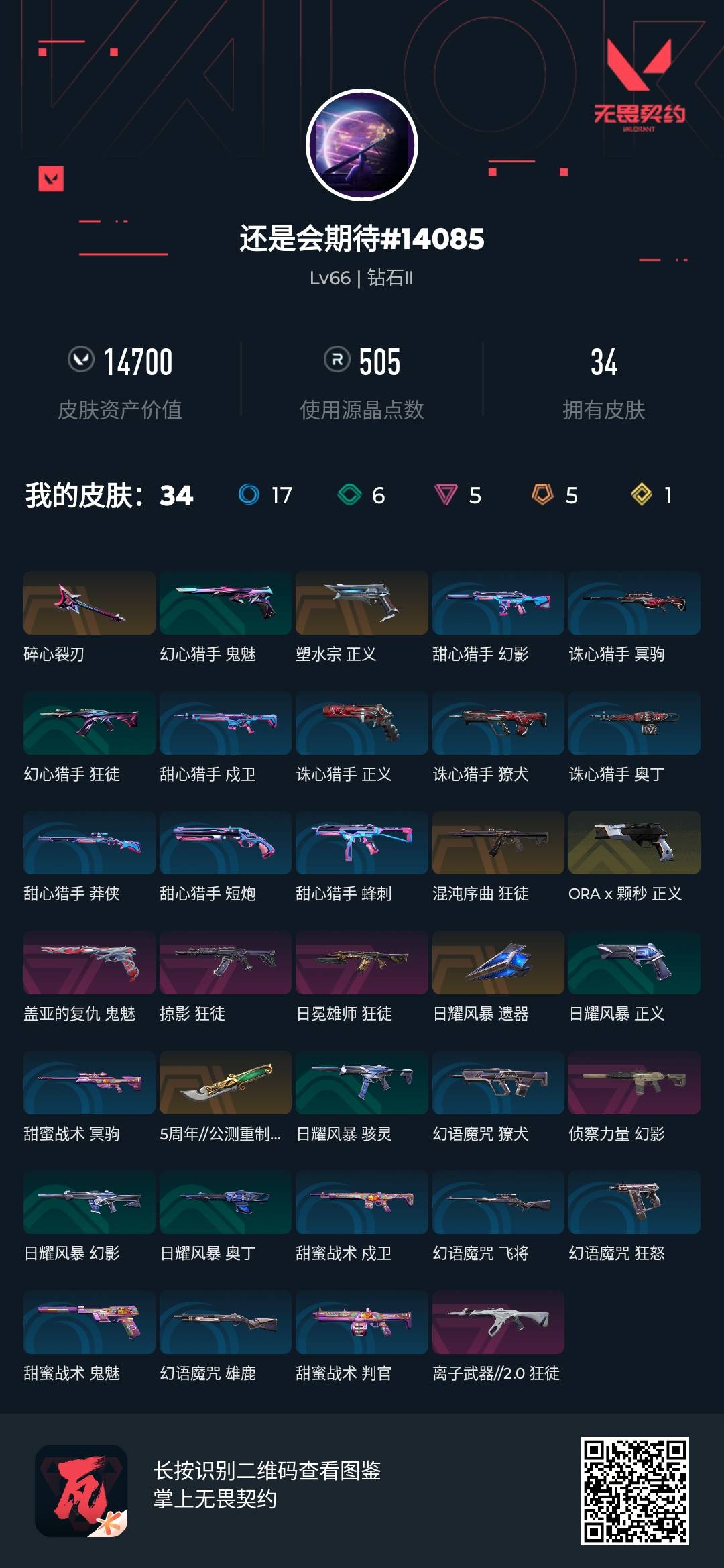 [14707945]q192543 无畏契约/等级66/段位钻石/英雄21/皮肤34/资产14700/已使用r点505/剩余r点55/碎心裂刃,日耀风暴-遗器,5周年//公测重制版-苍龙之刃,混沌序曲-狂徒,离子武器//2.0-狂徒,侦察力量-幻影,日冕雄师-狂徒,掠影-狂徒,塑水宗-正义,a-x-颗秒-正义,盖亚的复仇-鬼魅
