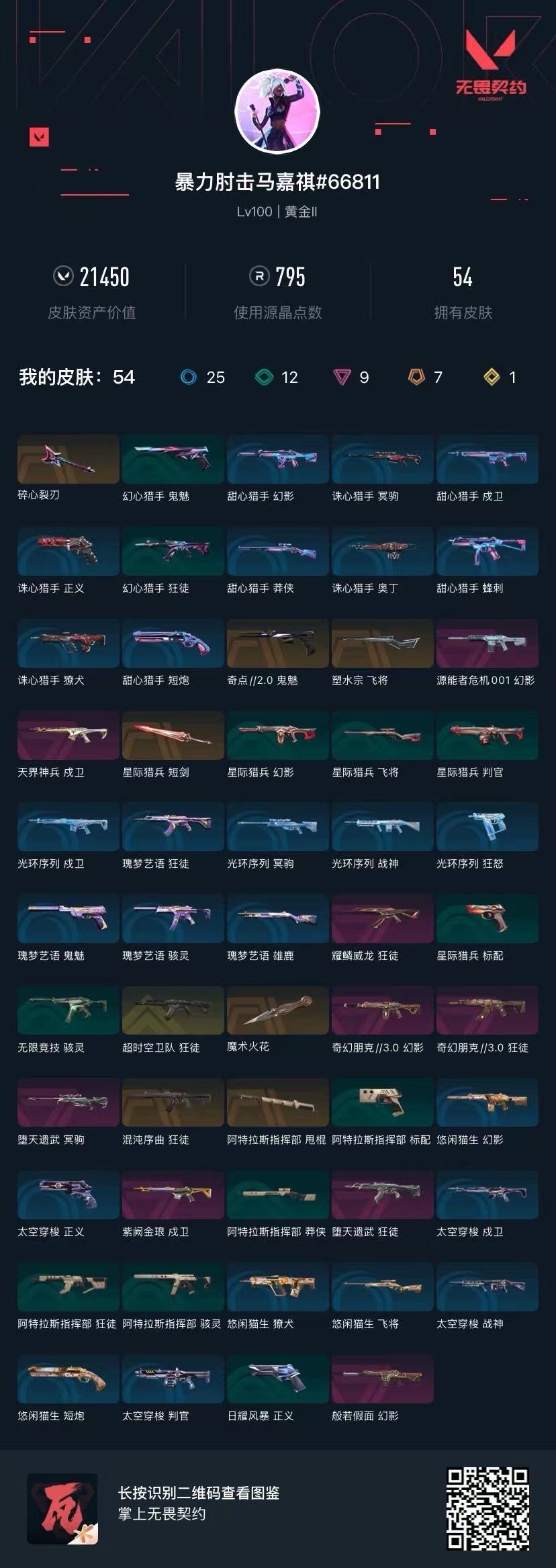 [14717533]7橙皮 1金皮 9紫皮 54皮肤 13英雄 90卡面 795已用源晶 黄金段位 【近战武器皮肤】:星际猎兵 短剑阿特拉斯指挥部碎心裂刃魔术火花 【佩呛皮肤】:鬼魅-奇点//2.0 【步呛皮肤】:狂徒-混沌序曲幻影-奇幻朋克3.0奇幻朋克3.0狂徒狂徒-超时空卫队狂徒-耀鳞威龙狂徒-堕天遗武幻影-源能者危机001幻影-般若假面戍卫-紫阙金琅戍卫-天界神兵 【狙击呛皮肤】:飞将-塑水宗冥驹-堕天遗武 【挂饰】:袖珍捷风挂饰神中神挂饰双城之战魄罗挂饰v25第三幕:黑铁 挂饰古代传承挂饰针织蜜蜂挂饰