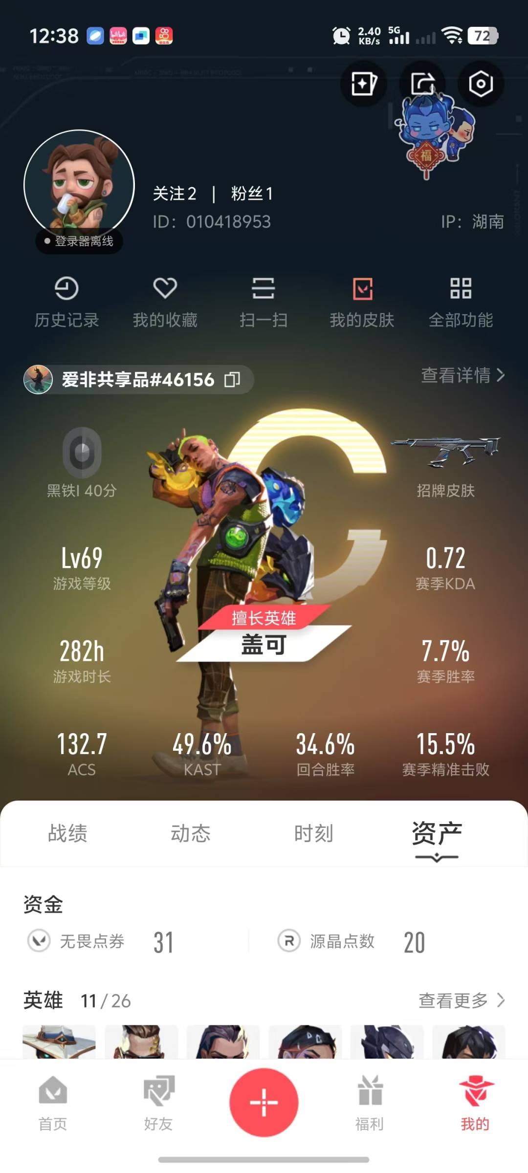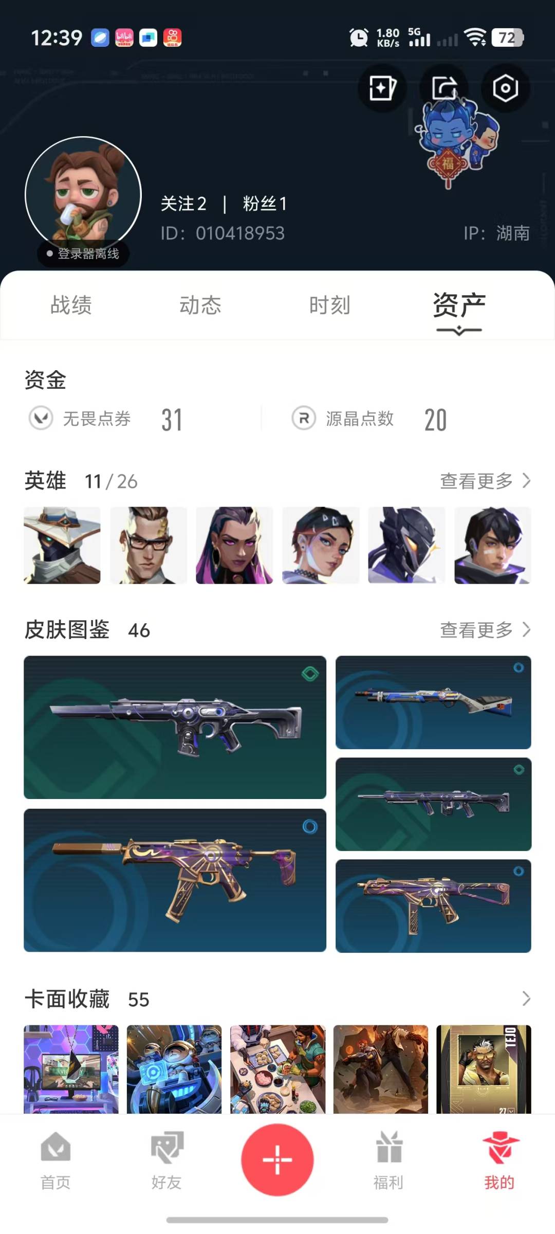 [7047409]10橙皮 5紫皮 46皮肤 11英雄 55卡面 480已用源晶 未定级 套装:般若假面//2.0套装奇点//2.0套装 佩呛皮肤:狂怒-般若假面//2.0鬼魅-奇点//2.0 步呛皮肤:狂徒-奇点//2.0狂徒-般若假面//2.0獠犬-般若假面//2.0狂徒-洪荒怒焰狂徒-塑水宗狂徒-盖世英雄 狙击呛皮肤:冥驹-千灵华绽 机呛皮肤:战神-般若假面//2.0 近战武器皮肤:蝴蝶刀-奇点//2.0匕首-超限闪存鬼丸国纲荒土机兵热能刀剥皮小刀
