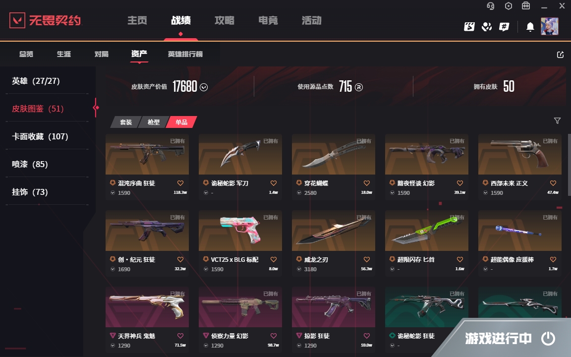 [8968351]【保证金商户】【编号76668】【27英雄 50皮肤】【50皮3卓越10传奇 连体金铲铲三神话小小英雄 115r点】 威龙之刃 穿花蝴蝶 创.纪元狂徒 混沌序曲狂徒 黯夜怪谈幻影 西部未来 正义 vct25 x blg 标配 天界神兵鬼魅 侦察力量幻影 掠影狂徒 诡秘蛇影军刀